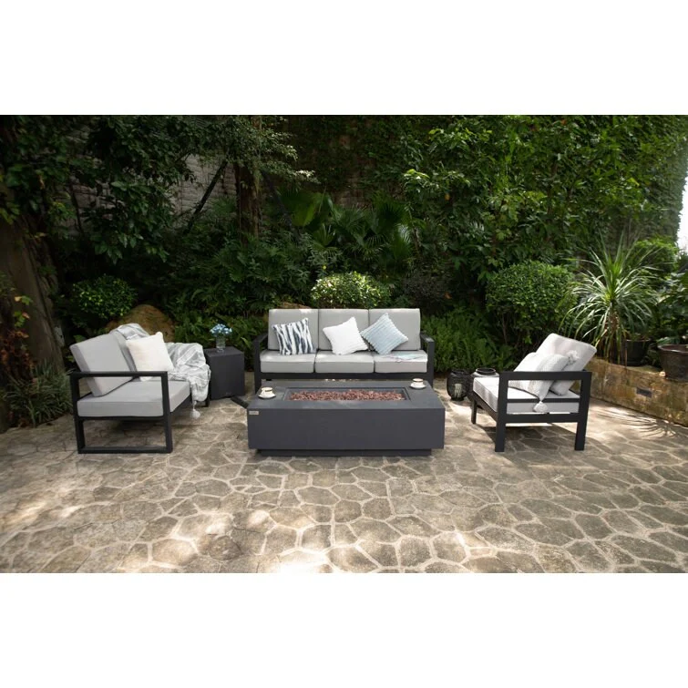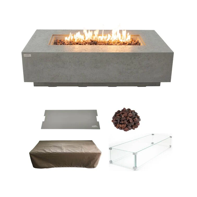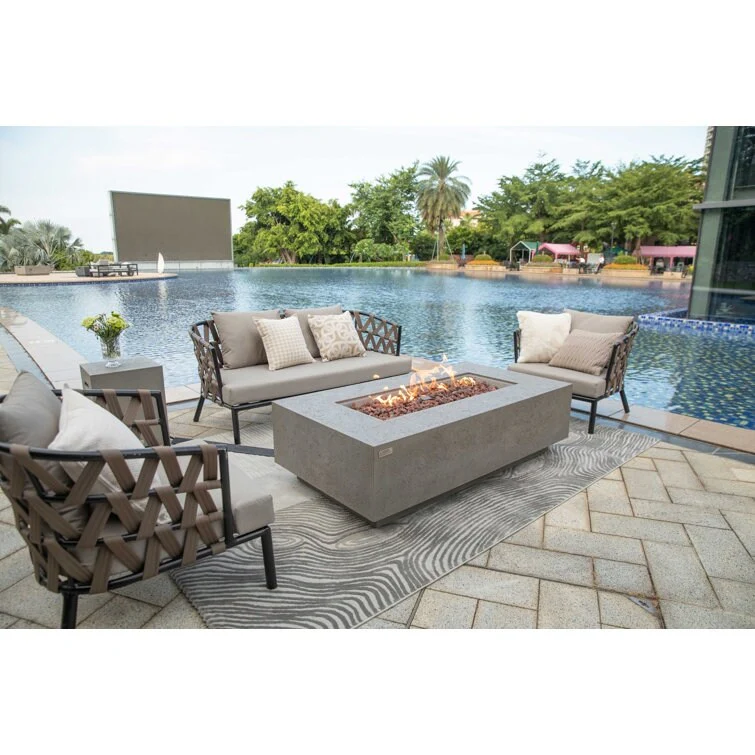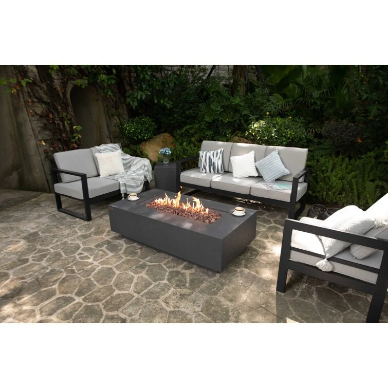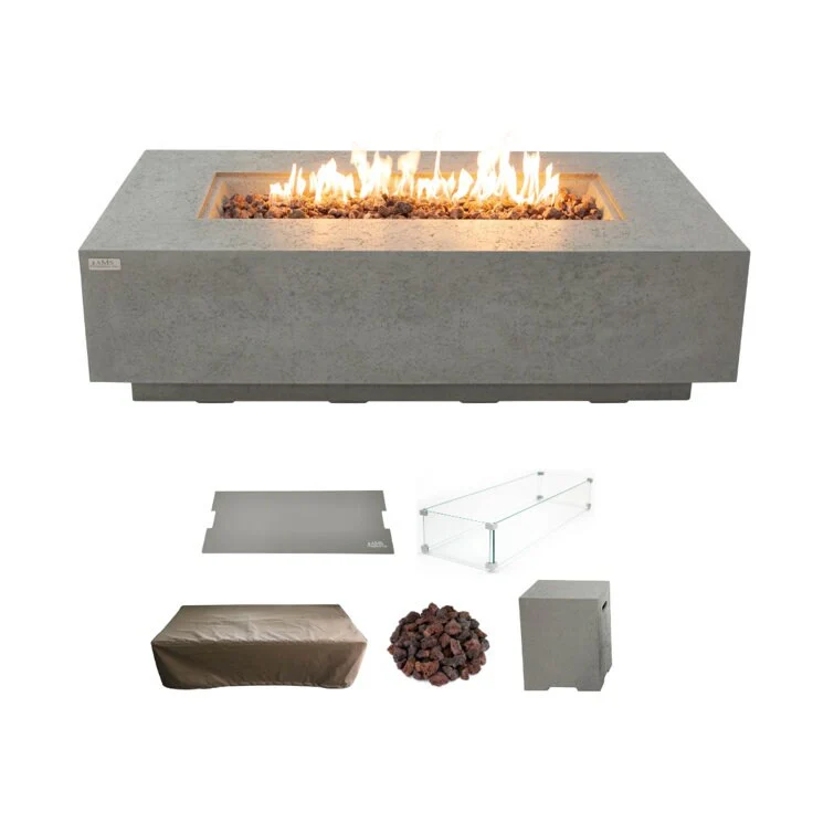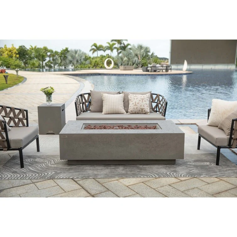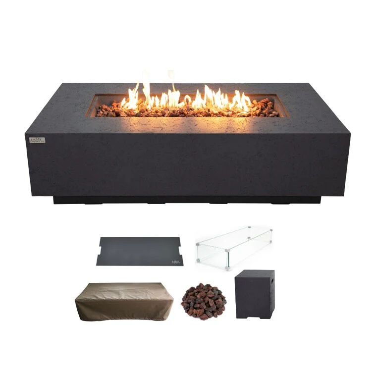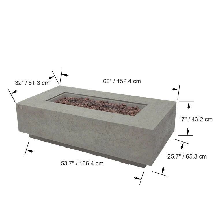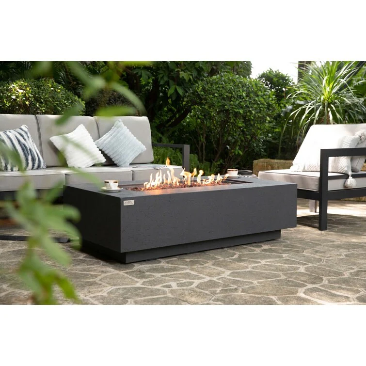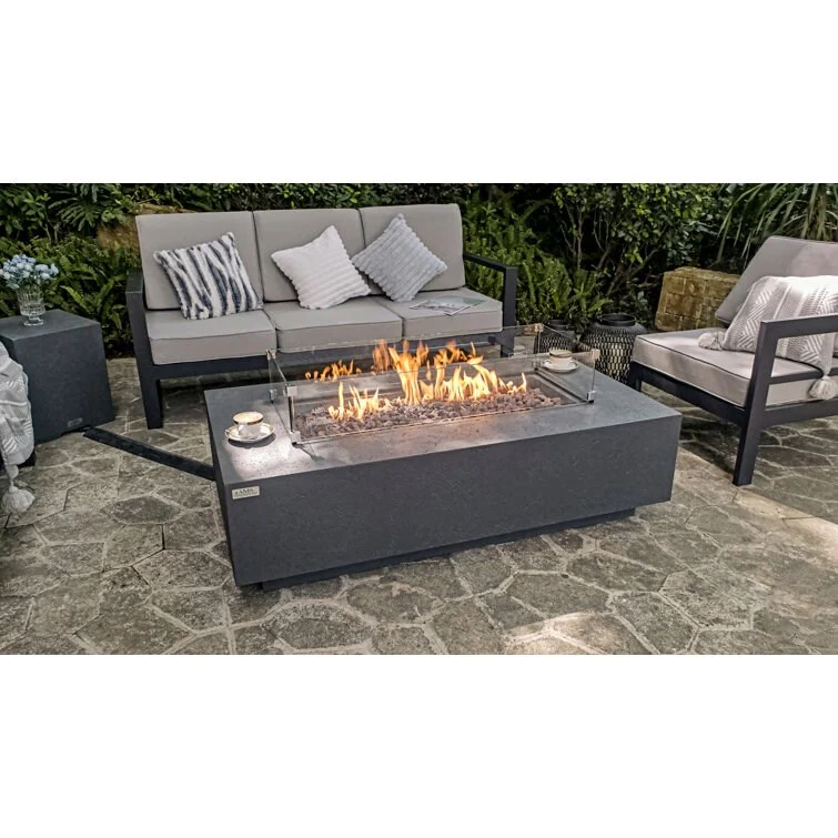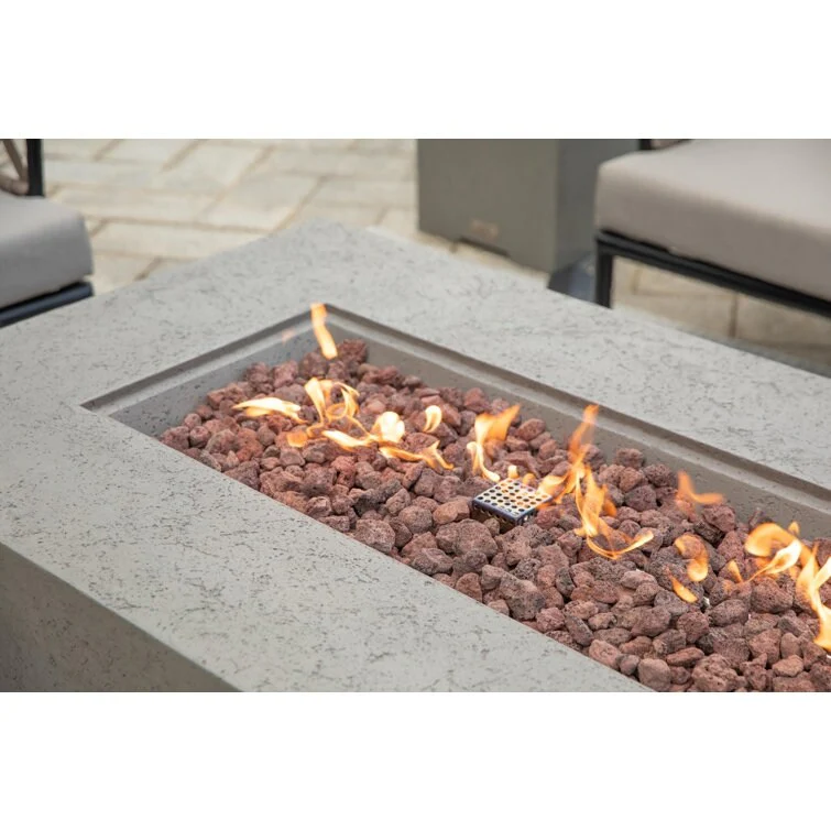 56 in. W x 26.25 in. D x 18.75 in. H Rectangular Propane Burning Outdoor Fire Pit in Stone Gray