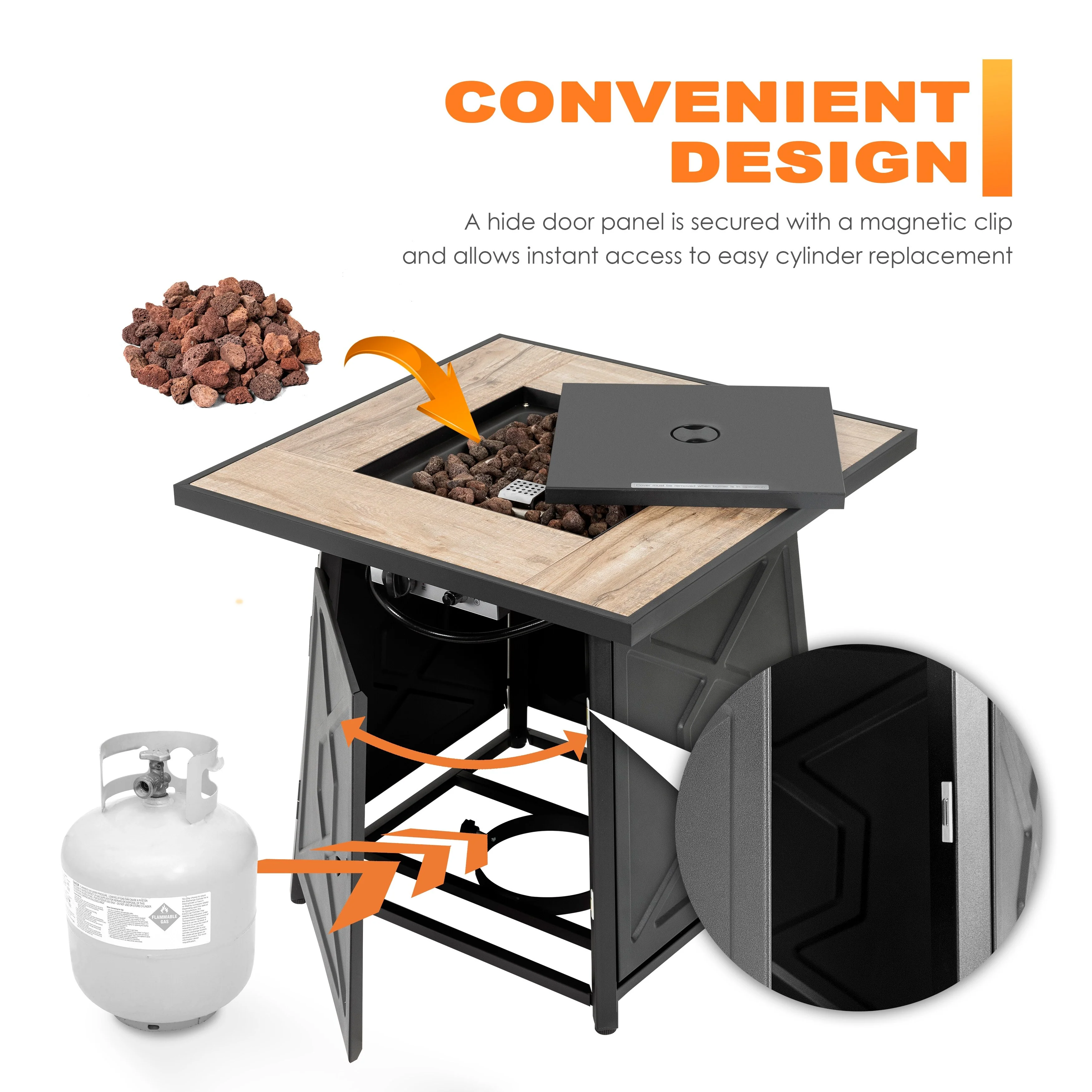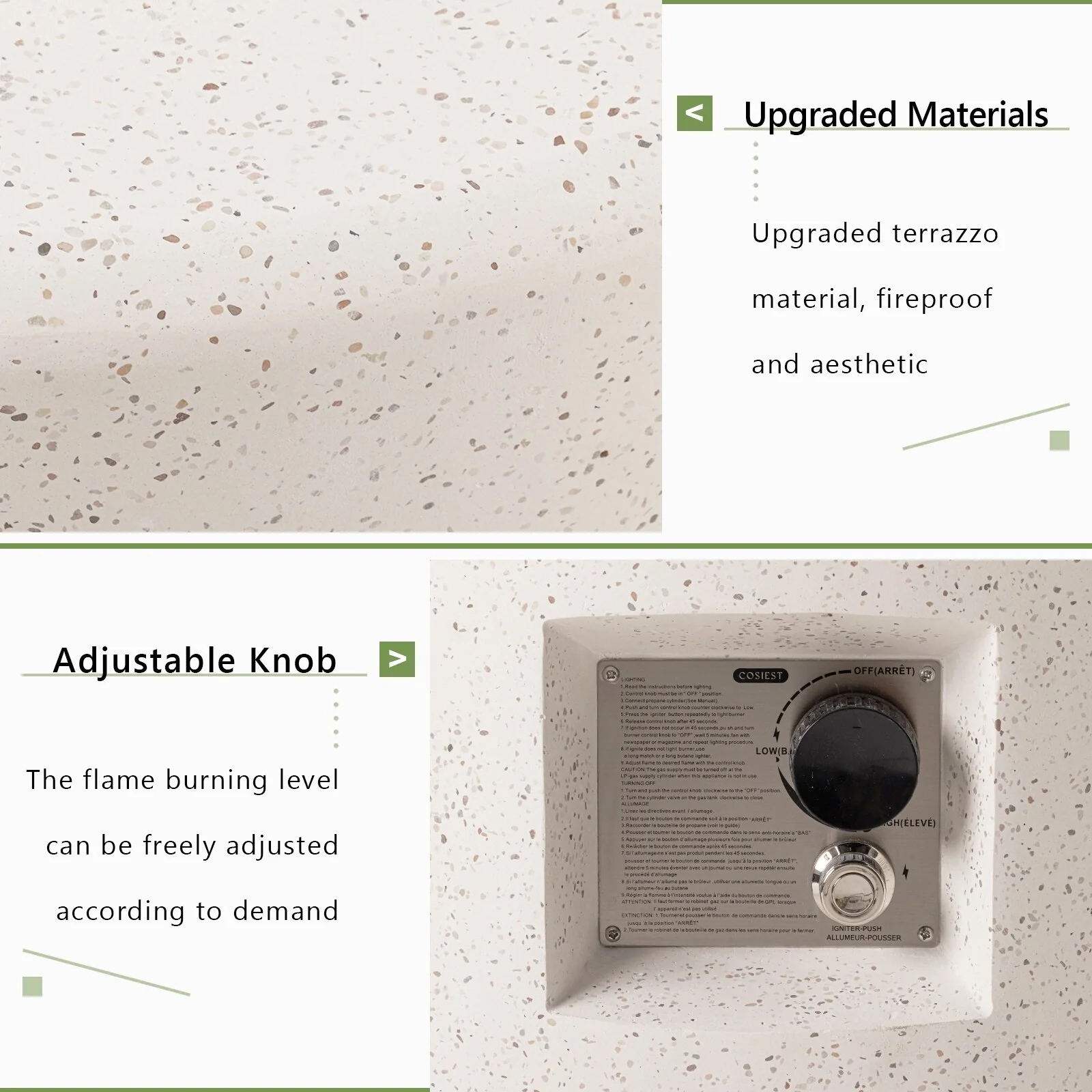 COSIEST 28''Outdoor Concrete Propane Fire Pit Table,Marble & Wood Style Design