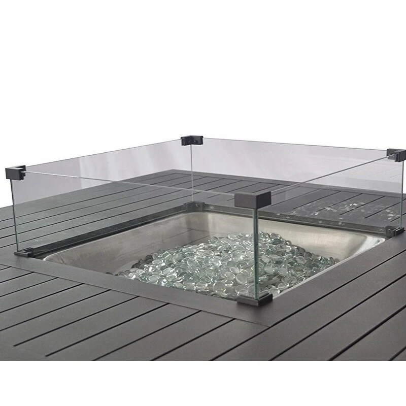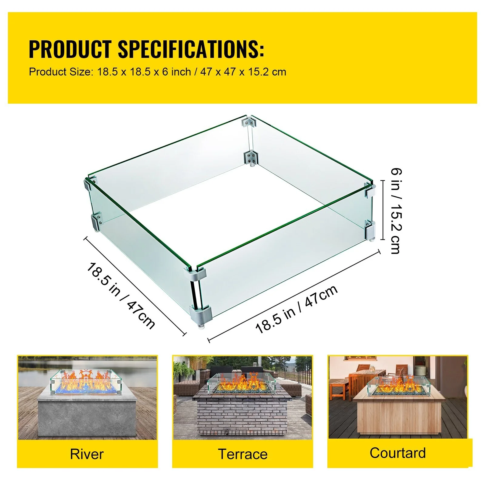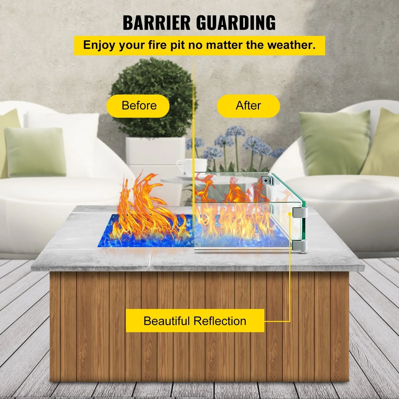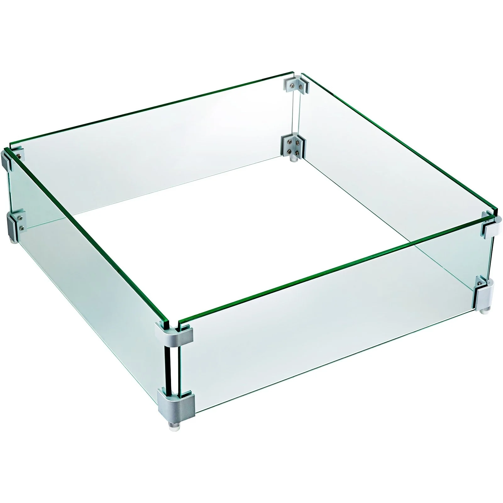 Clear Tempered Glass Wind Guard for Fire Pits with Alloy Brackets - 18.5�� L x 18.5�� W x 6�� H