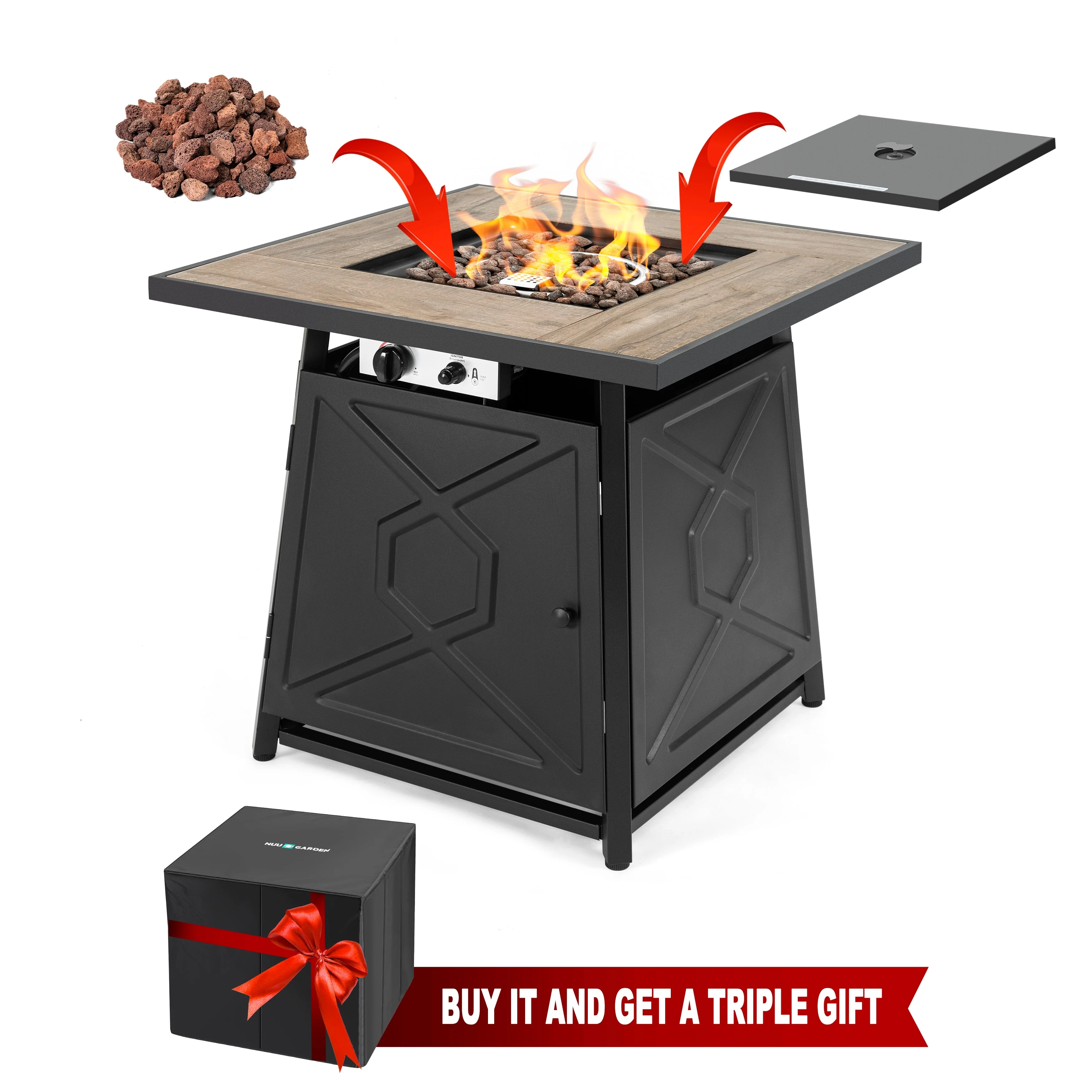 VEIKOUS 50000 BTU Outdoor Square Propane Gas Removable Fire Pit Table with Lid, Cover and Lava Rock