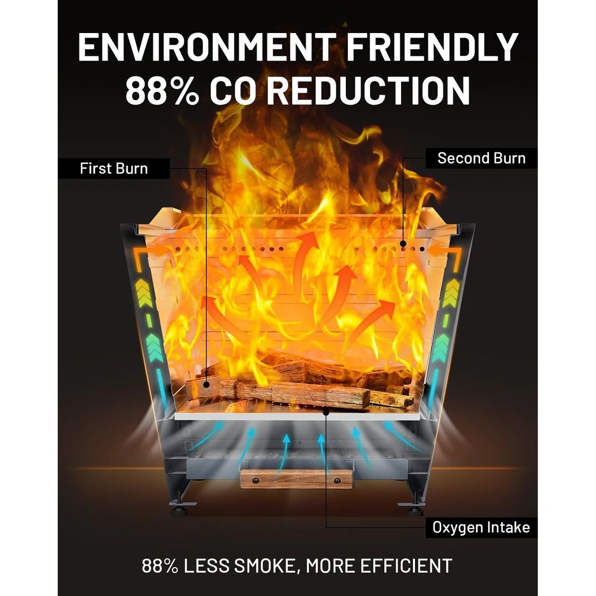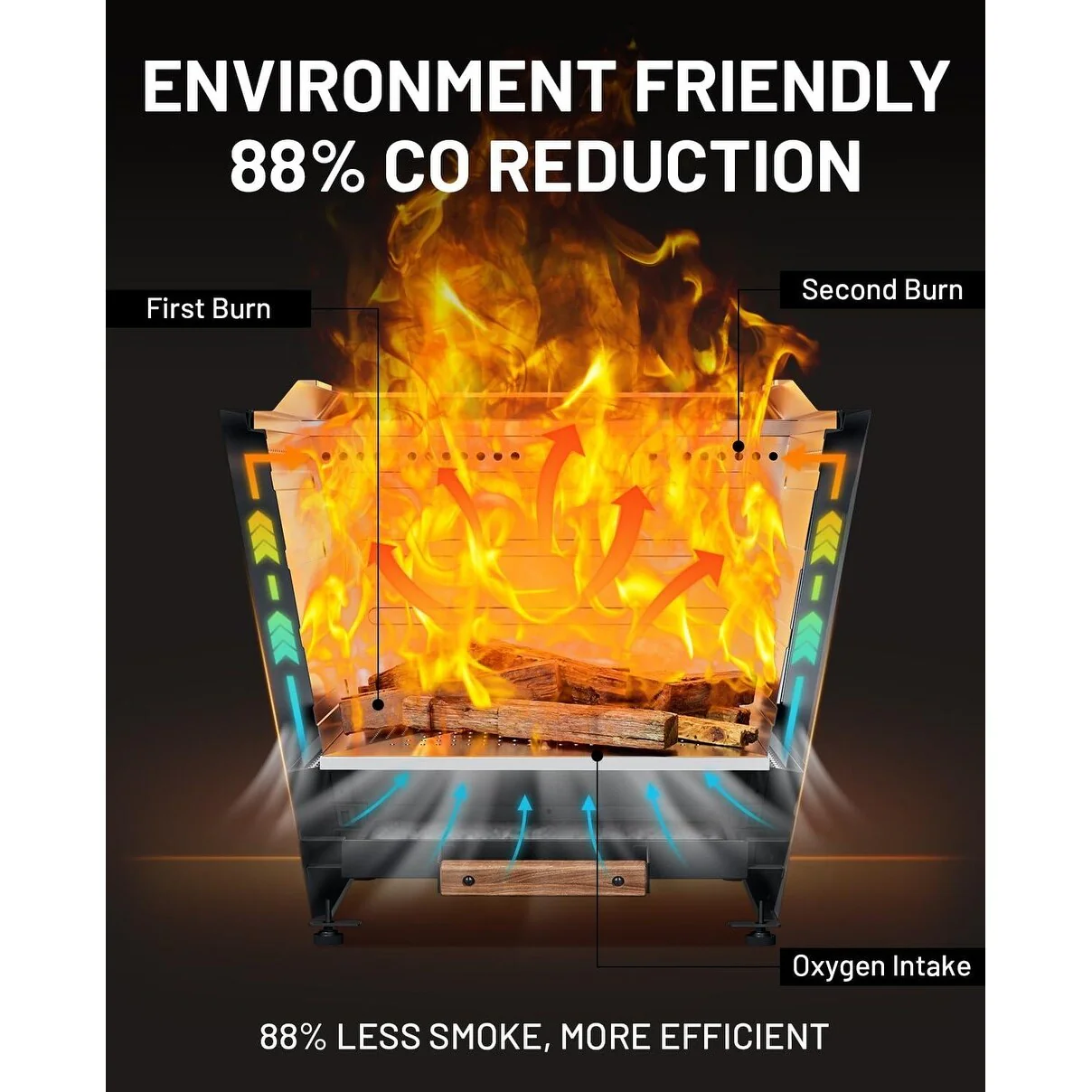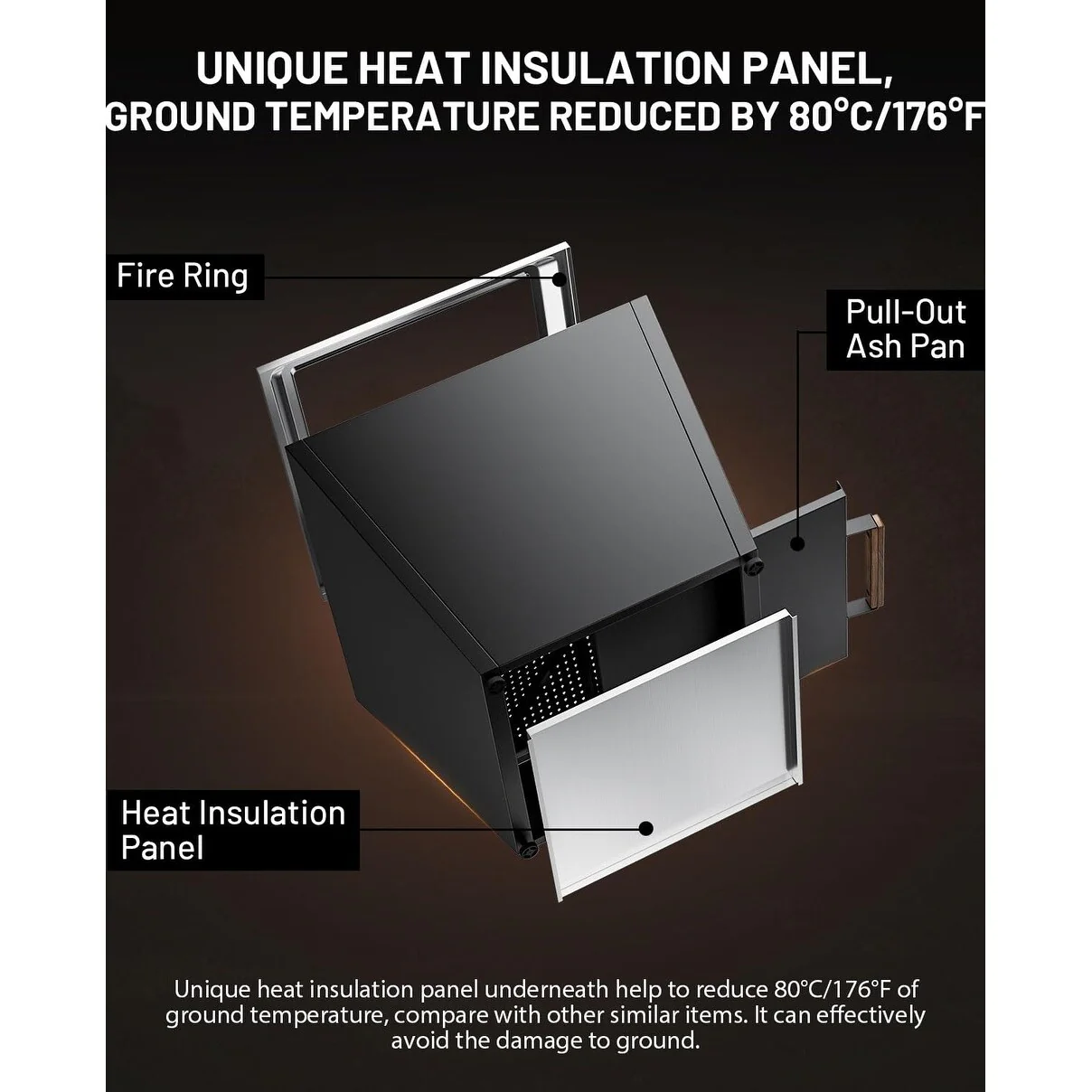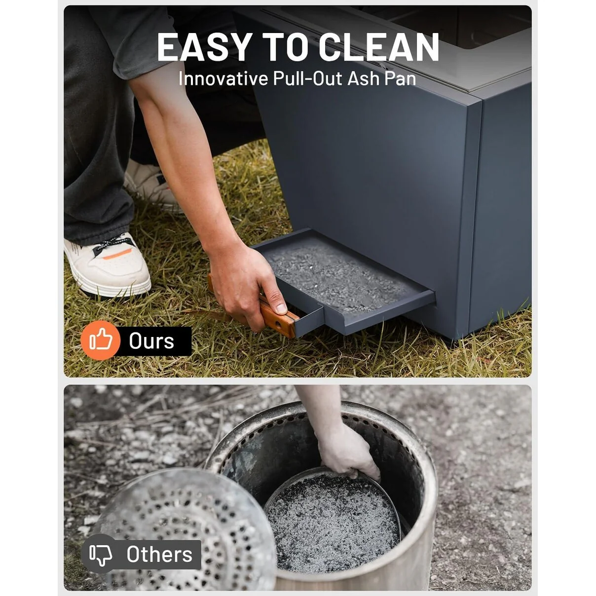 Cyberpit One Pro 25 inch Smokeless Fire Pit, w/Pull-Out Ash Pan, Portable Outdoor Firepits