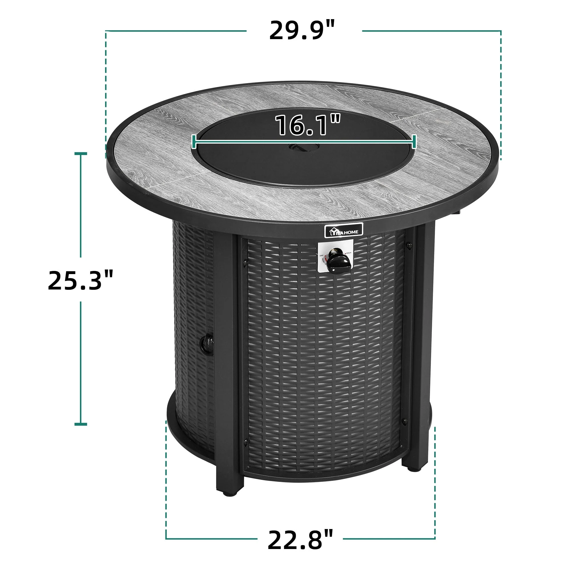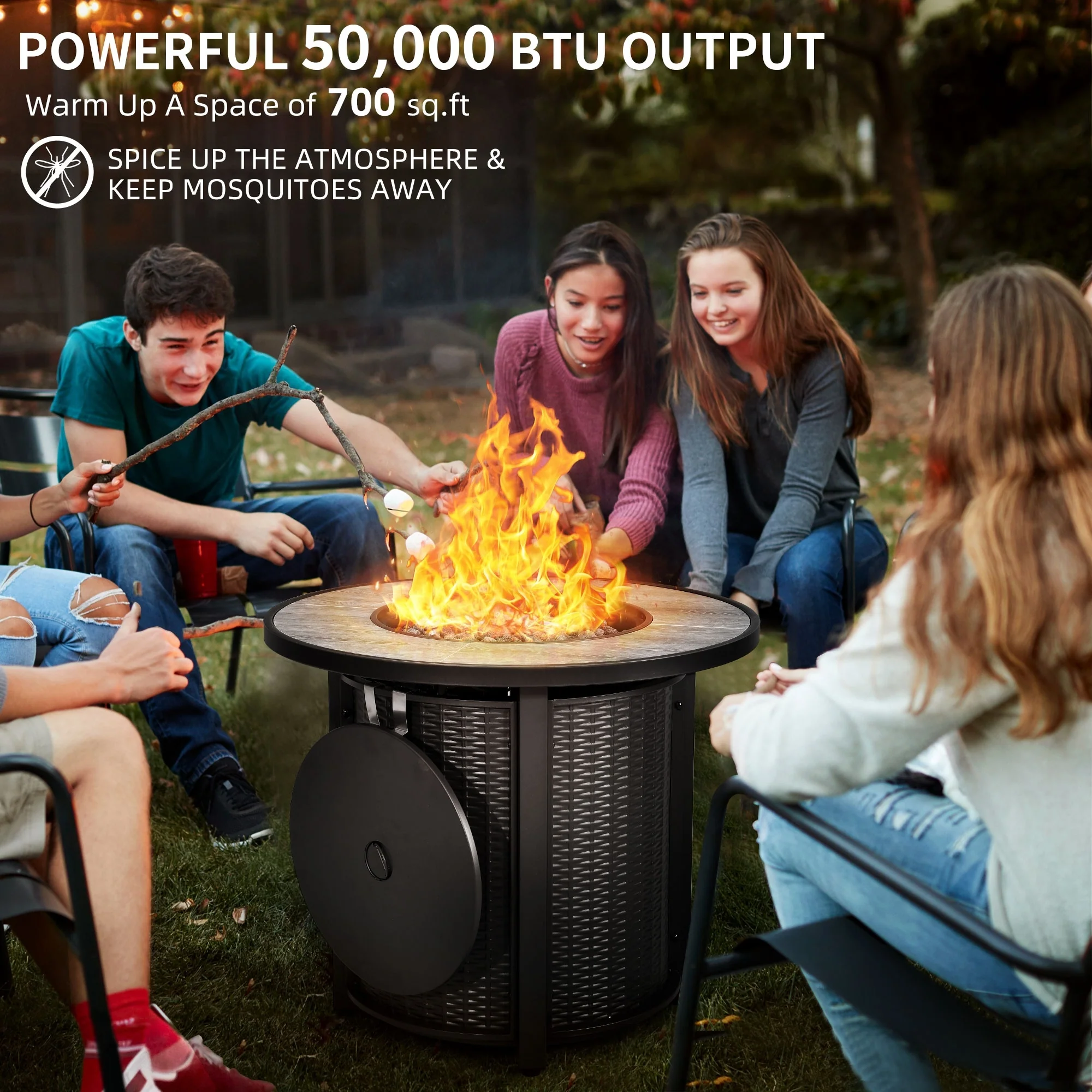30" Round Propane Fire Pit Table 50,000 BTU Ceramic Tile Tabletop