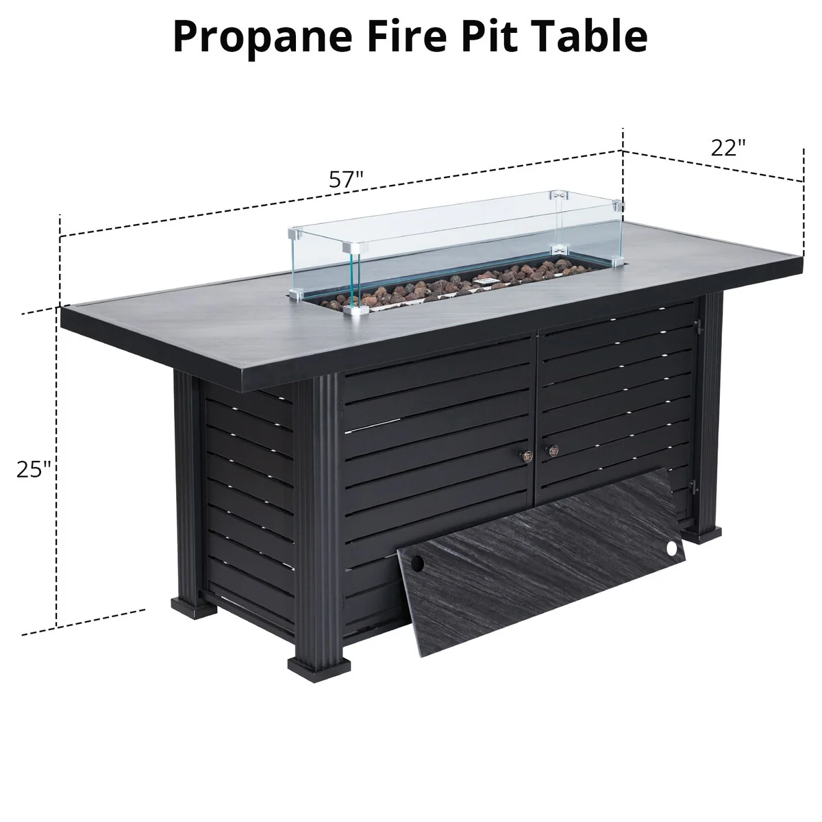 57Inch Propane Fire Pit Table with Double-Sided Cover - 57 Inch