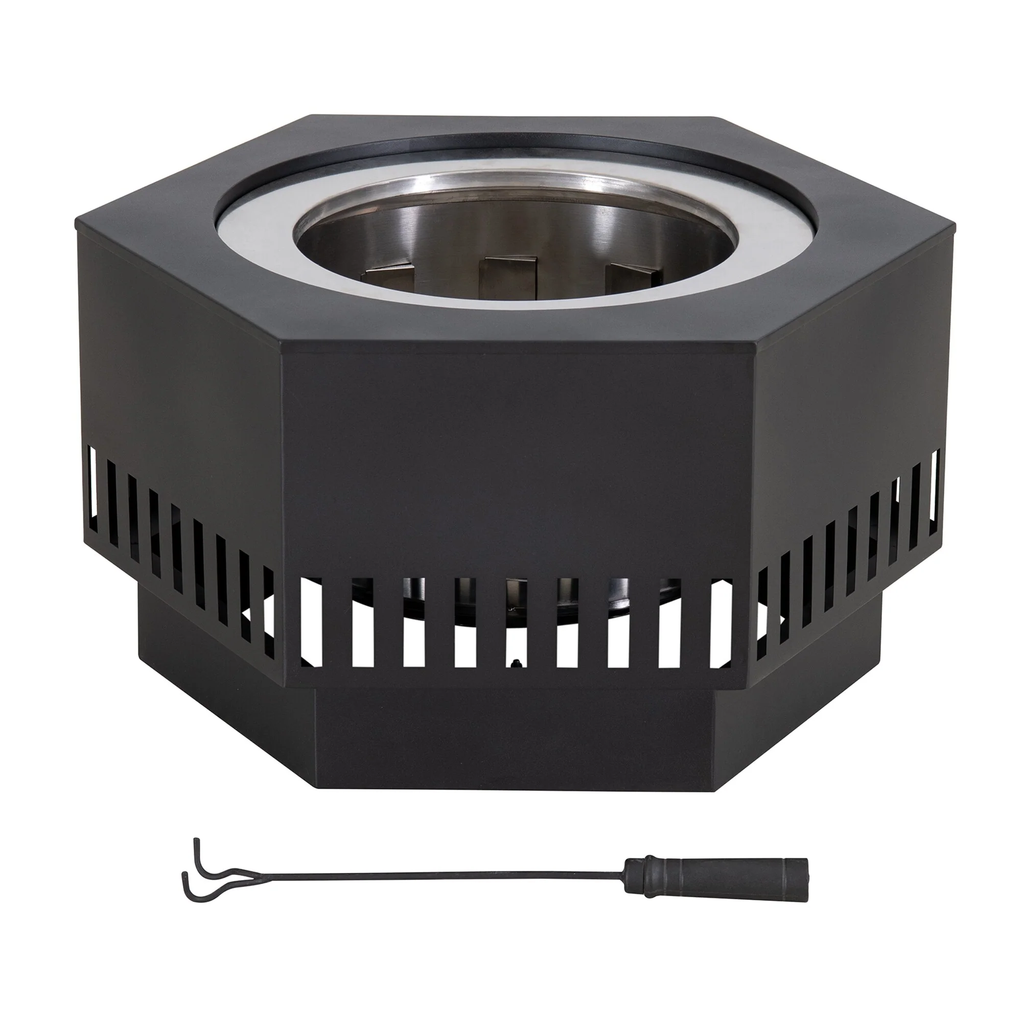 Sunjoy 28 In Smokeless Fire Pit Wood Burning Fireplace with Removable Ash Pan and Fire Poker - N/A