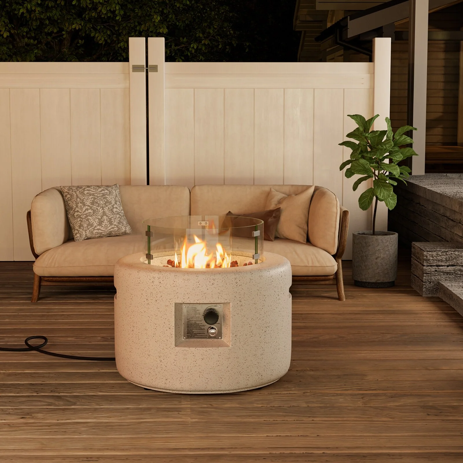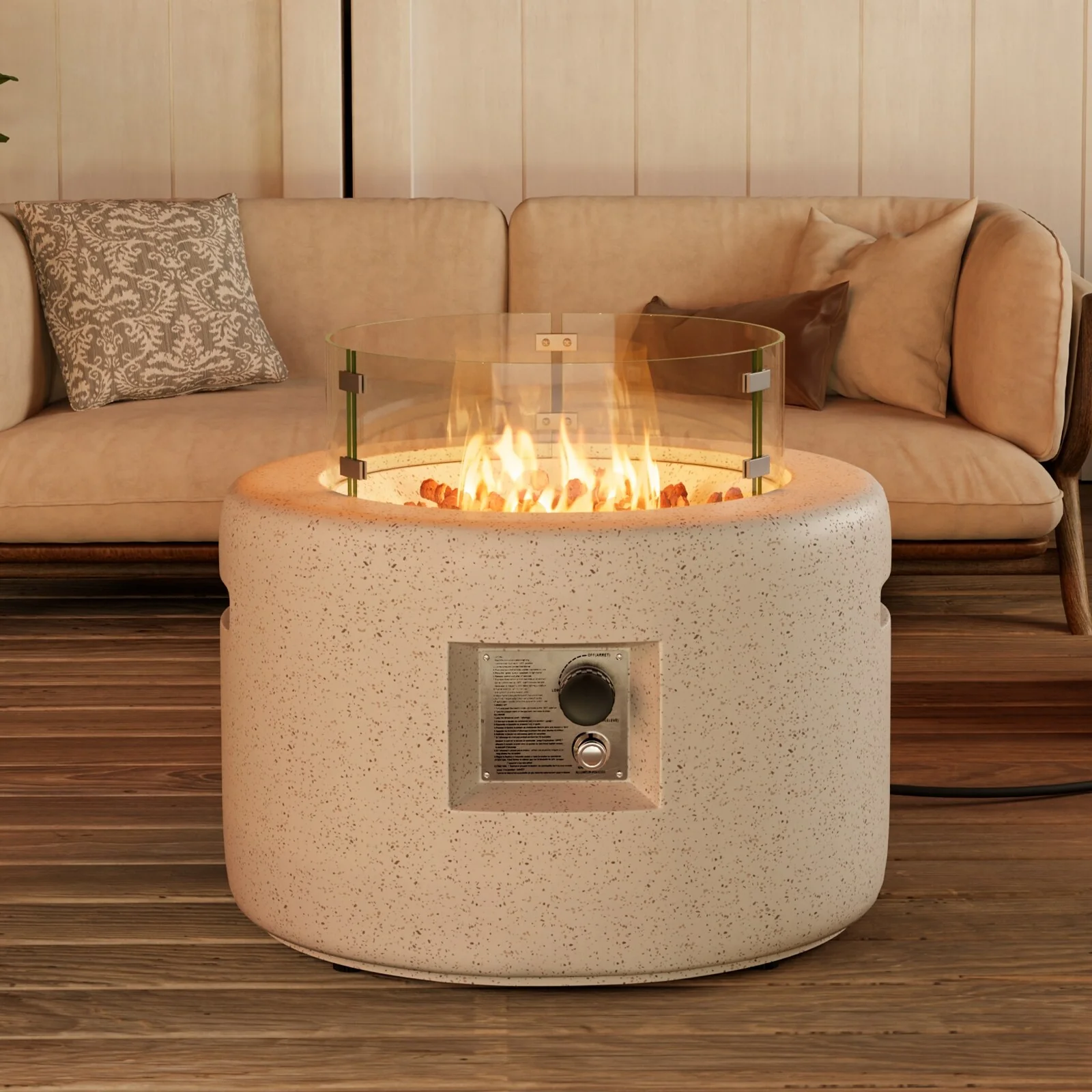 COSIEST 12'' Round Terrazzo Outdoor Firepit with Wind Guard