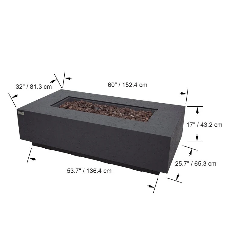 Elementi Sydney Bioethanol Fire Pit Indoor Outdoor Firepit 23,000 BTUs - 61.9 x 29.9 Inches - 61.9 x 29.9 in.