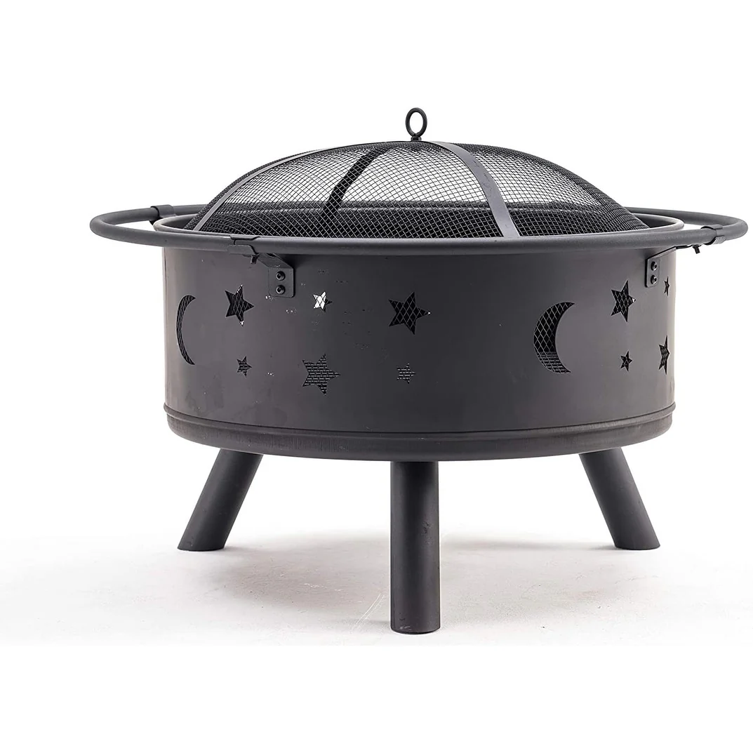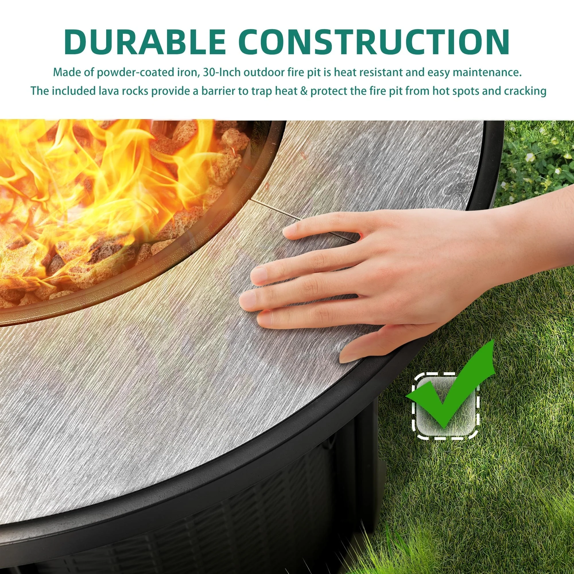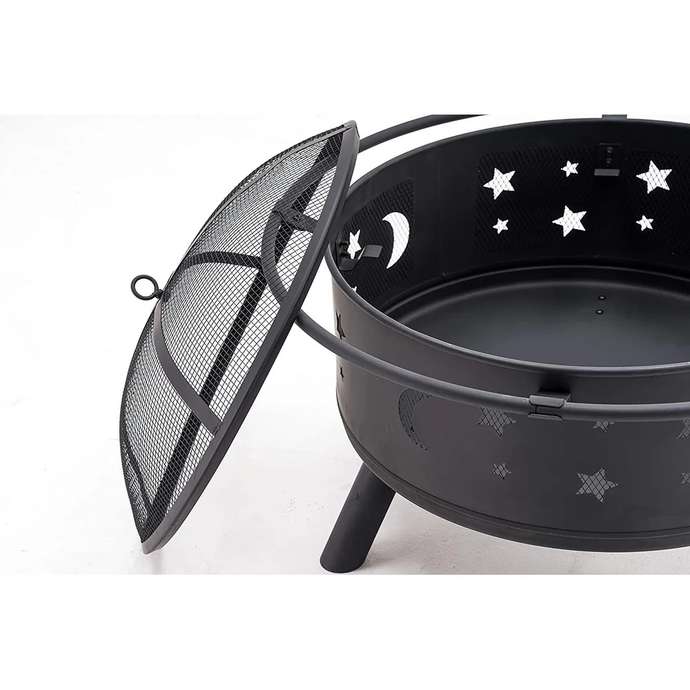 Mcombo 30" Metal Black Fire Pit Round Table Backyard Patio Terrace Fire Bowl