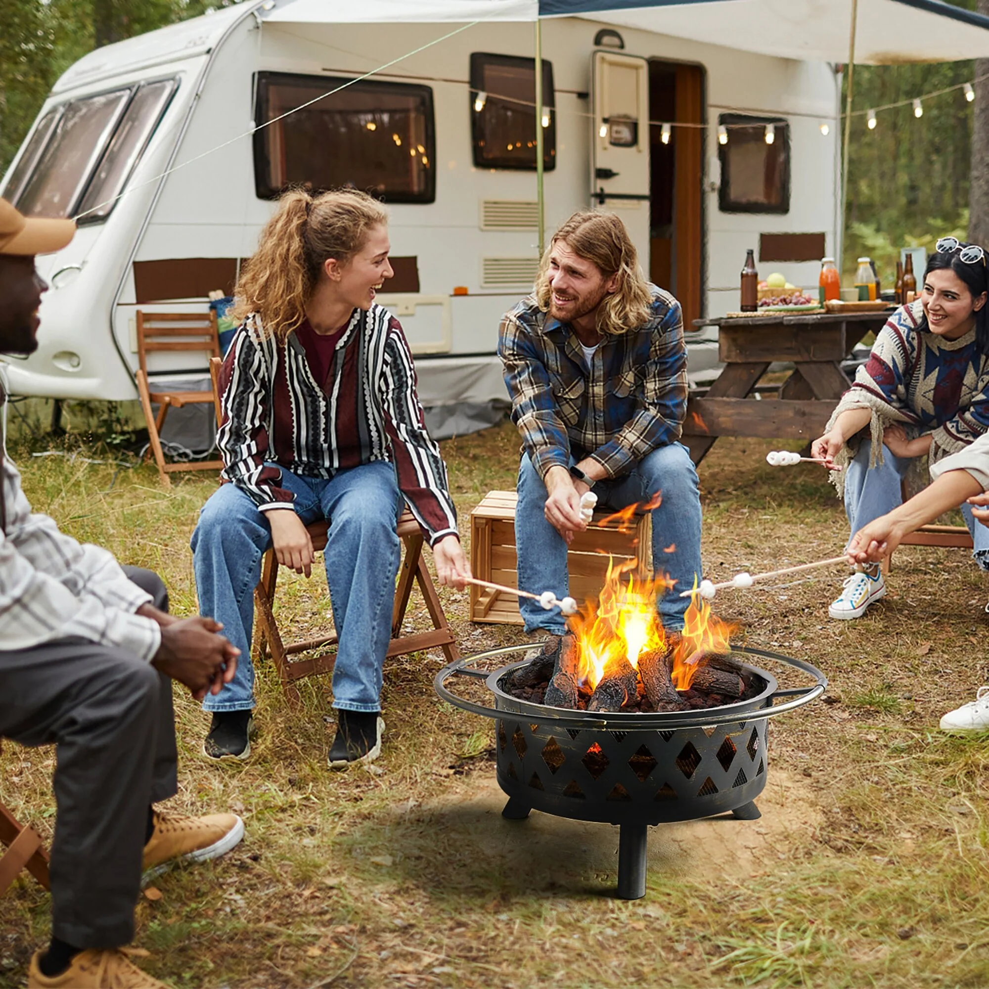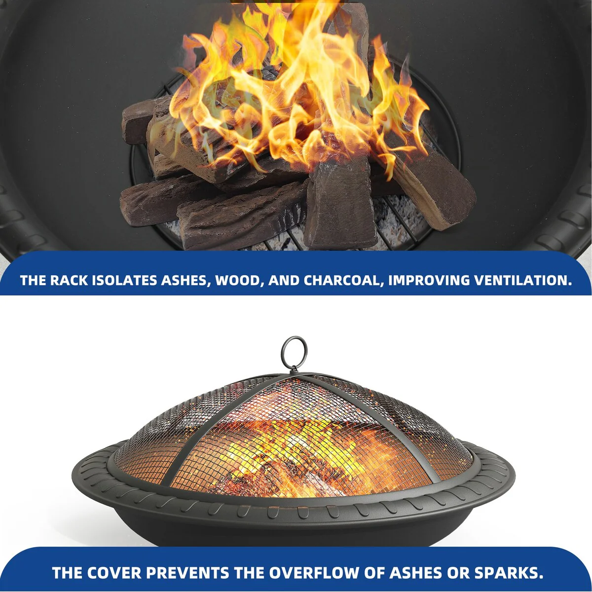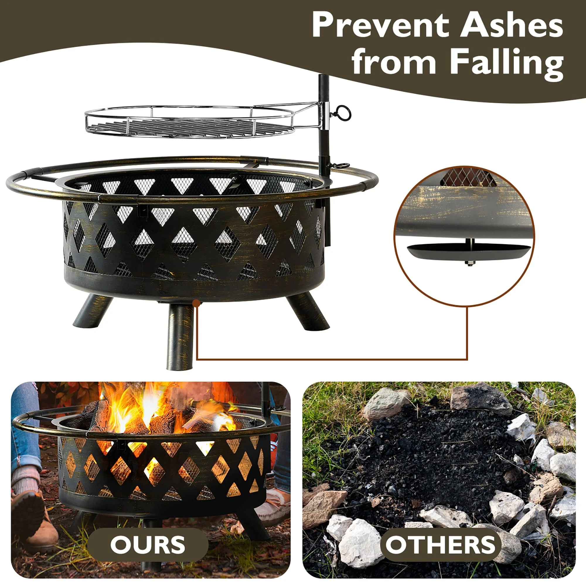 Aoxun 2 in 1 Fire Pit 30in with Grill Outdoor Wood Burning