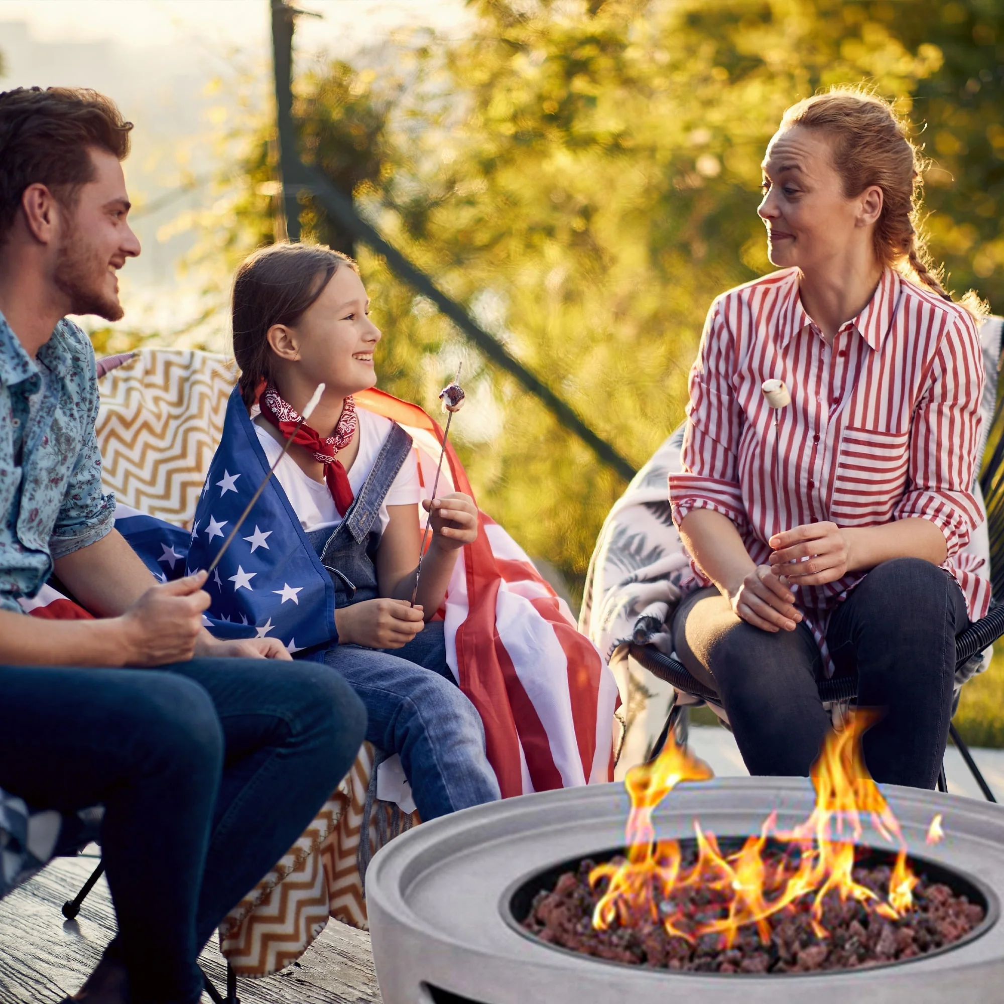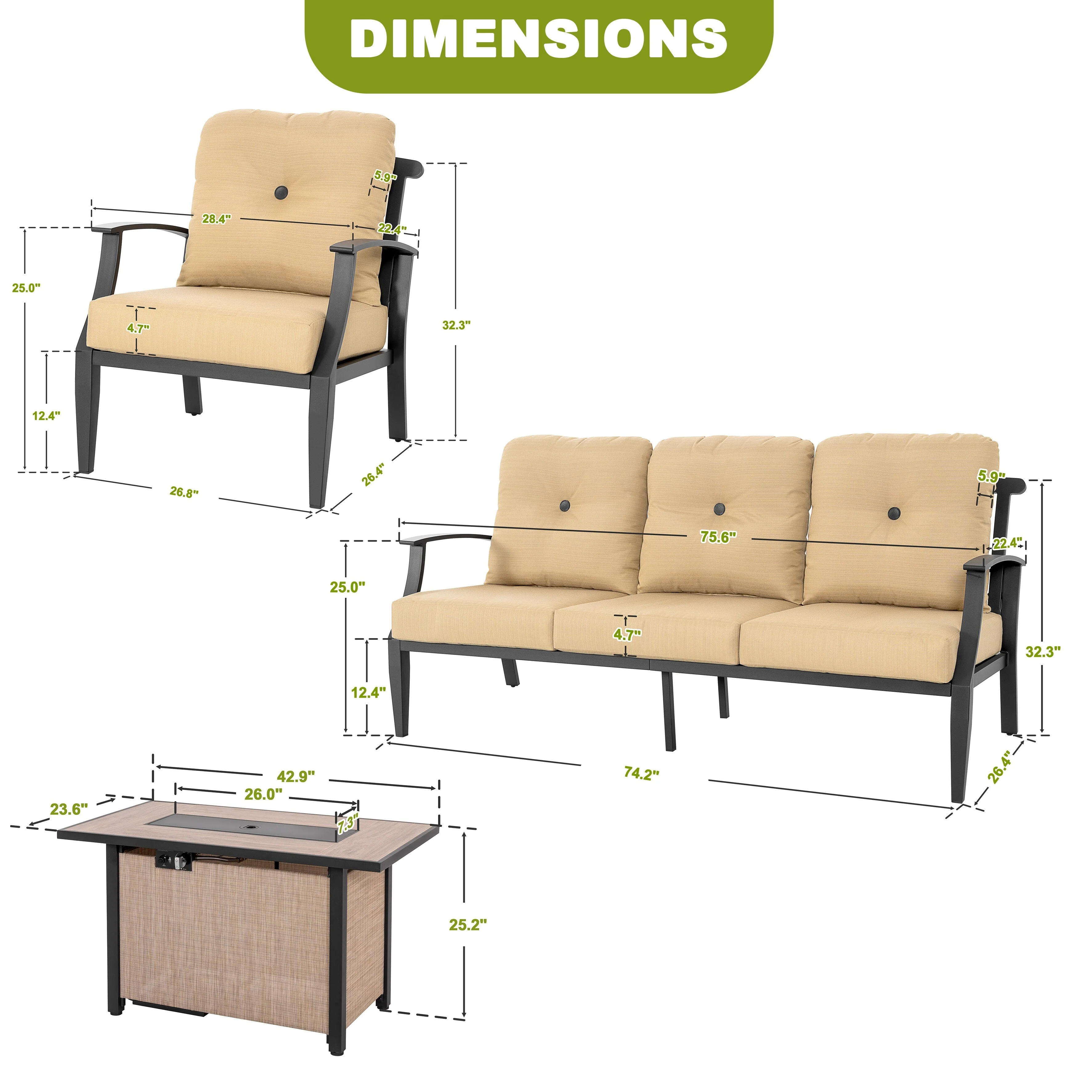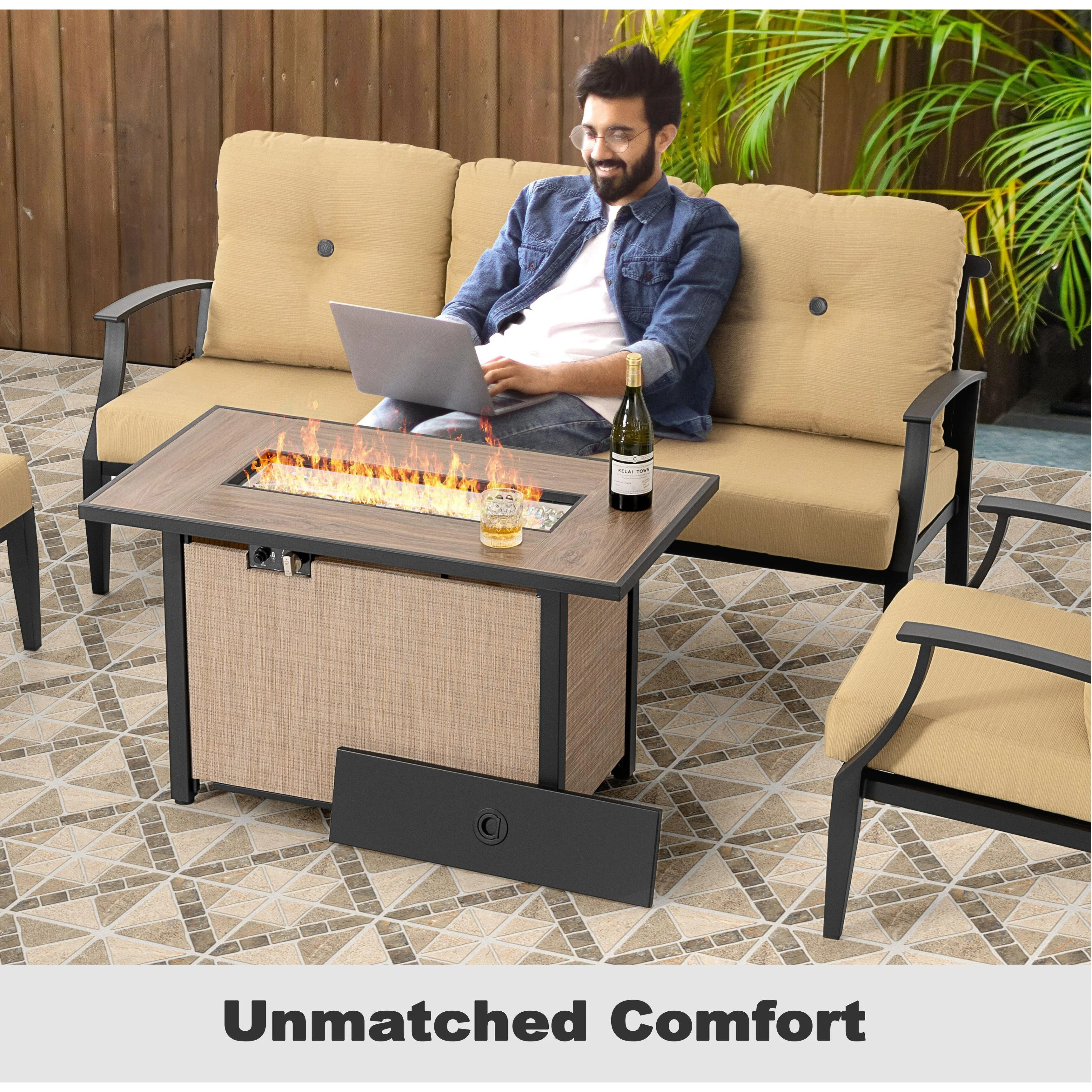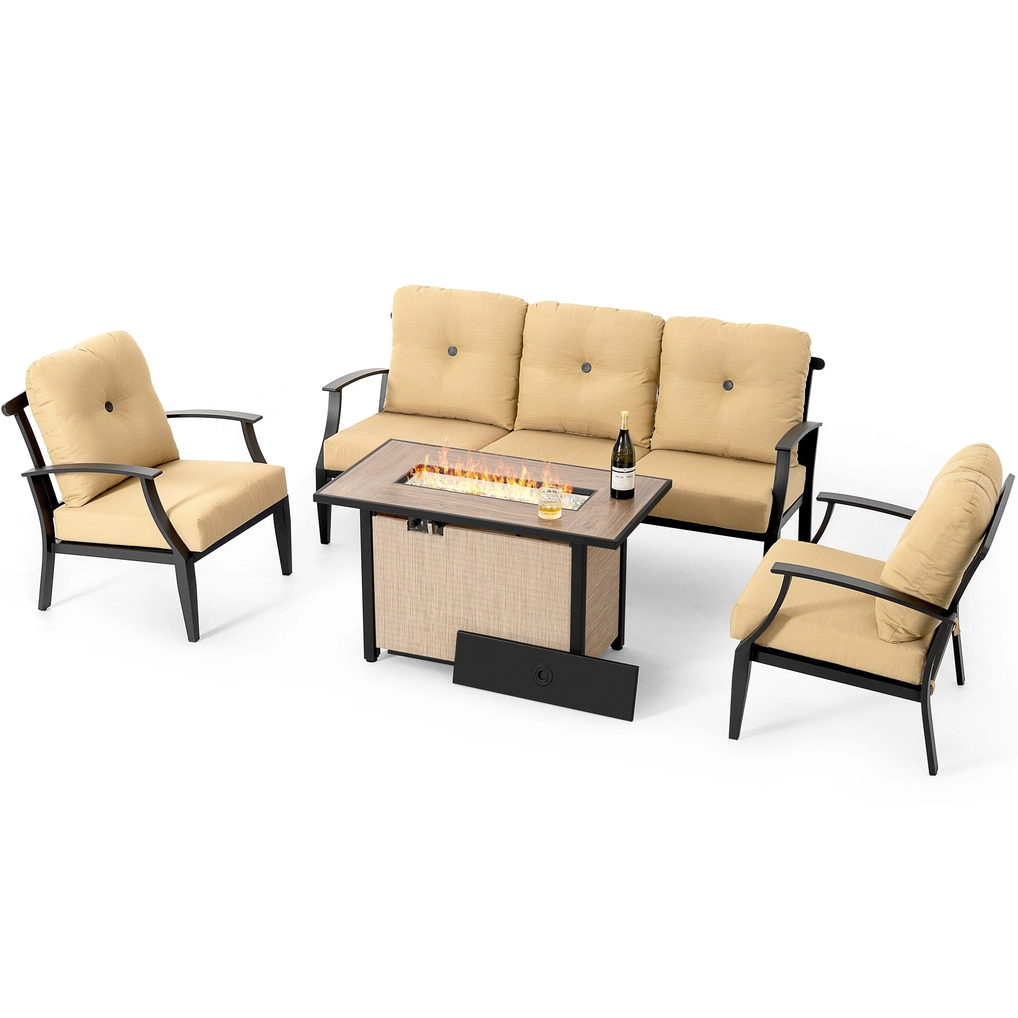 Outdoor 50,000 BTU Textilene Propane Fire Pit Set with Aluminum Sofas