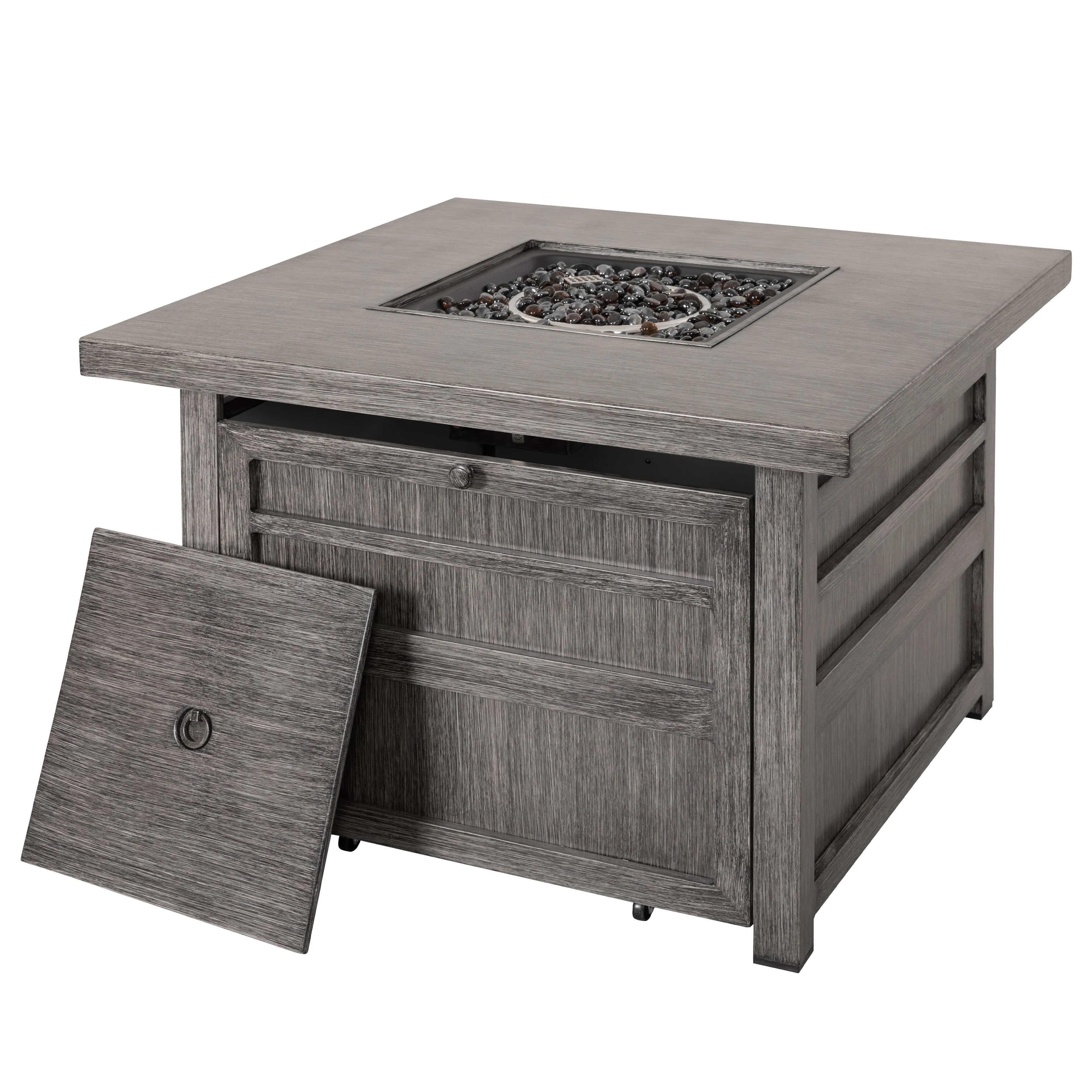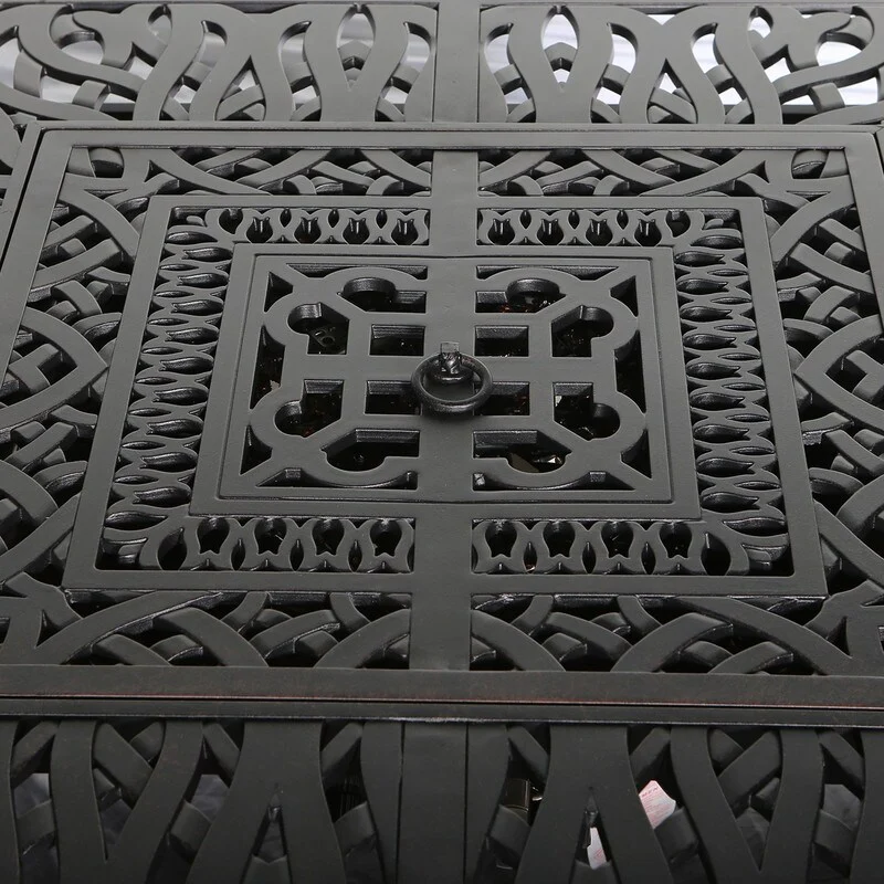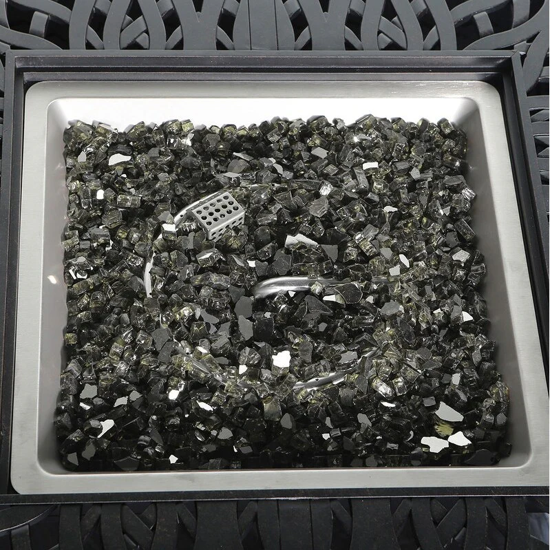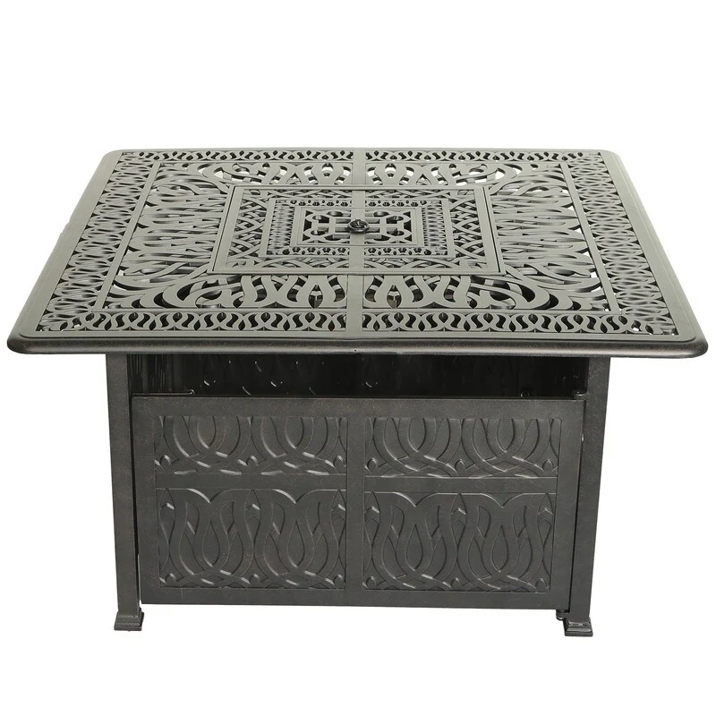 Cast Aluminum 44" Square Fire Table w/ Fire Glass and Cover