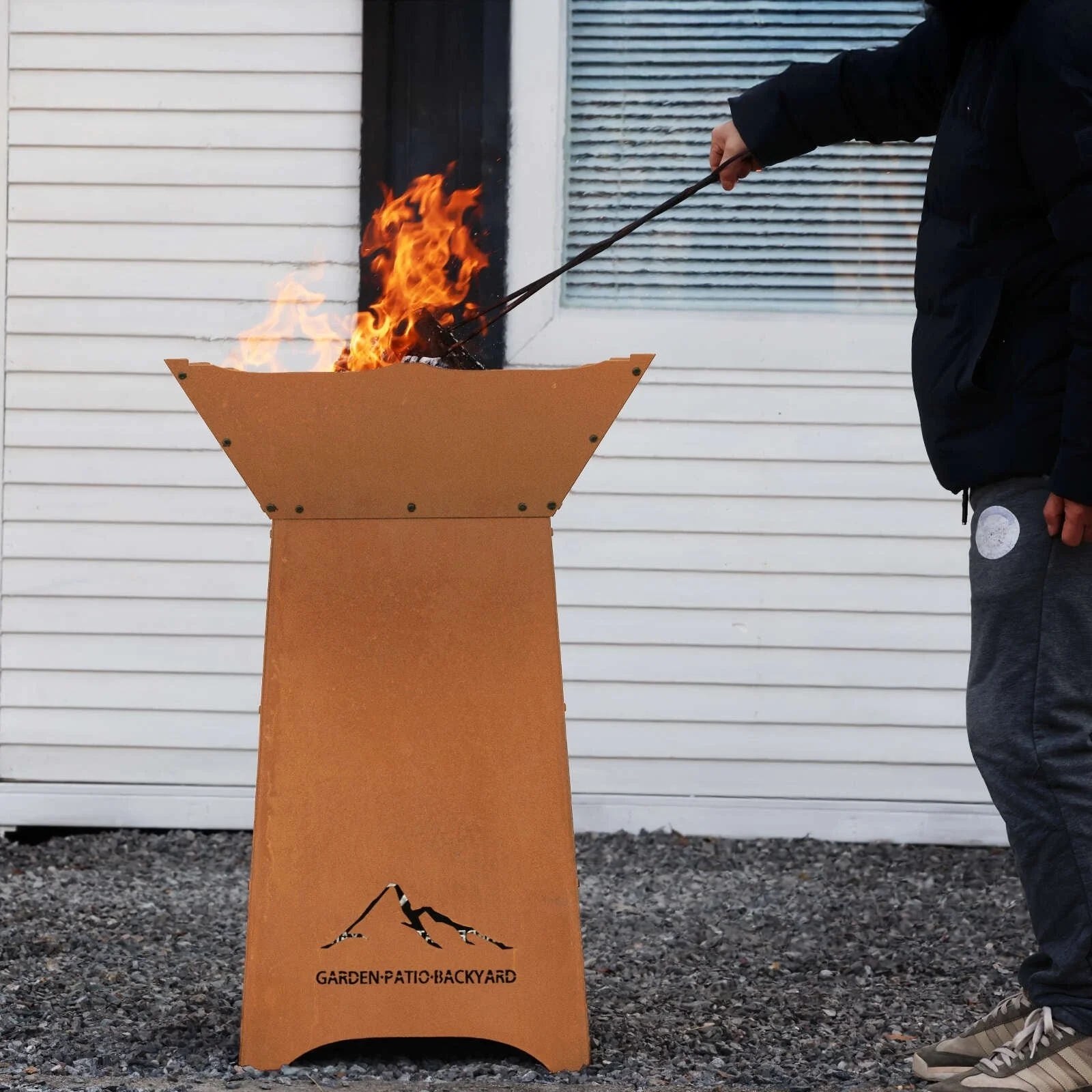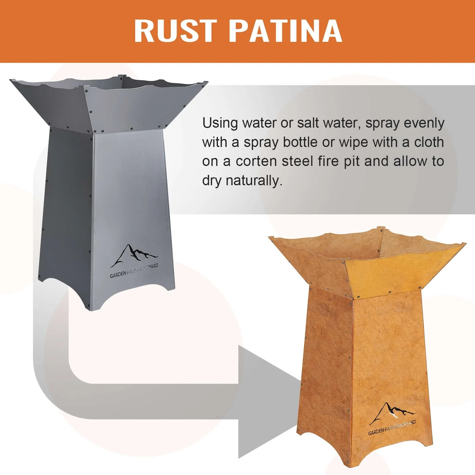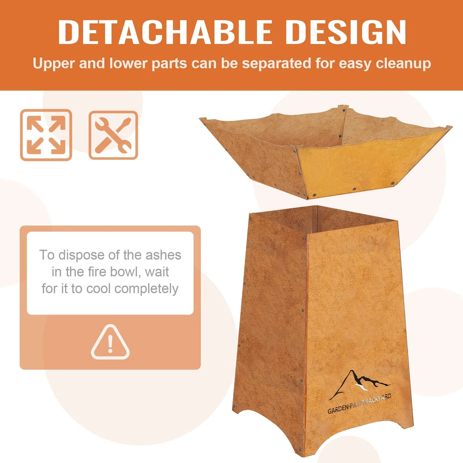 Aoodor 24" Rustic Corten Steel Fire Pit with 27" Stand, Rust Patina Finish, Detachable Wood-Burning Fire Bowl - N/A