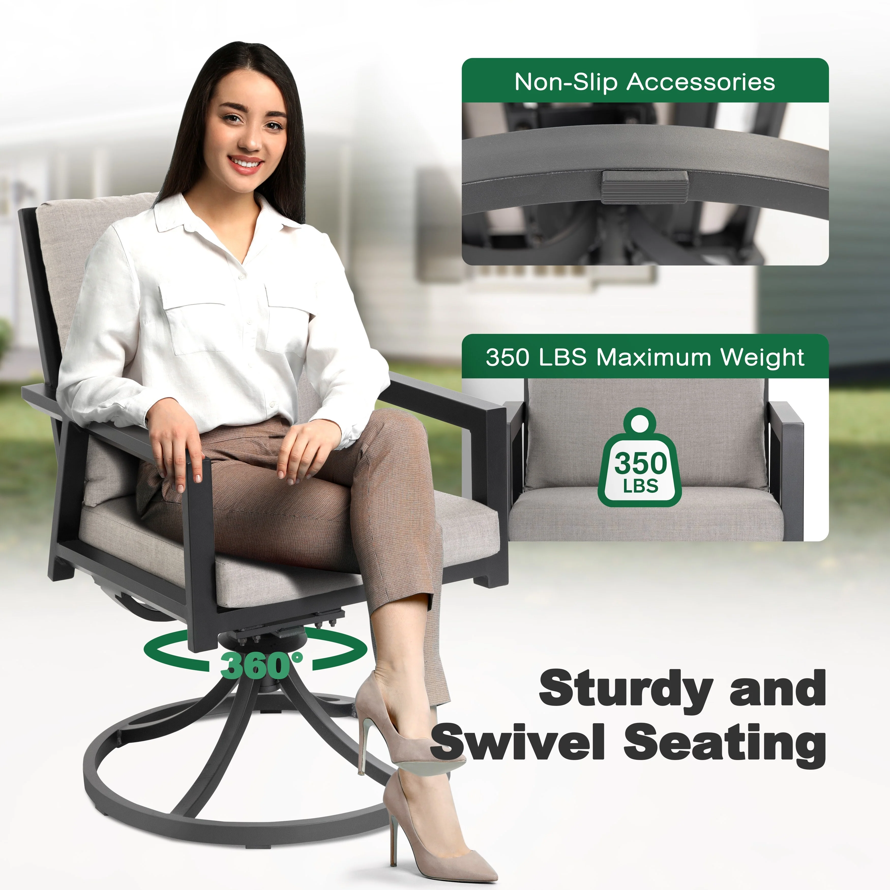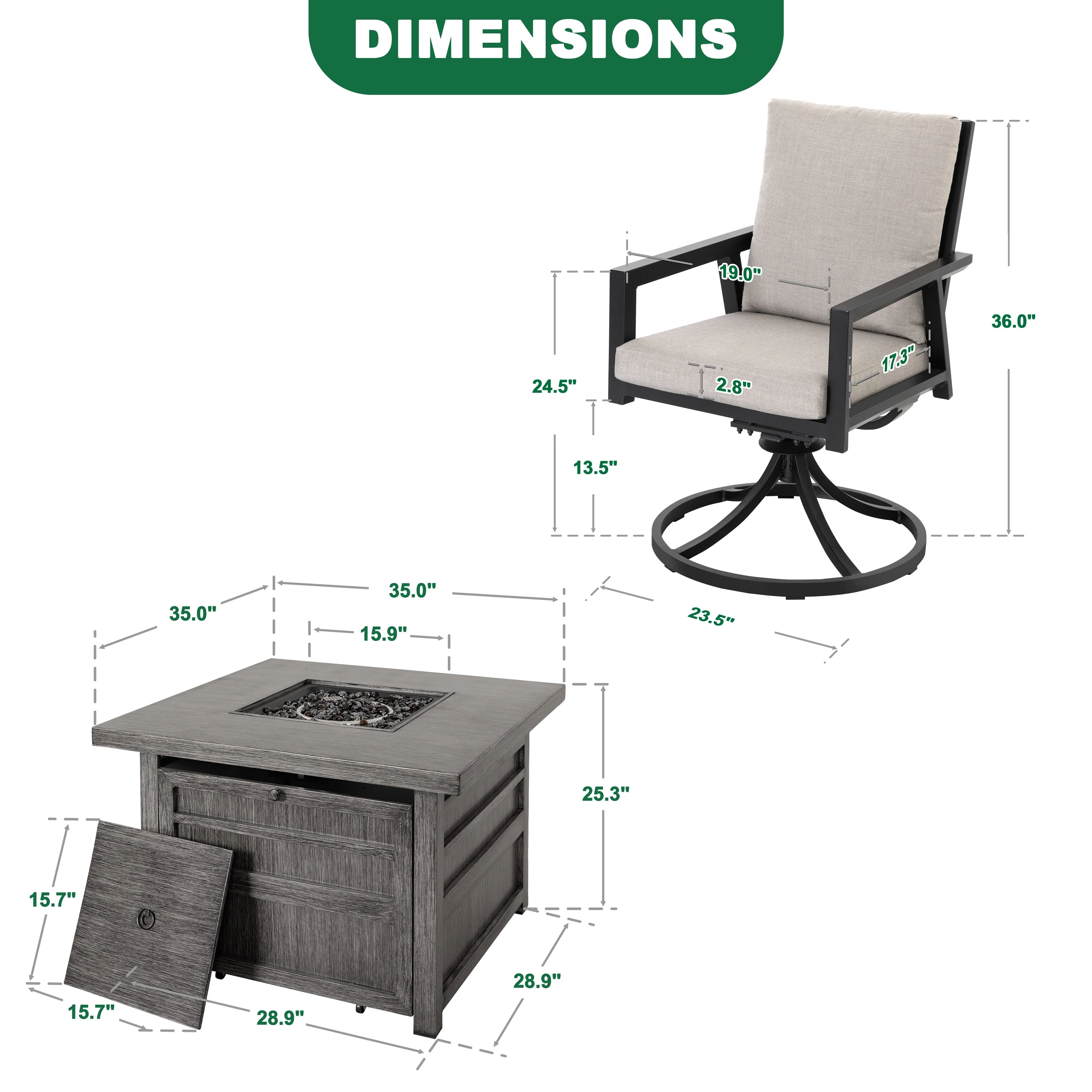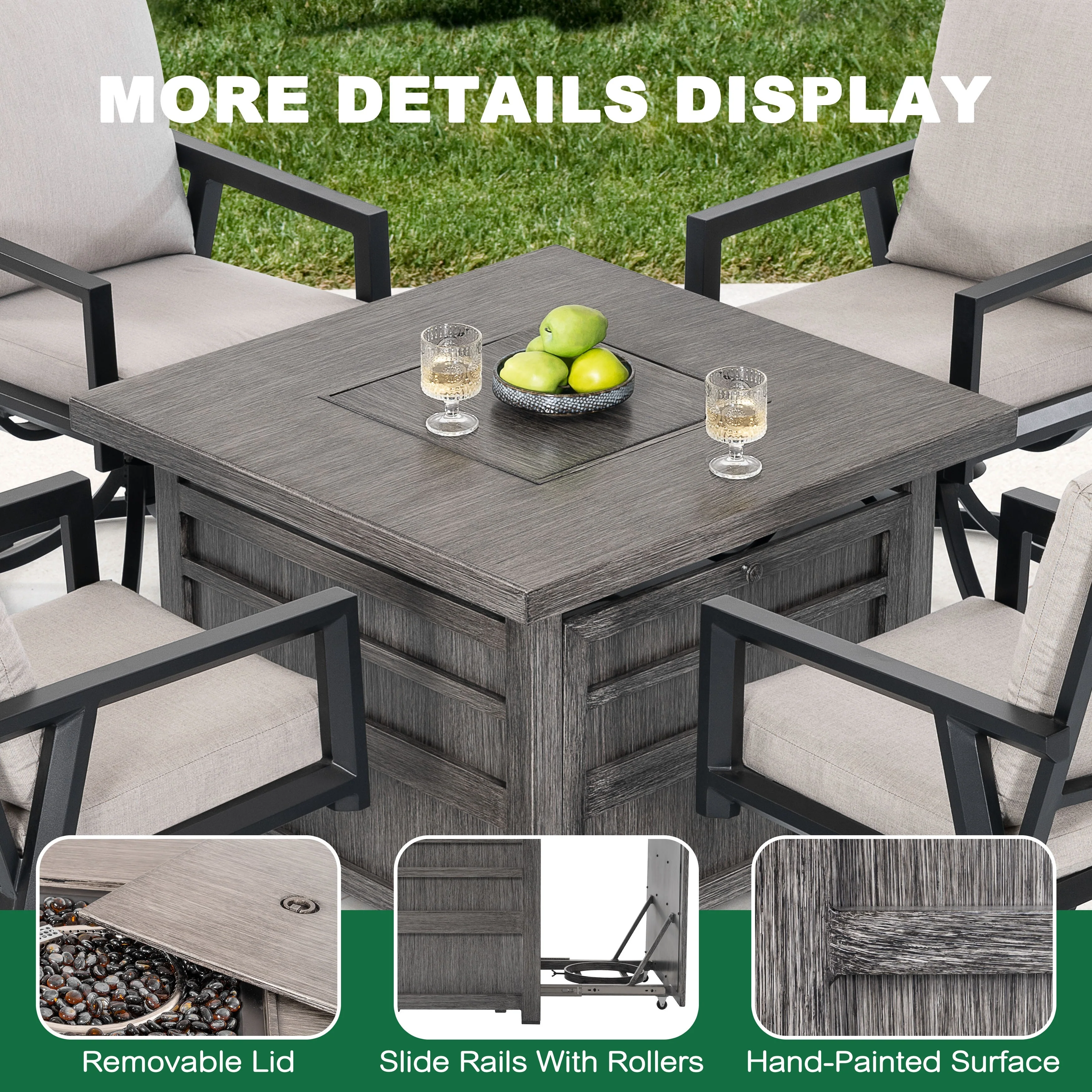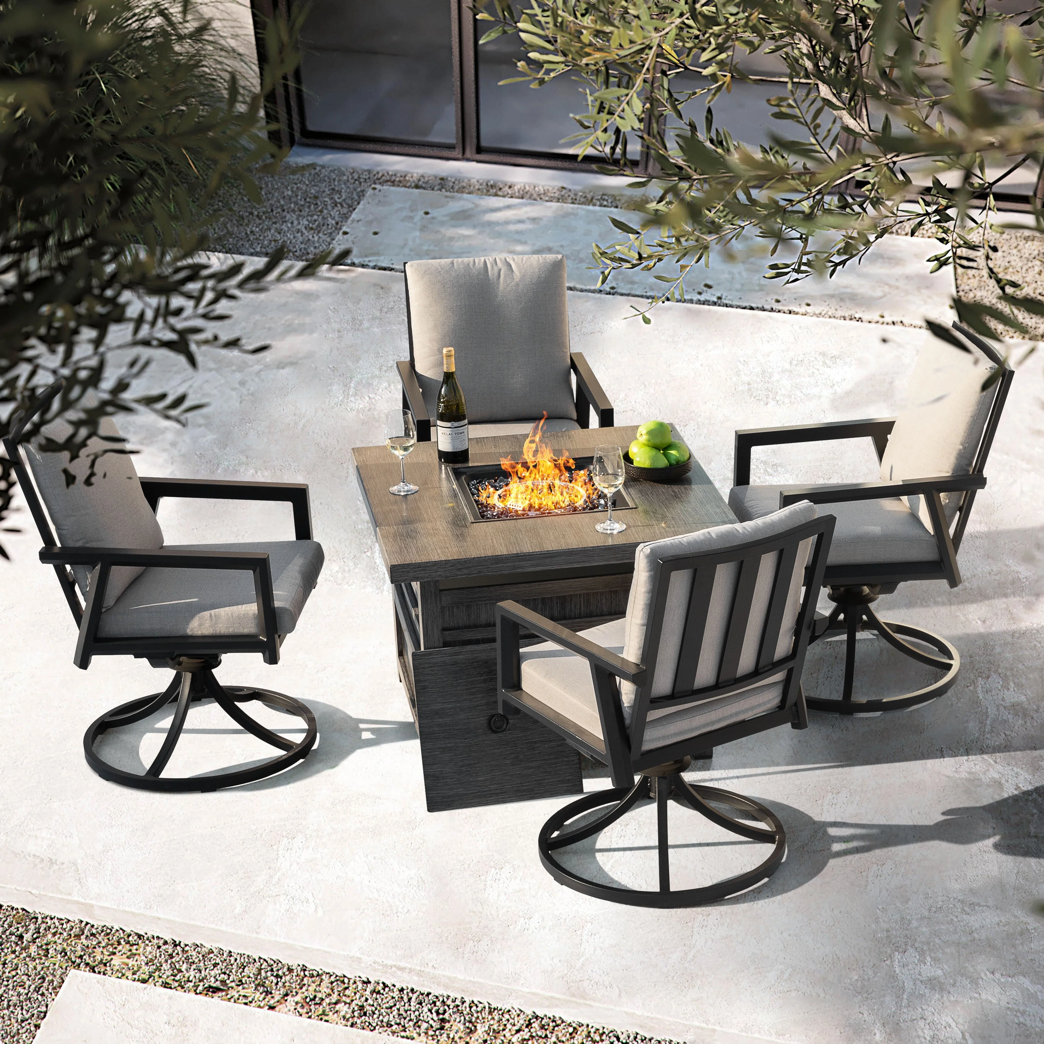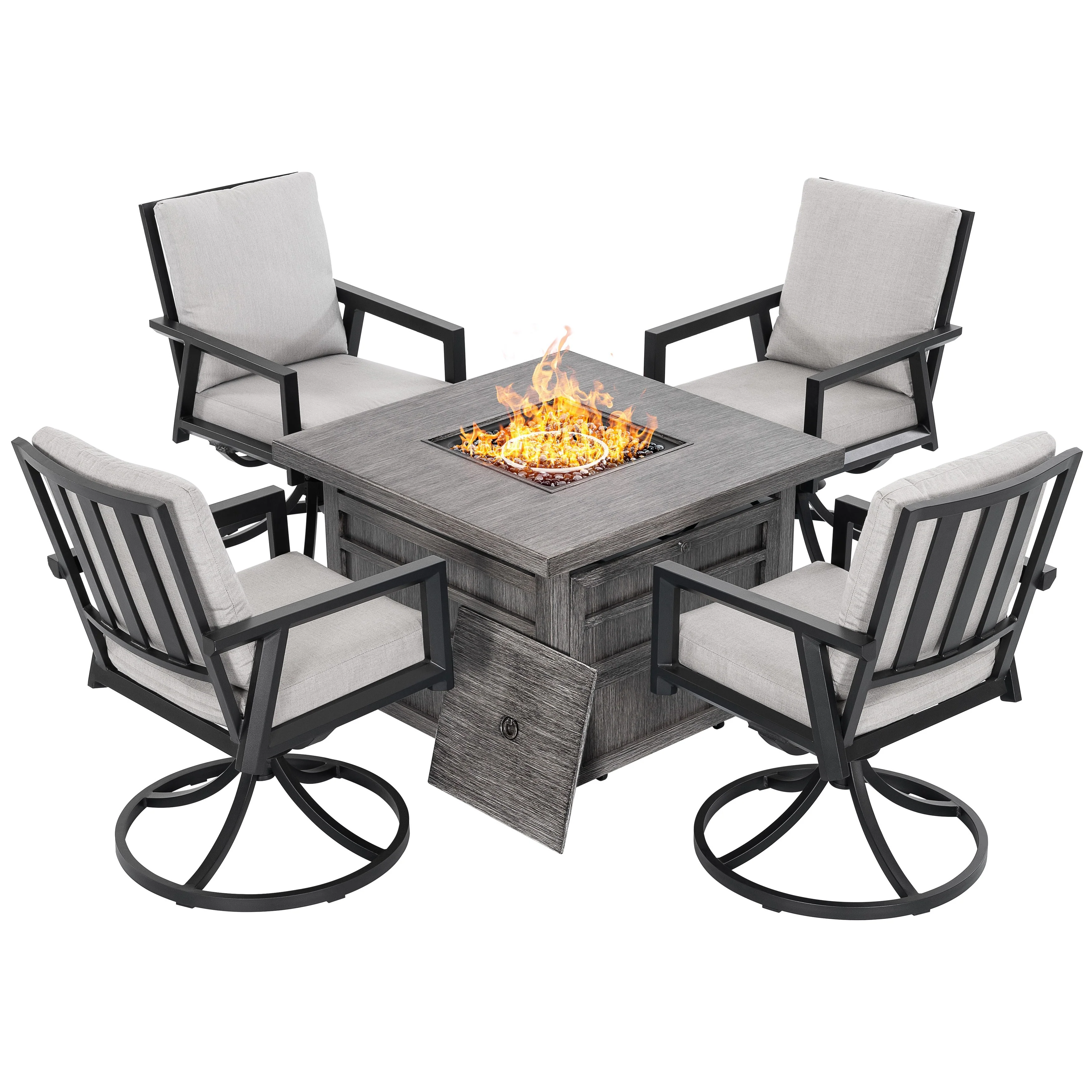 5-Piece Fire Pit Set with 4 Swivel Chairs, Aluminum Frame, Gray