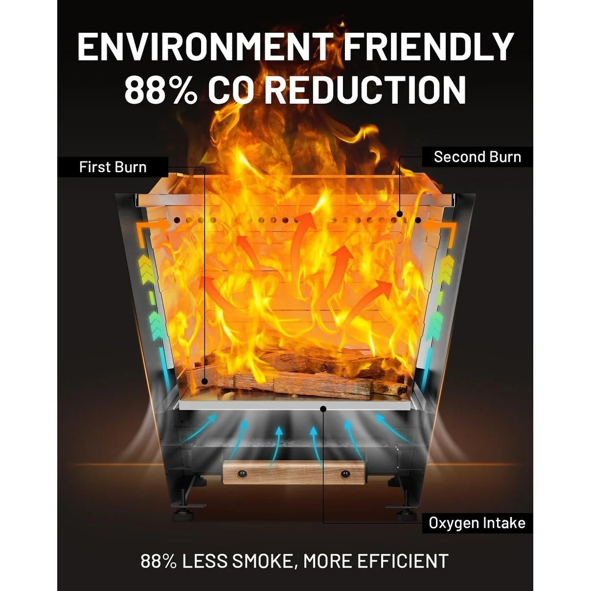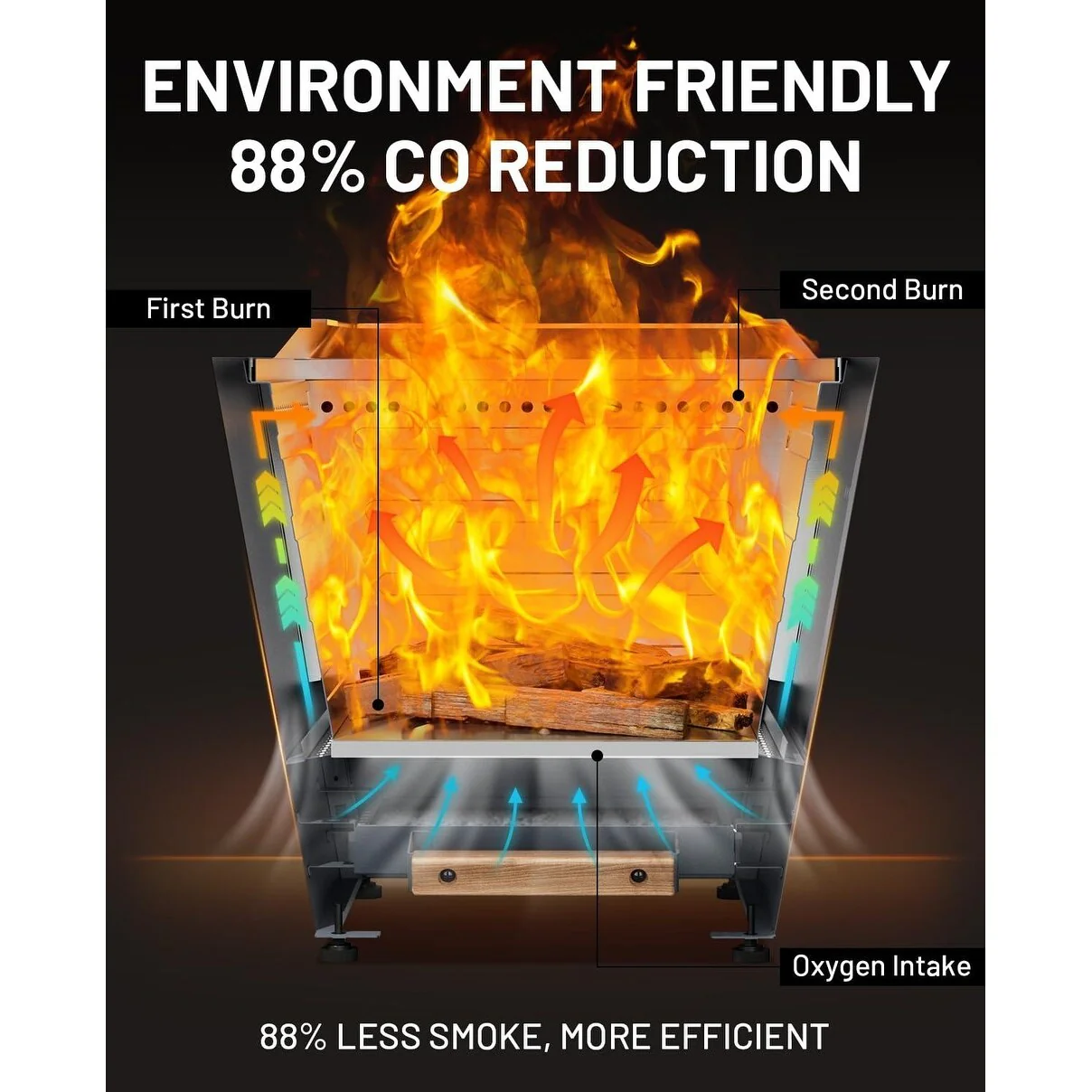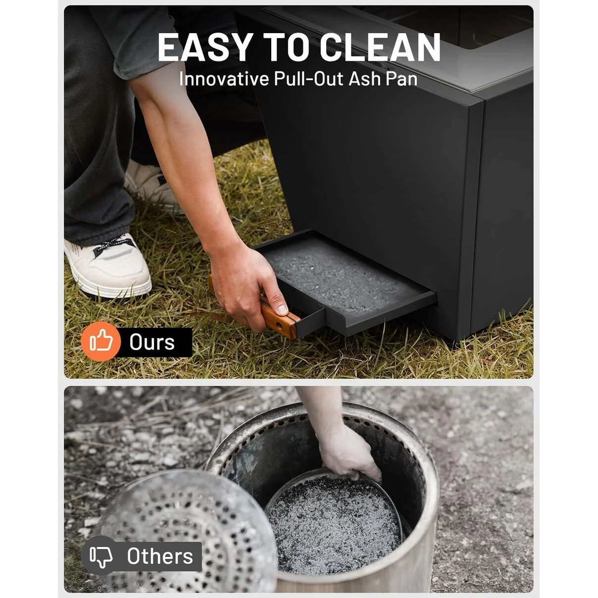 Cyberpit One 20 inch Smokeless Fire Pit, Wood Burning Fireplaces w/ Pull-Out Ash Pan, Portable Outdoor Firepits