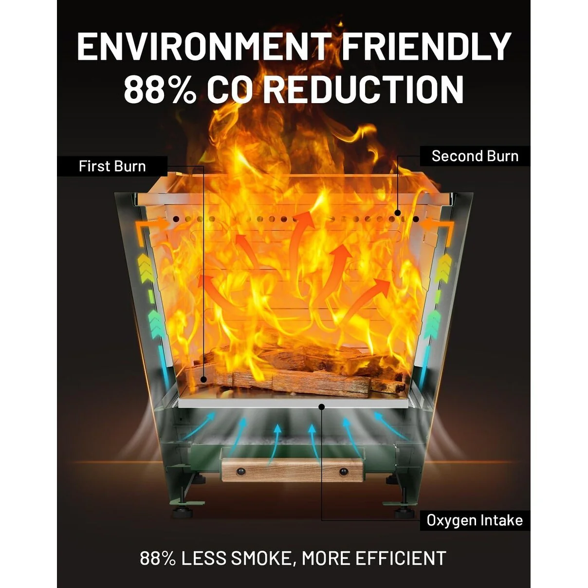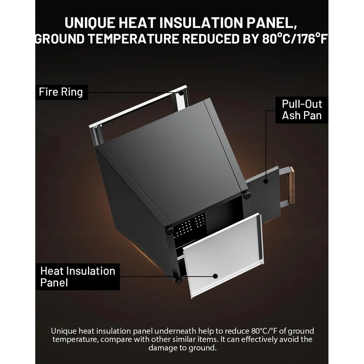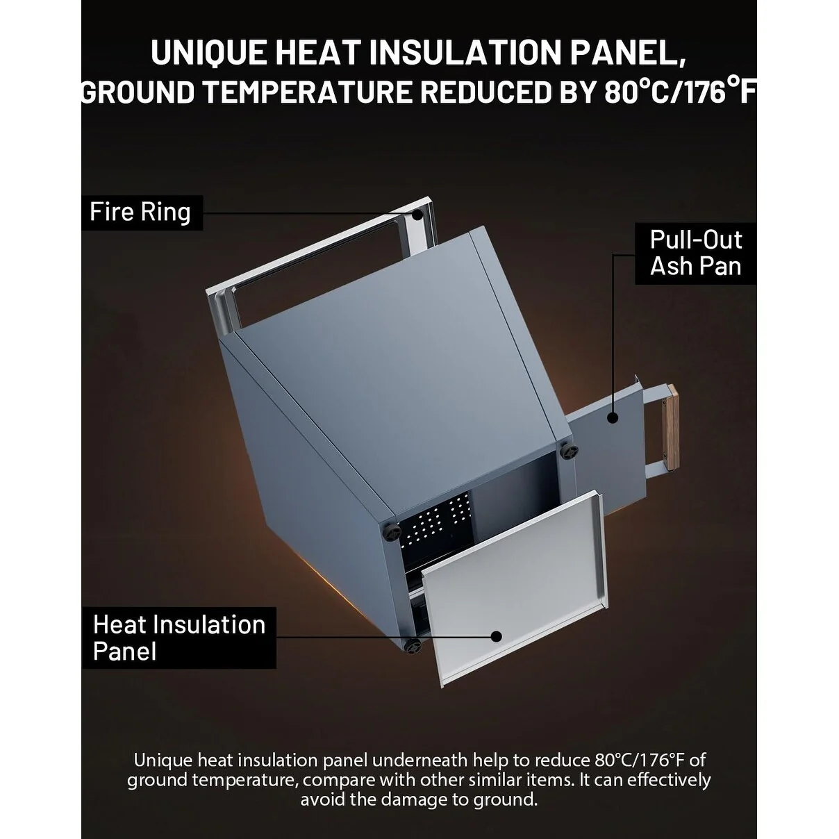 Cyberpit One 20 inch Smokeless Fire Pit, Wood Burning Fireplaces w/ Pull-Out Ash Pan, Portable Outdoor Firepits
