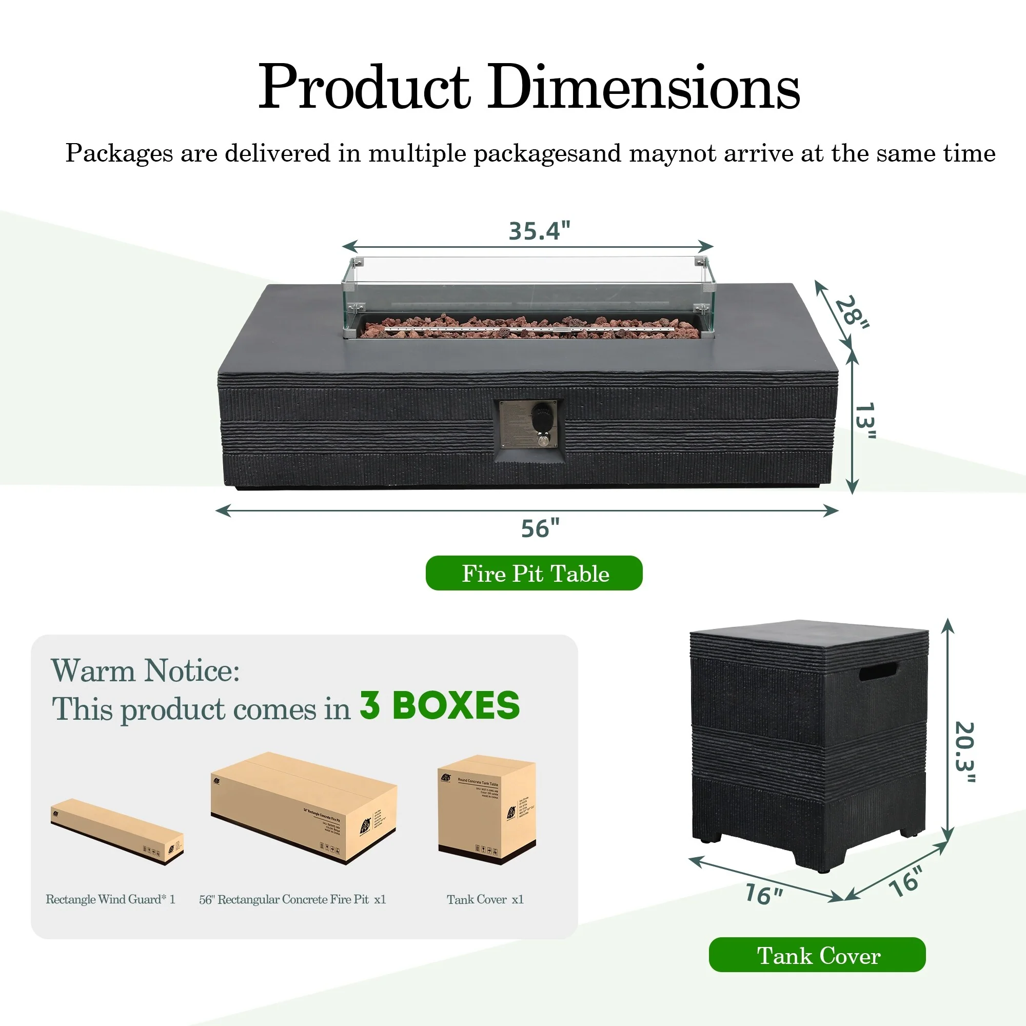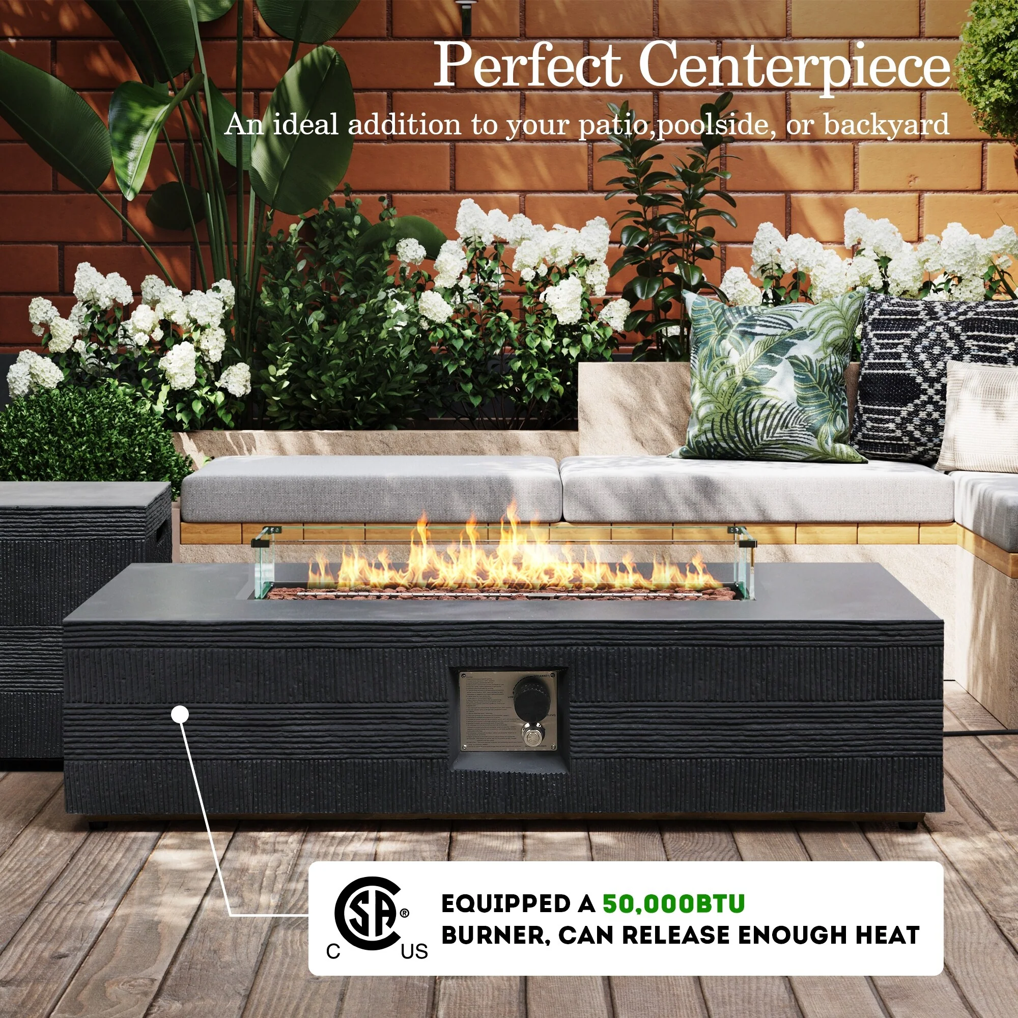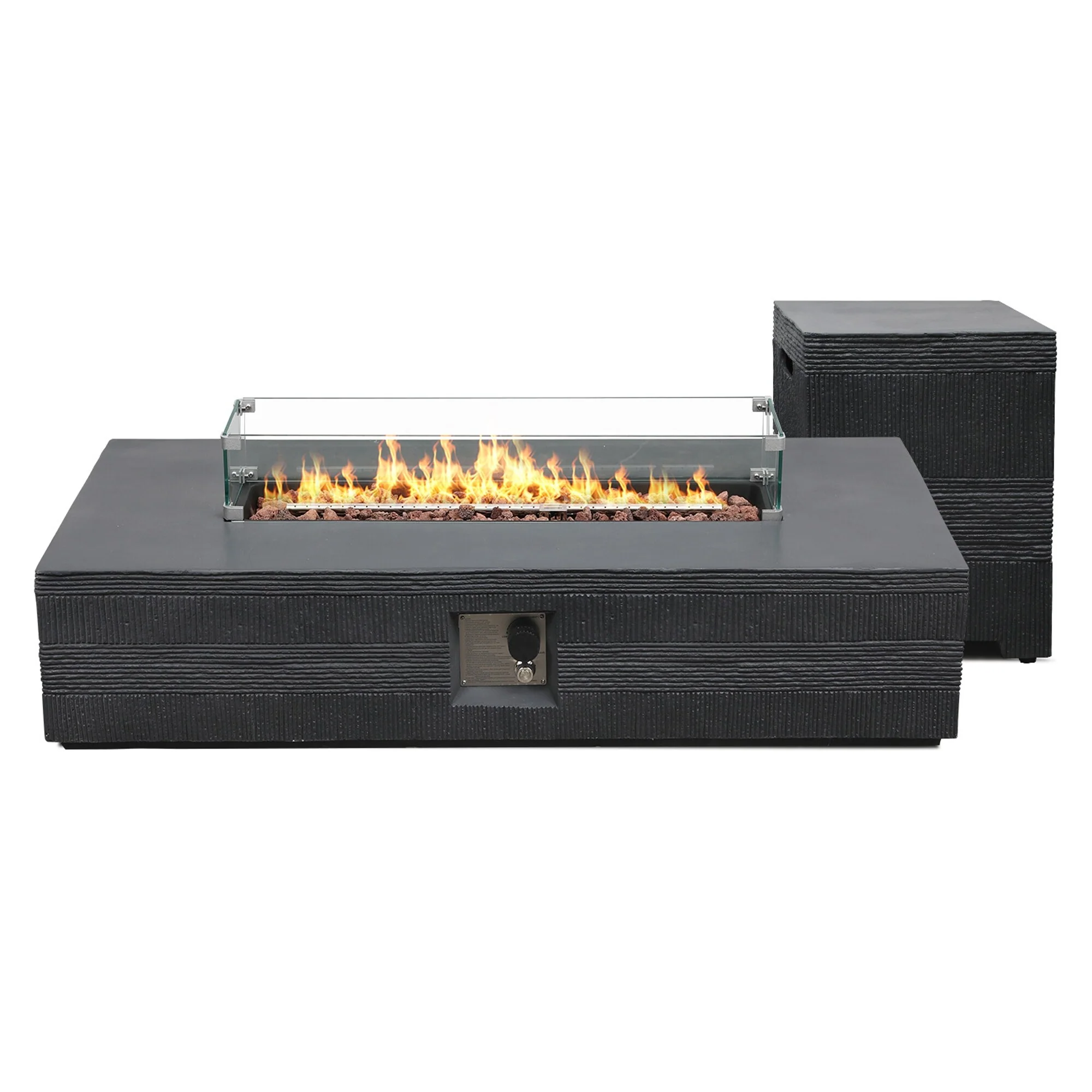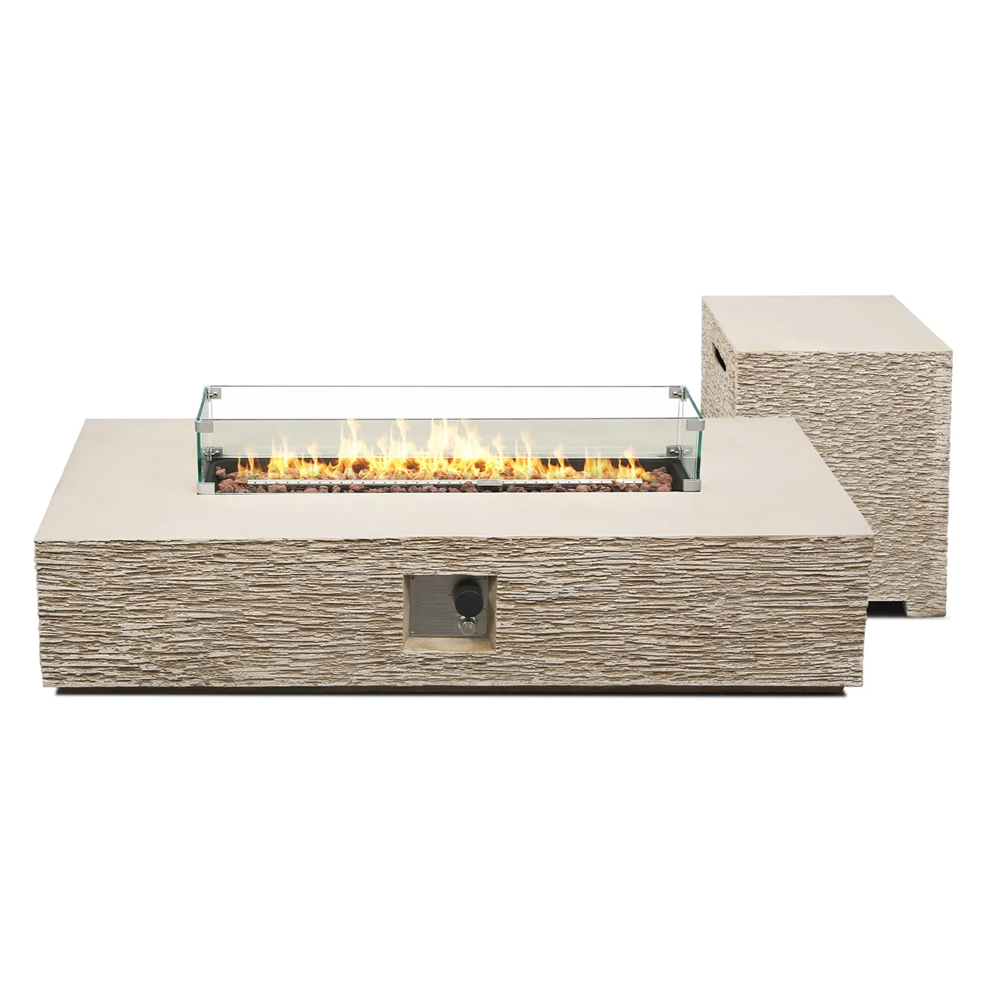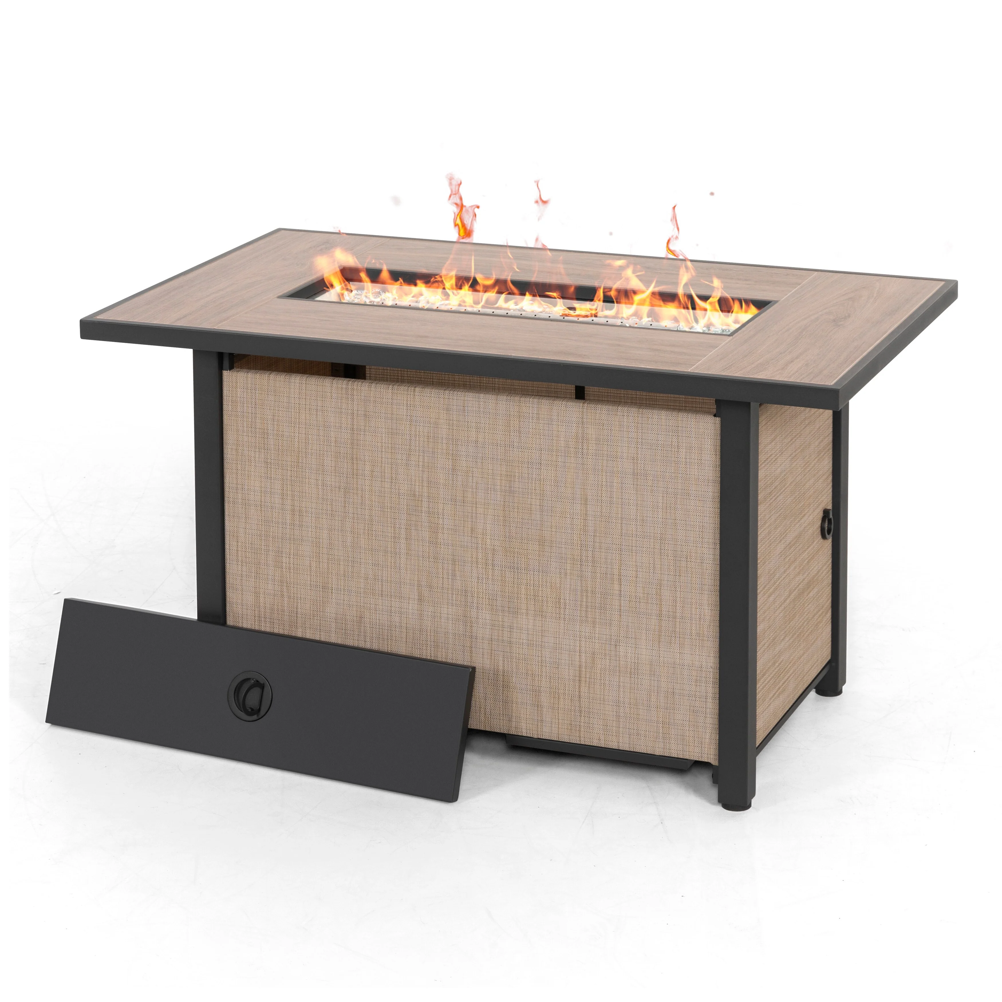 Patio Watcher 56in. Outdoor Rectangle Magnesium Oxide Fire Pit Table with Gas Tank Cover and Wind Guard