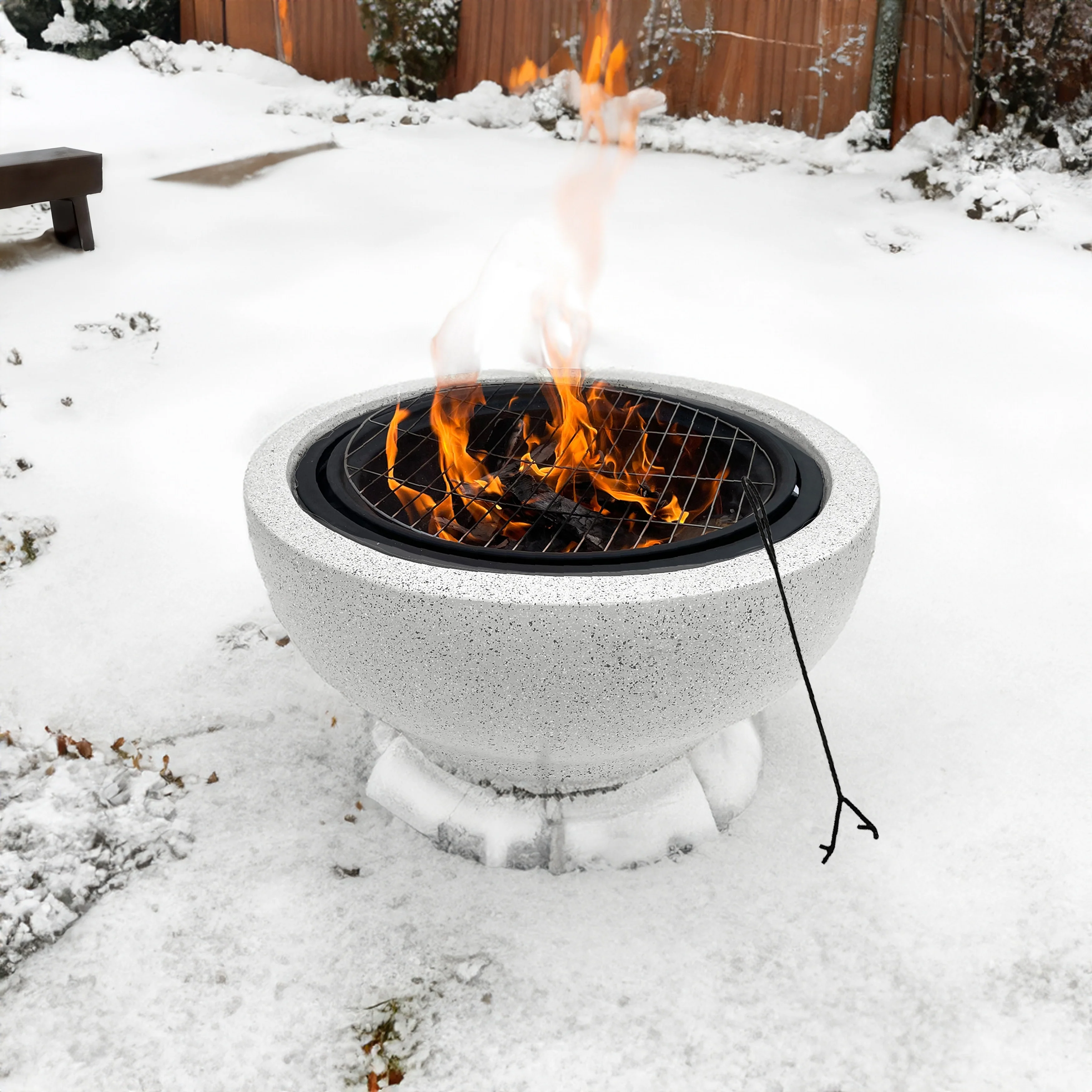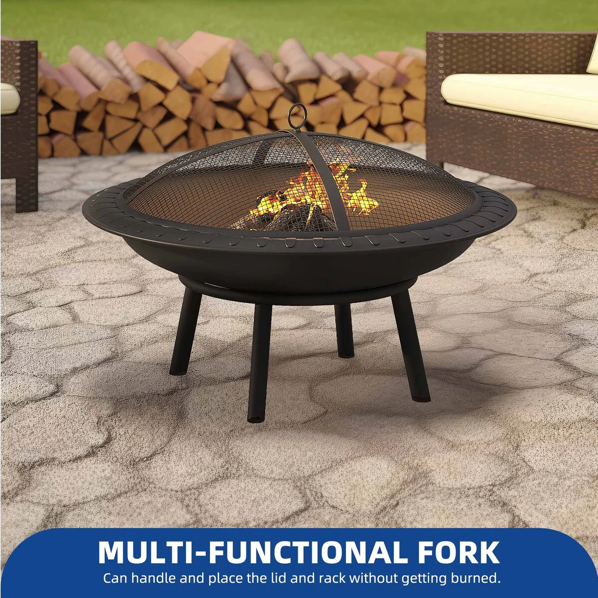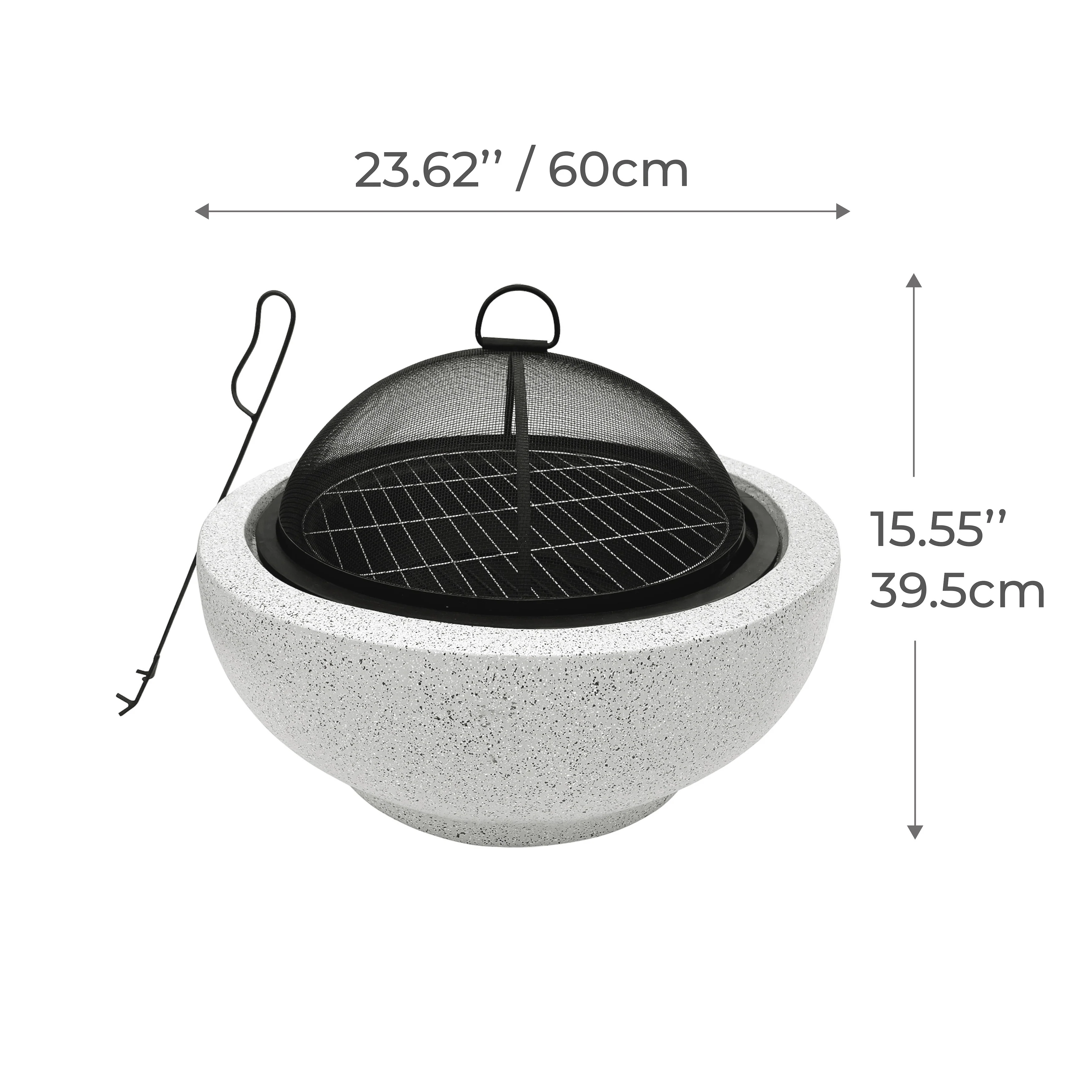 23 Inch Durable Wood Burning Fireplace Bowl with Grill Rack for Patio GardenOutdoor Fire Pit