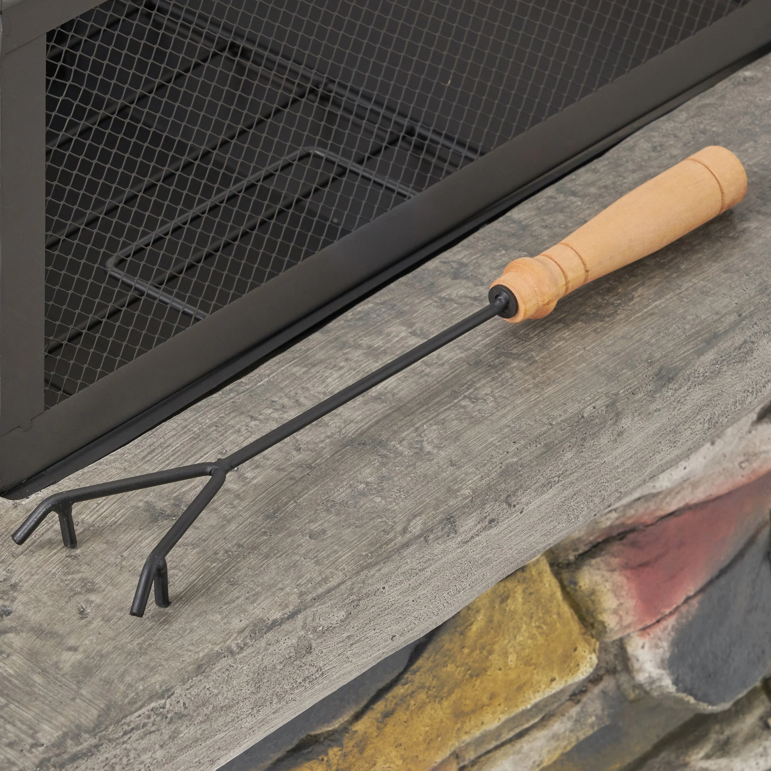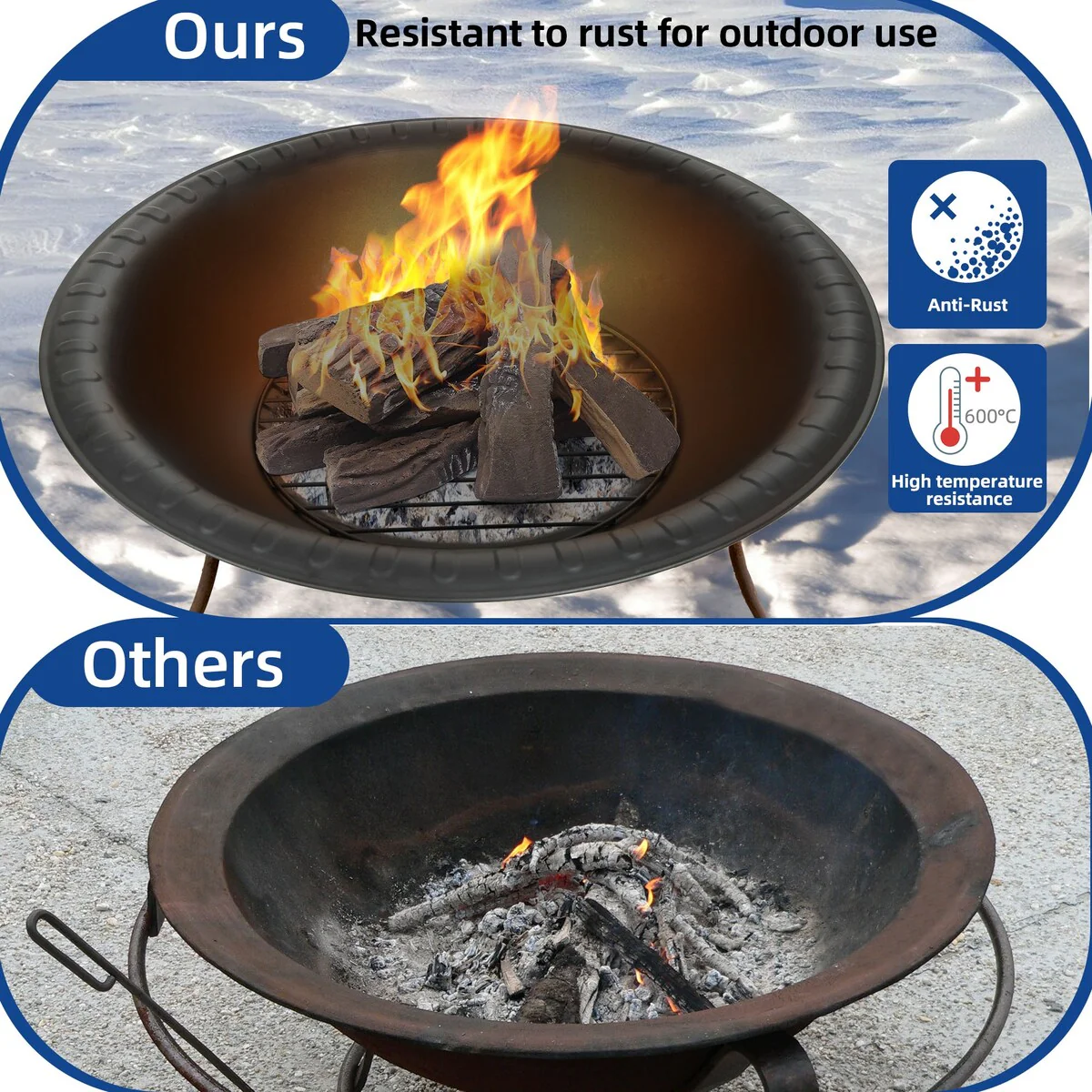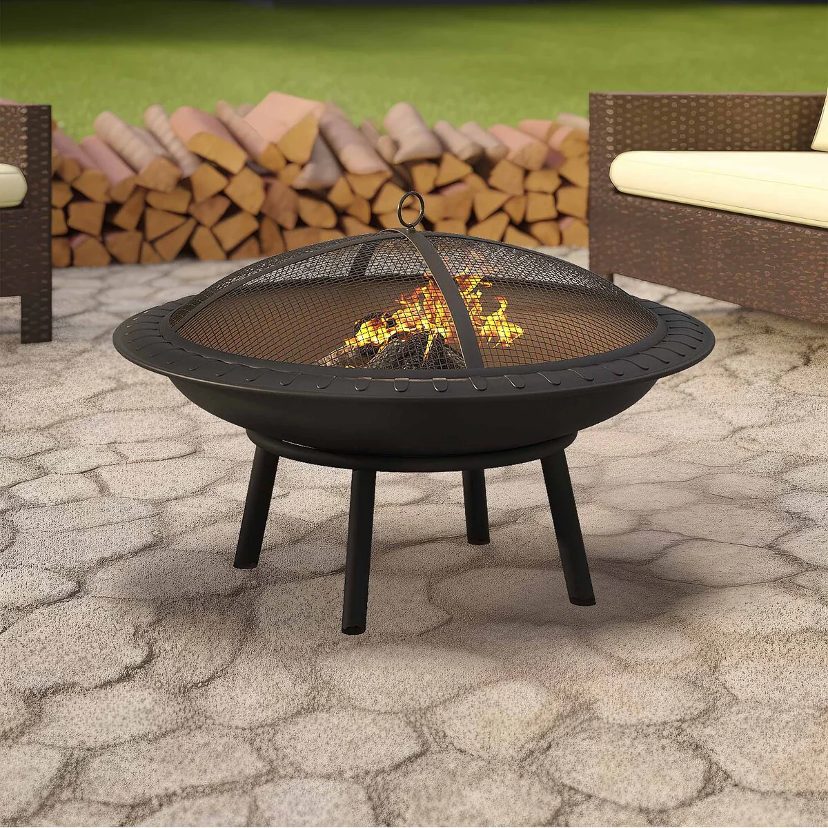 23 Inch Durable Wood Burning Fireplace Bowl with Grill Rack for Patio GardenOutdoor Fire Pit