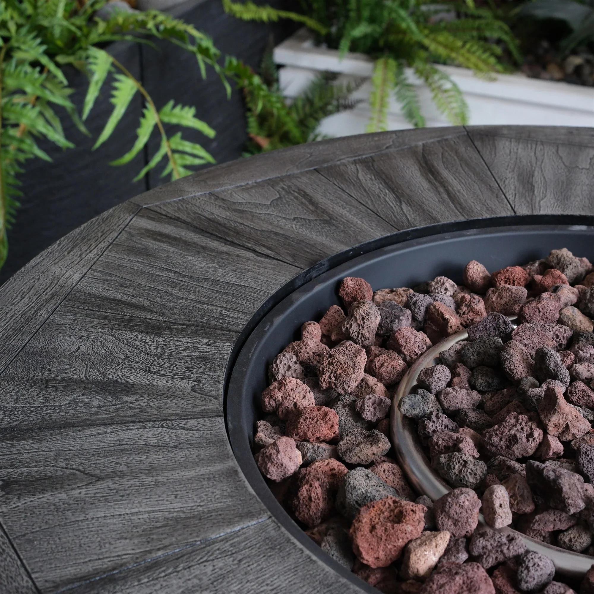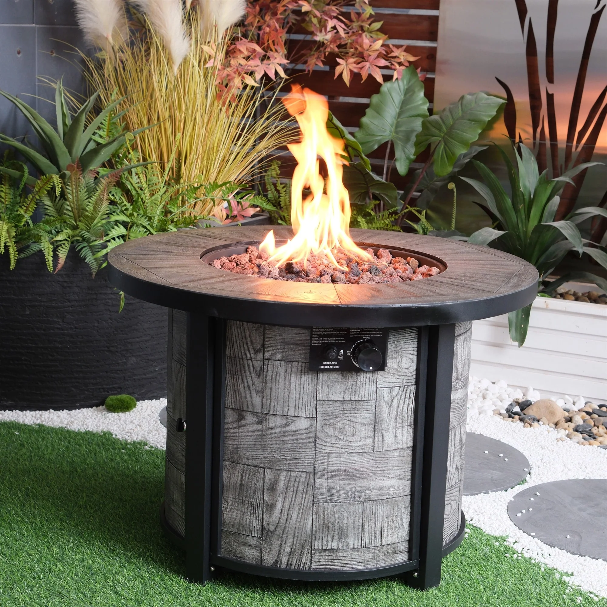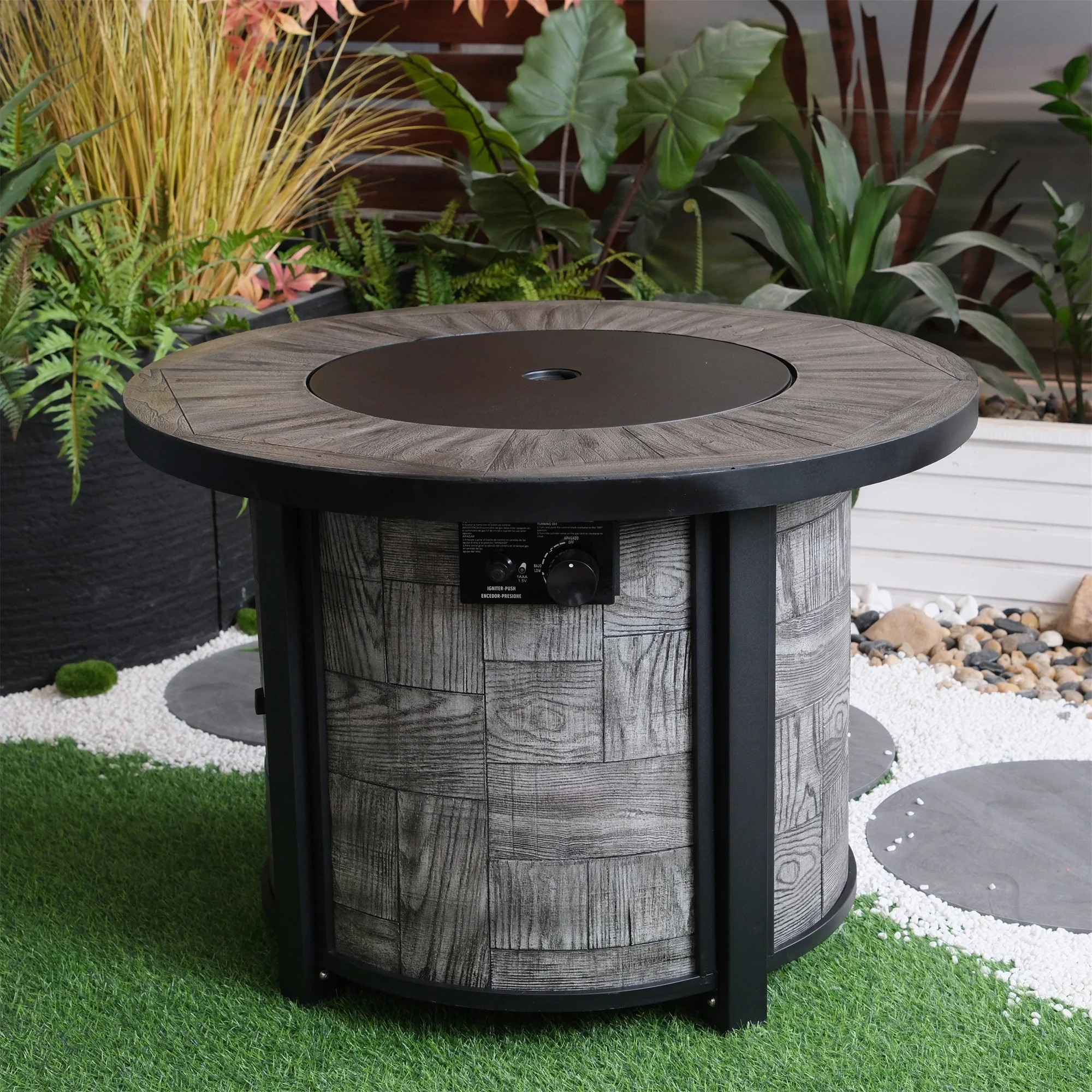 36 in. W x 36 in. D x 25 in. H Round Propane Gas Burning Outdoor Fire Pit in Wood