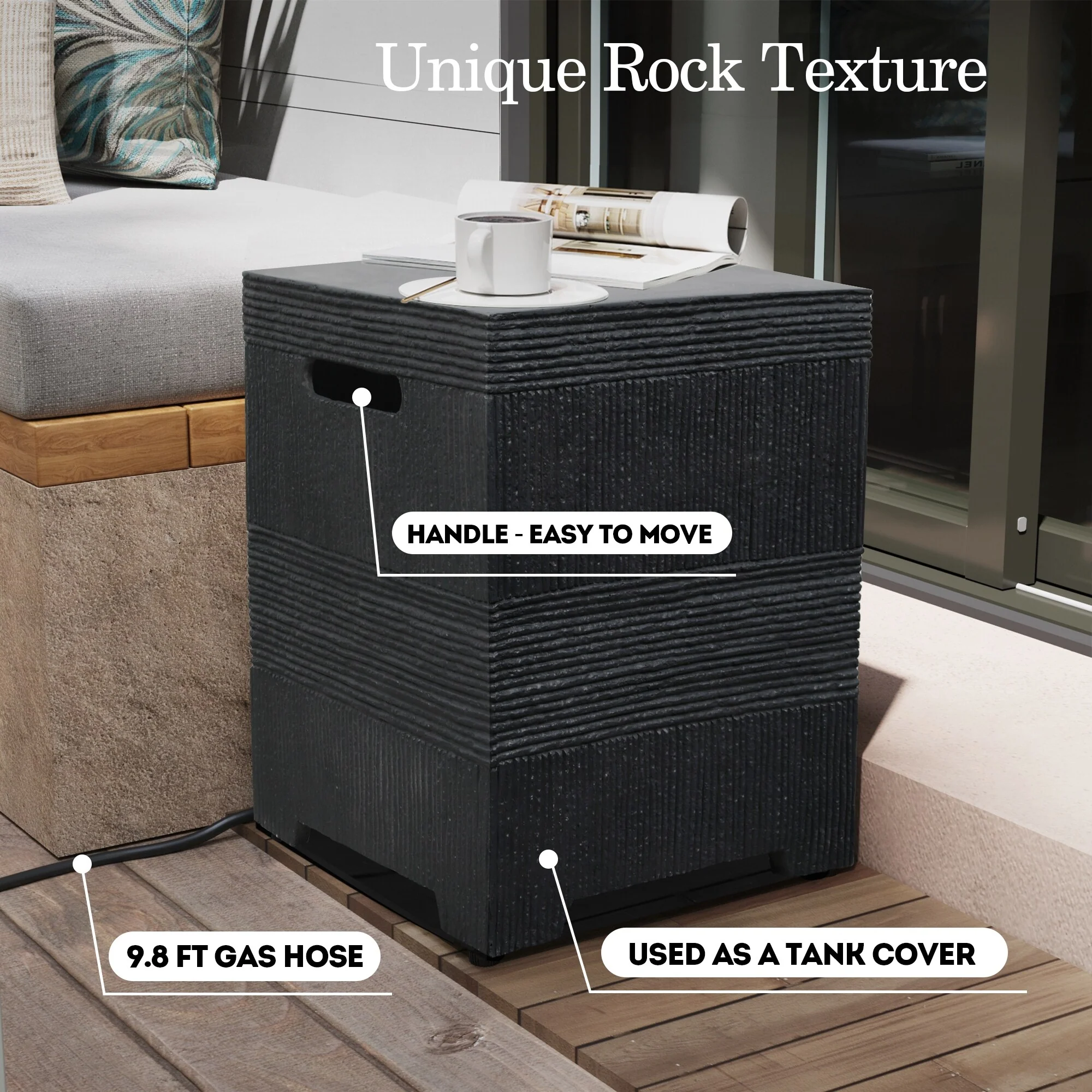 Gray Propane Tank Cover Table with Waterproof PVC Cover and Adjustable Feet - 42.5" x 17.5" x 13"