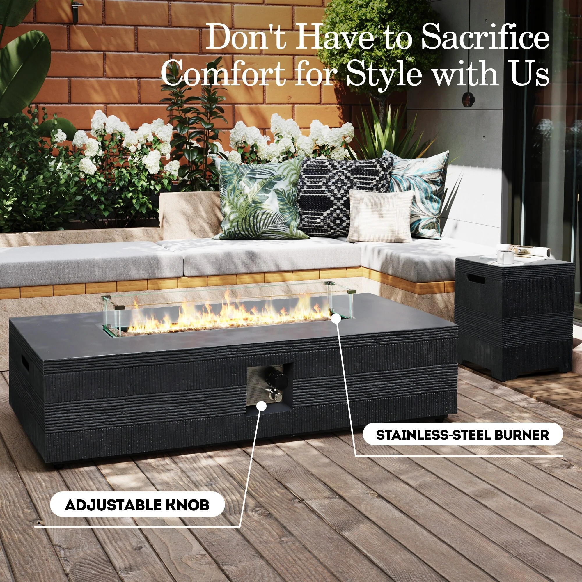 40000 BTU Outdoor 28 Inch Square Propane Fire Pit Table