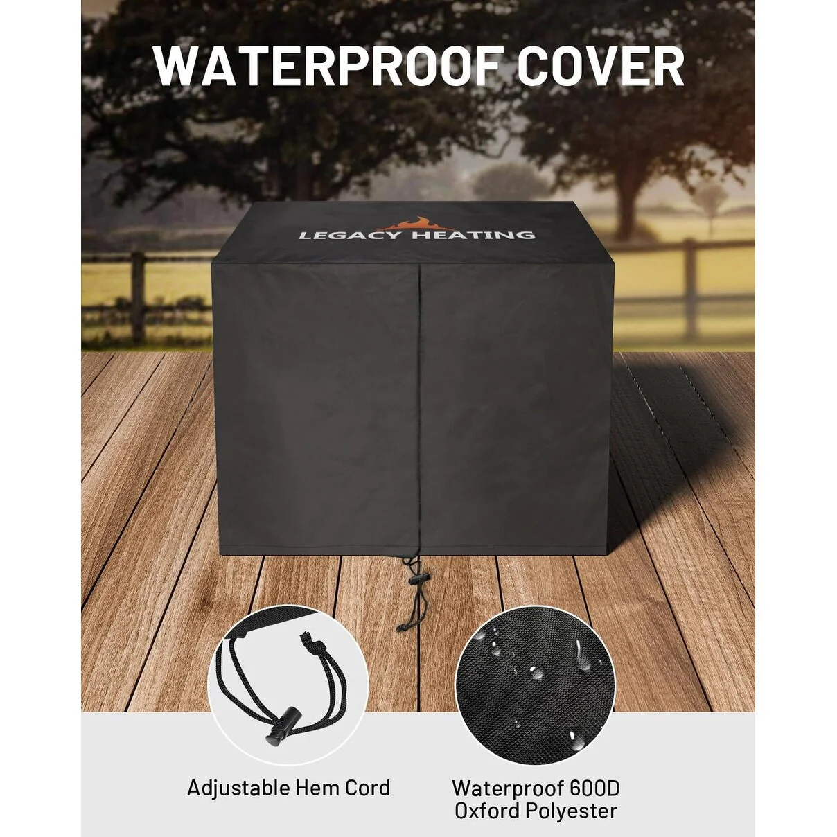 UPHA 40.5-Inch Round Iron Propane Outdoor Fire Pit Table includes Tank Cover, Lid, Rain Cover and Wind Guard in White
