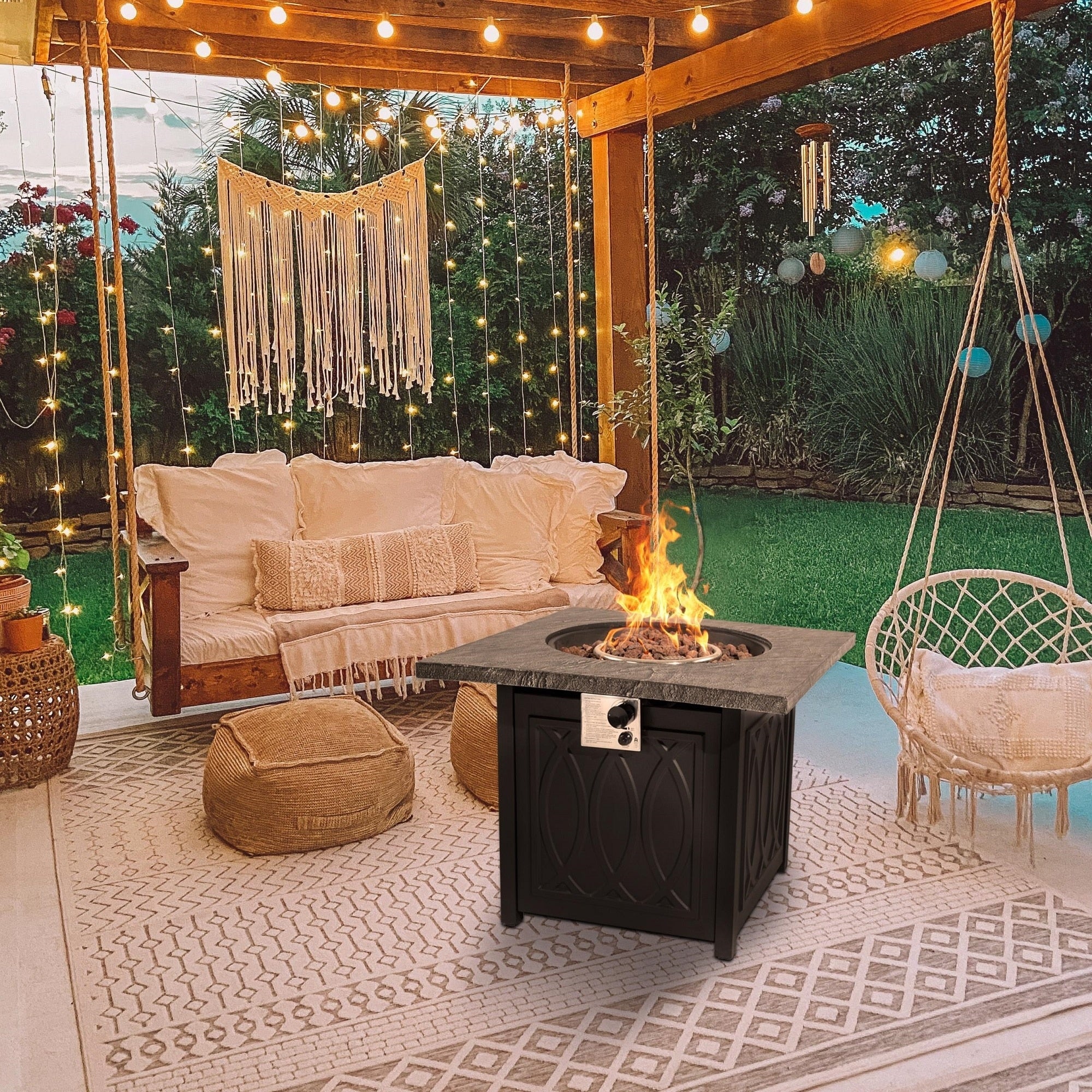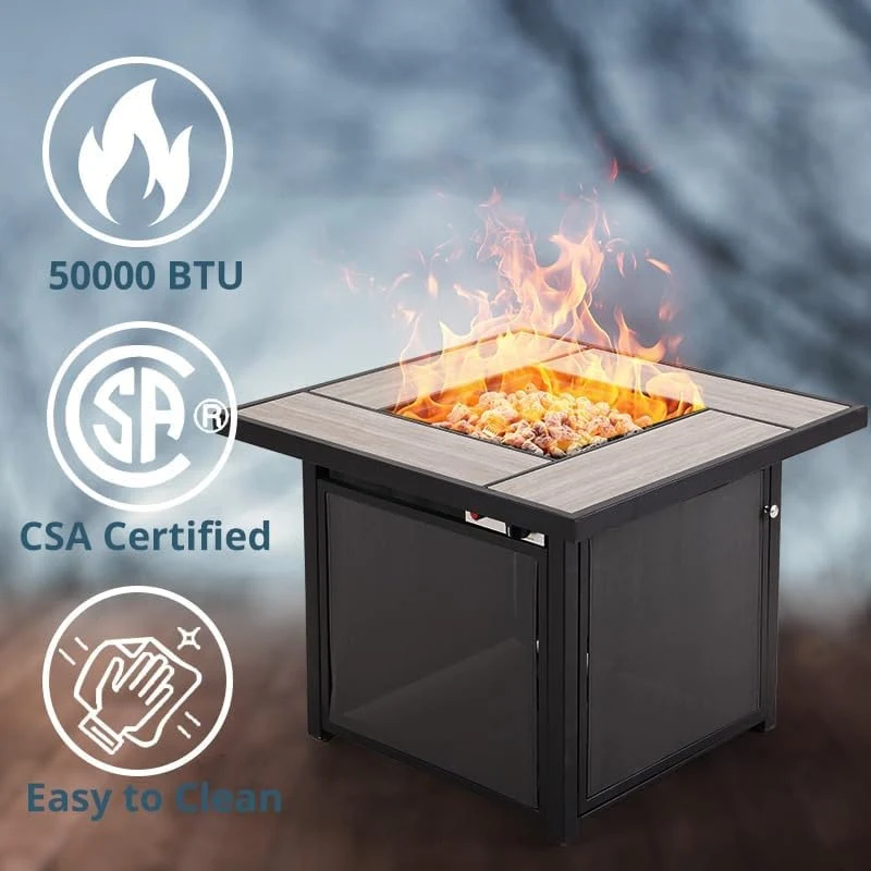 50,000 BTU Outdoor Square Fire Pit Table Propane Gas