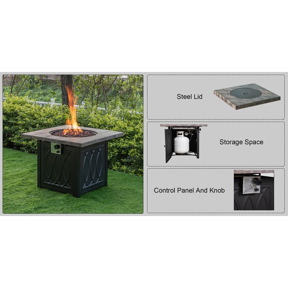 28-Inch Square Propane Fire Pit Table Crafted from Iron