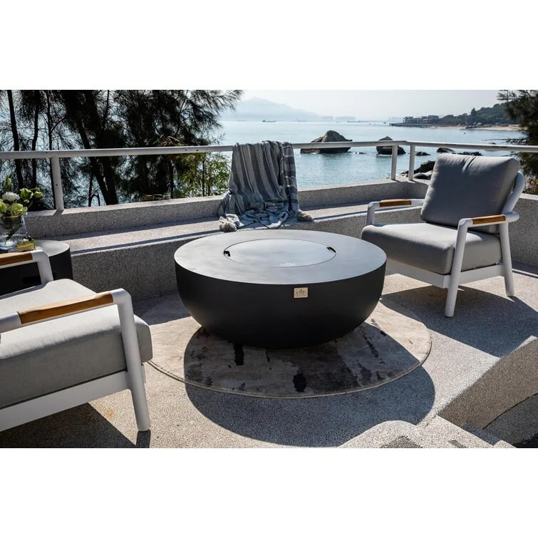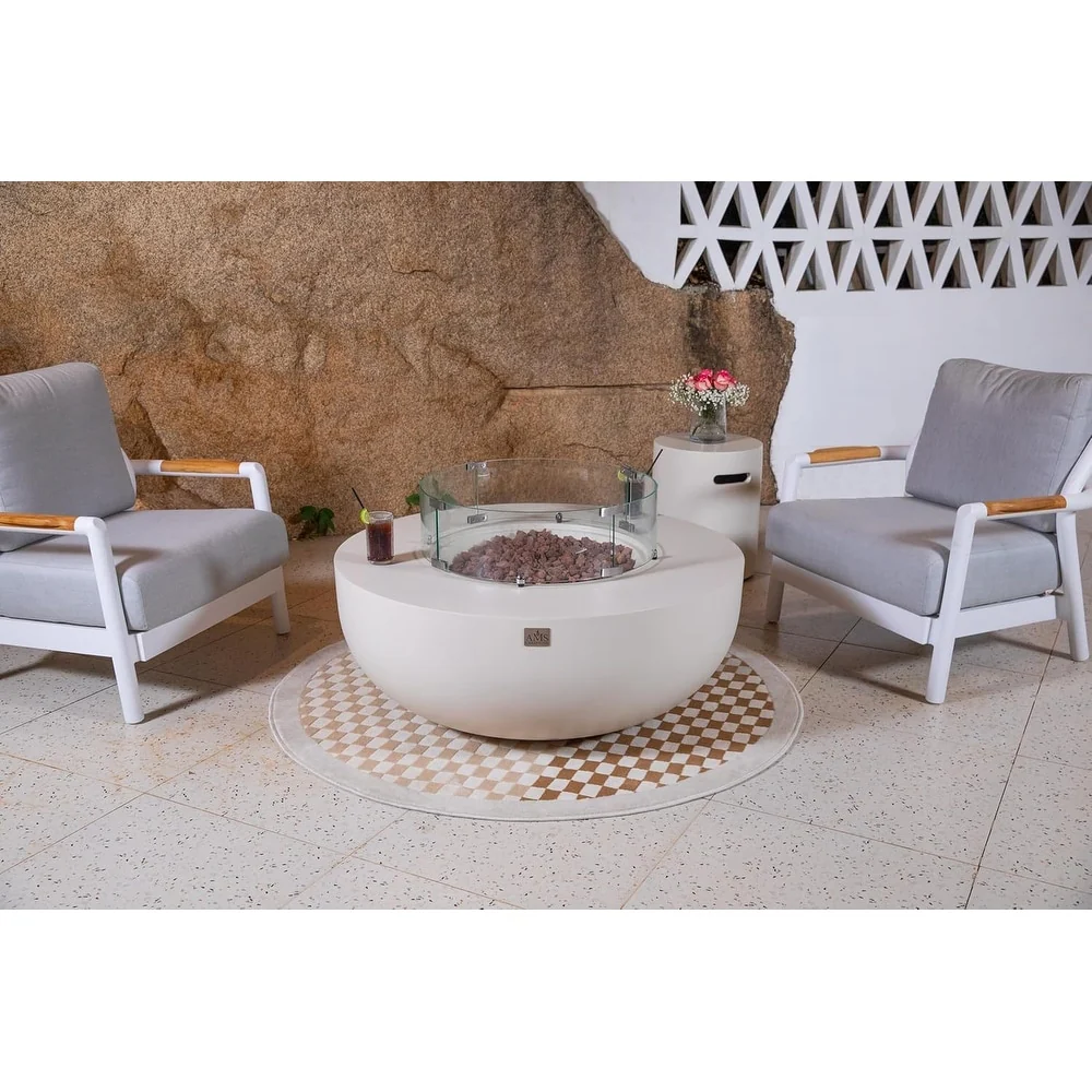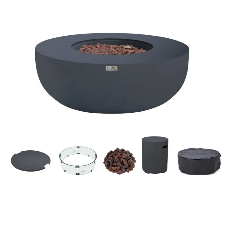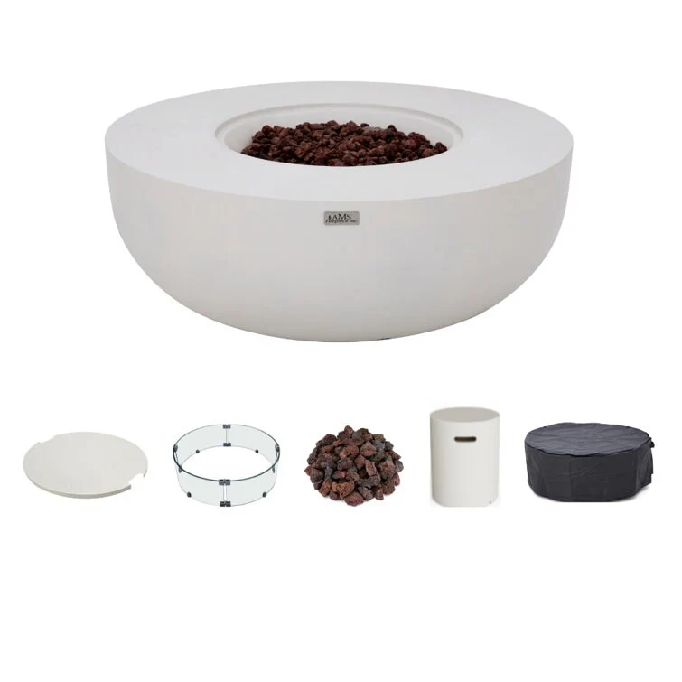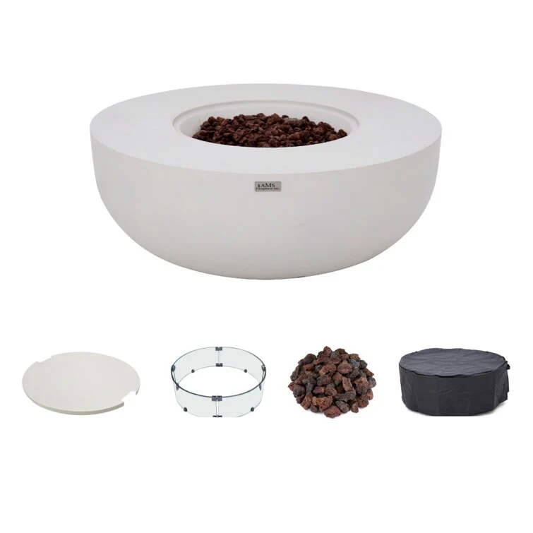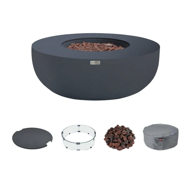AMS Fireplace Eclipse Round Outdoor Fire Pit Bundle - 44" x 44" x 17"