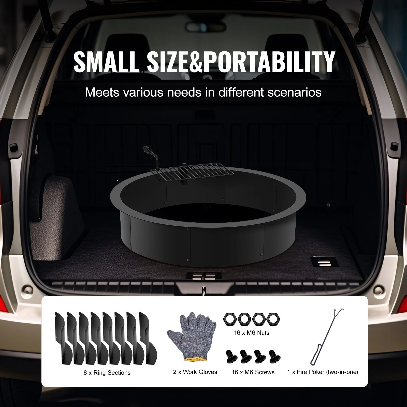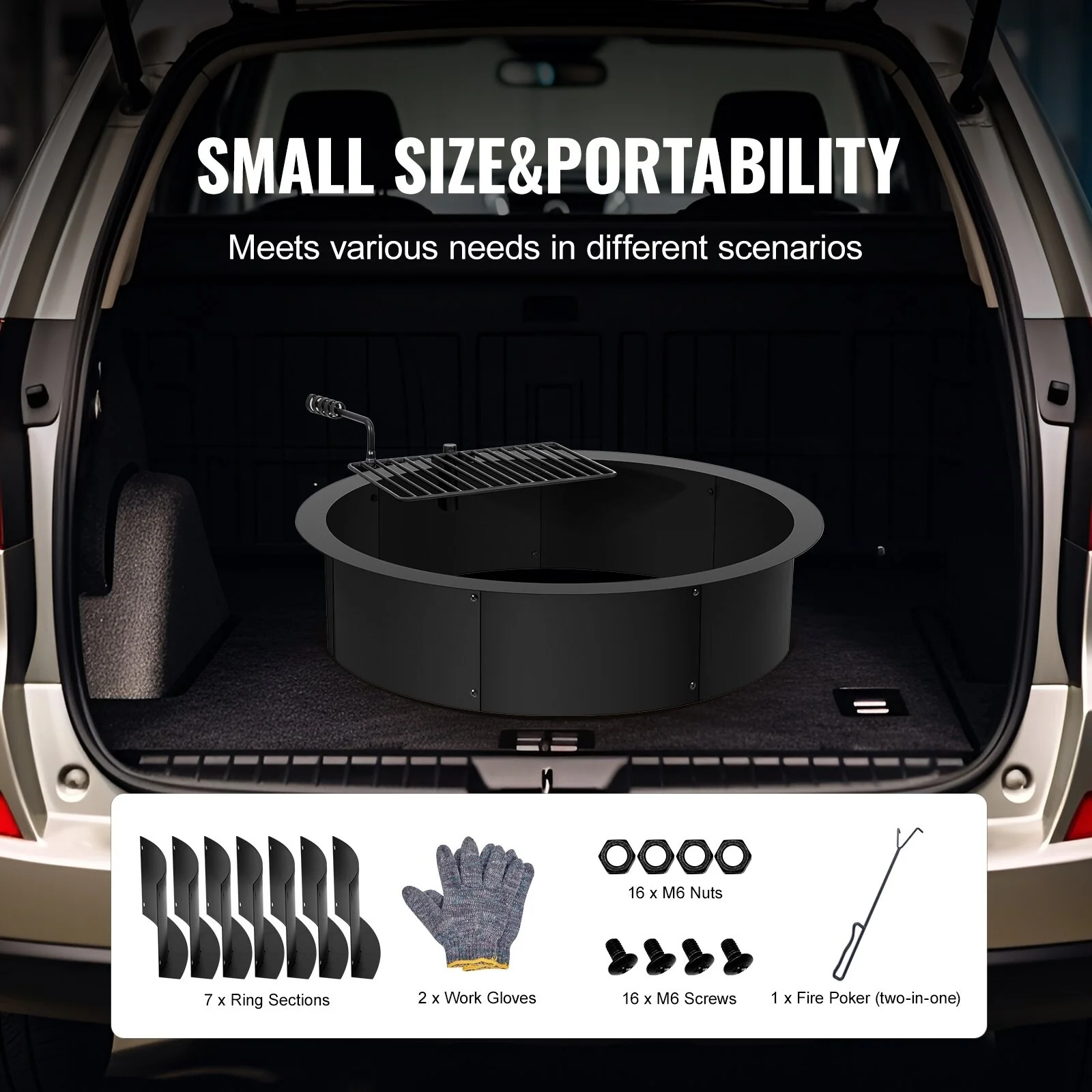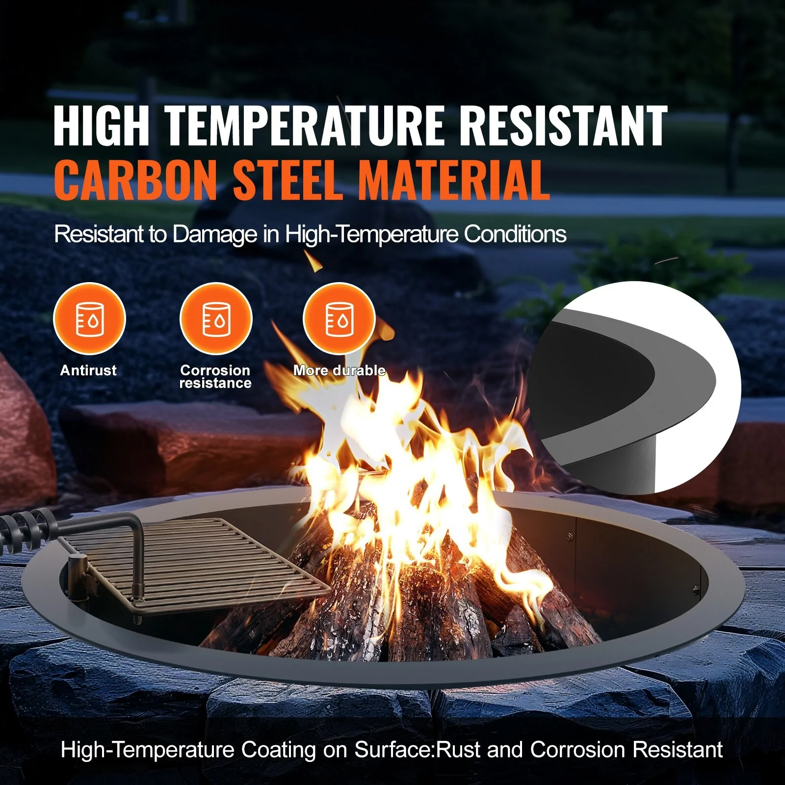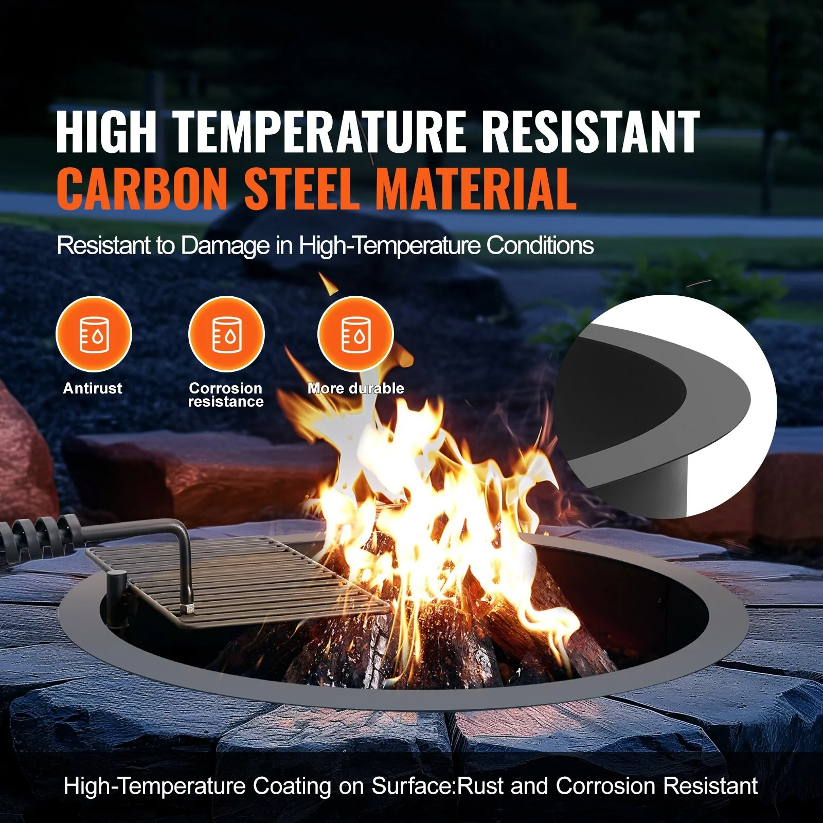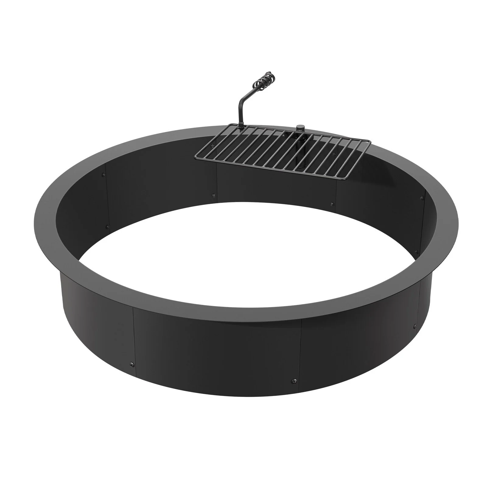 Black Carbon Steel Fire Pit Ring with BBQ Fire Ring, Swivel Grate - 34.84 x 34.84 x 13.15 in