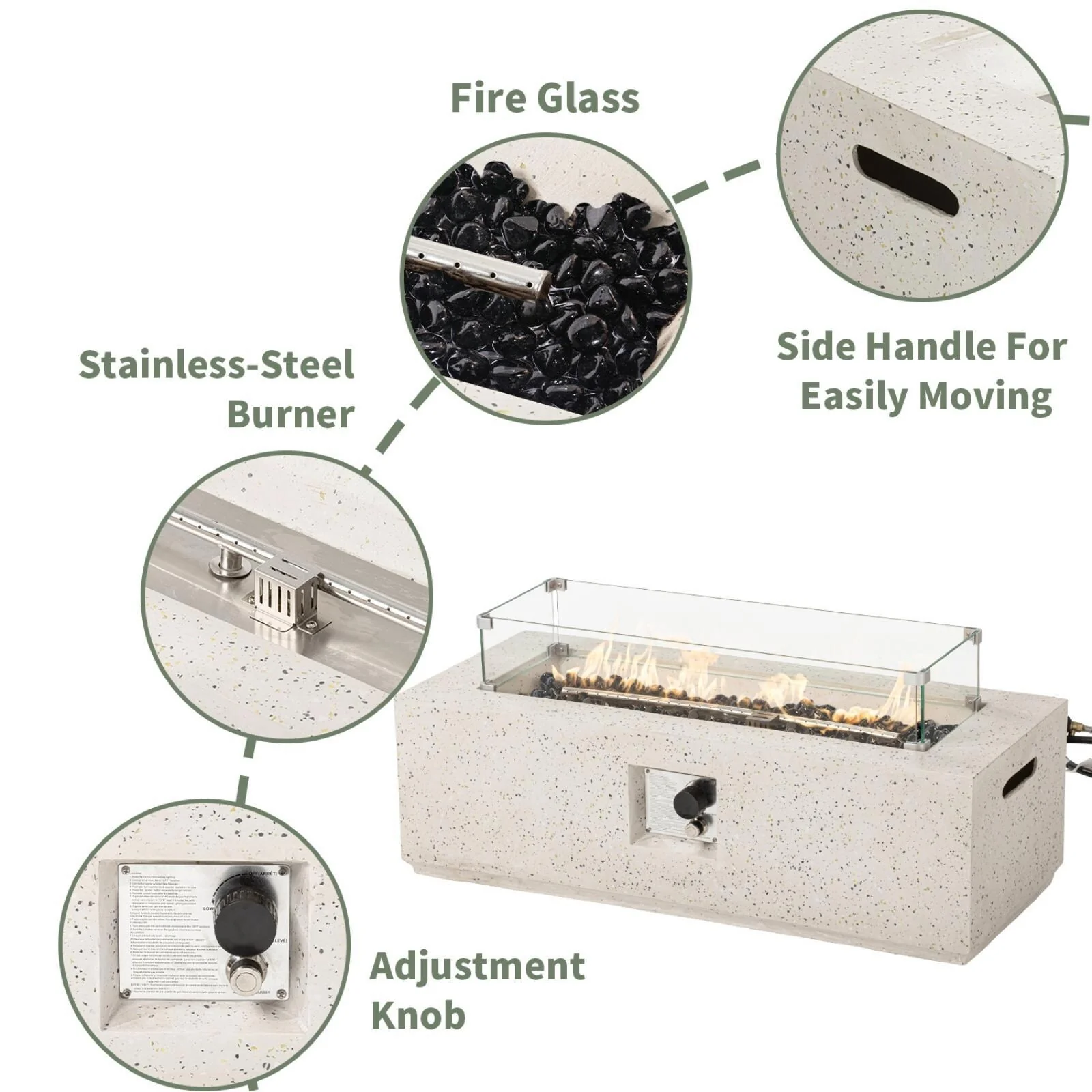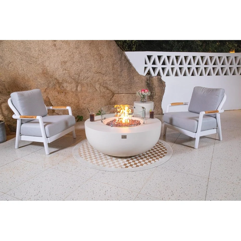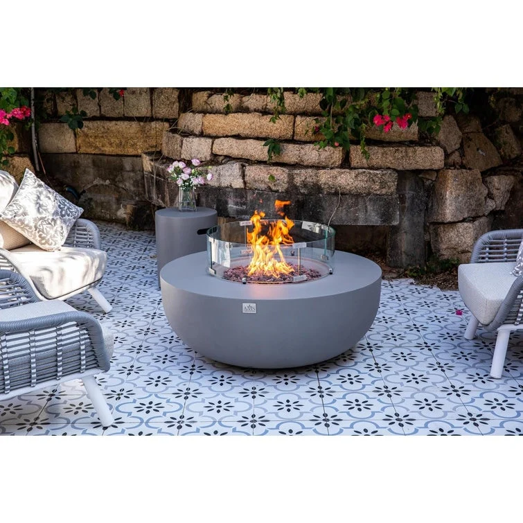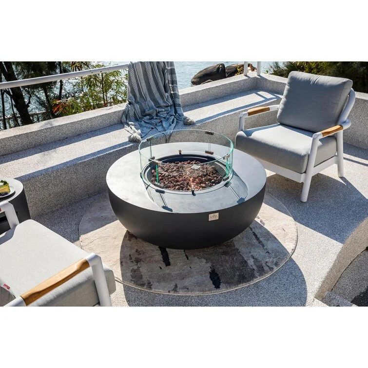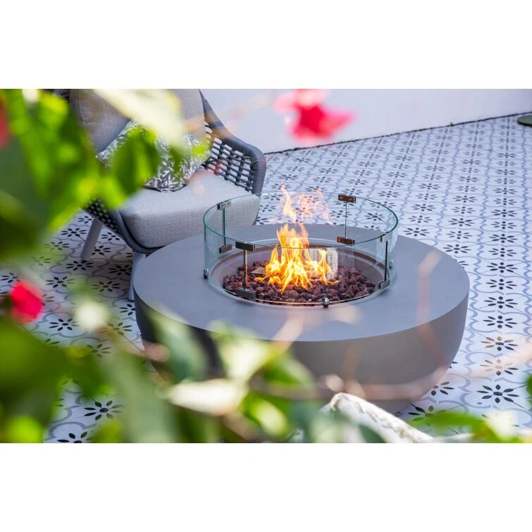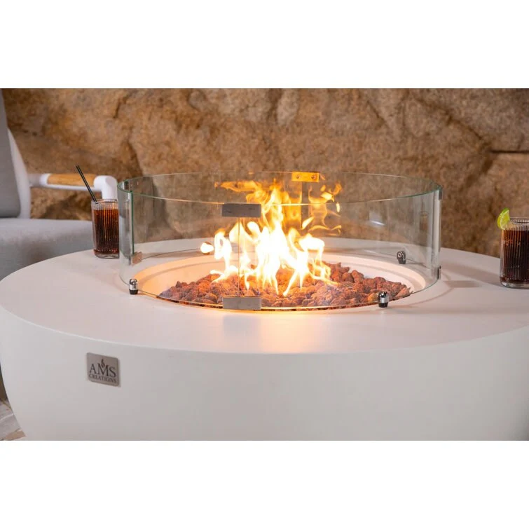 GDFStudio - Mason Contemporary Outdoor Fire Pit Table with Wind Guard and Glass Stone Accent