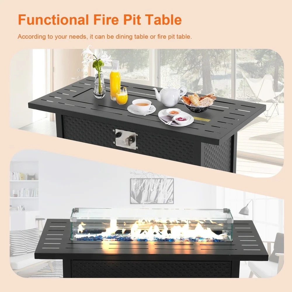 Outdoor 50000 BTU Rectangular 45�� Propane Fire Pit Table with Glass Wind Guard for Patio, Deck, Backyard, Black