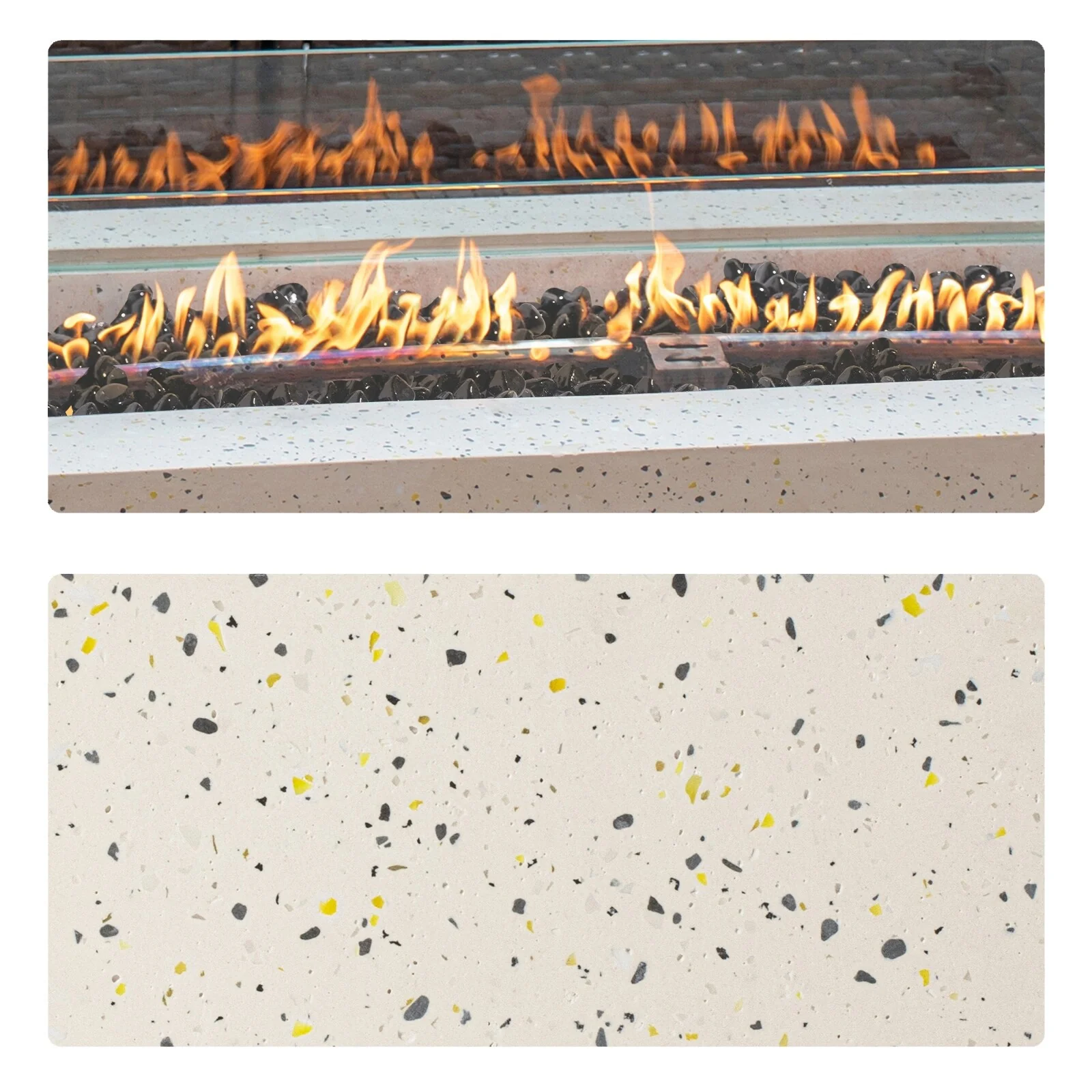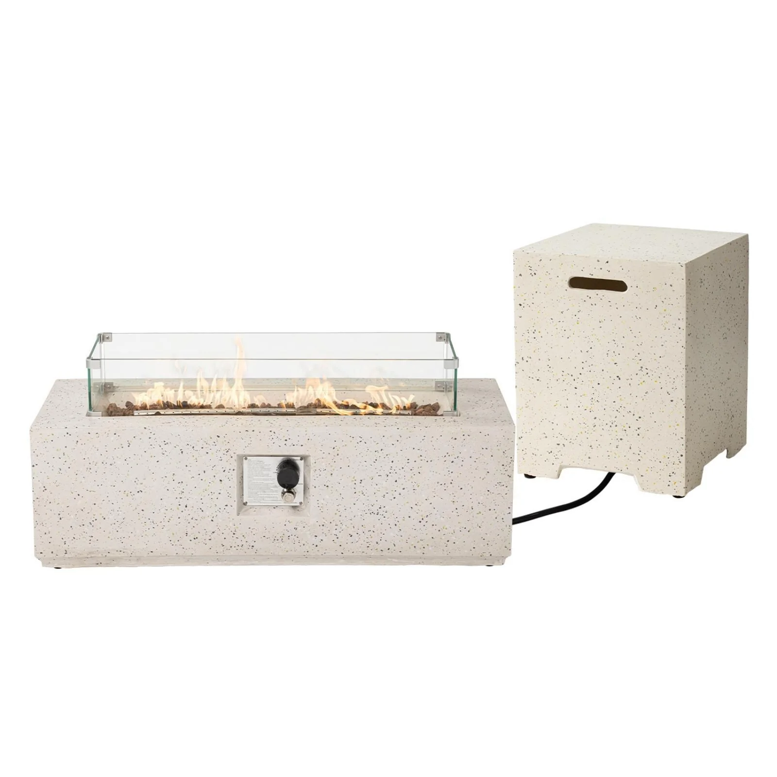 GDFStudio - Solana Outdoor Square Propane Fire Pit Table with Glass Rocks
