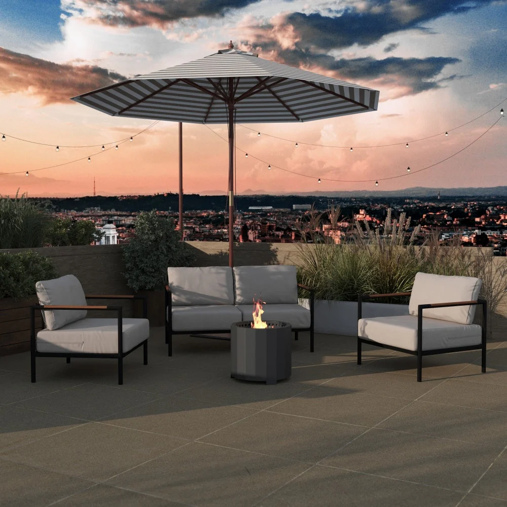 LSI 25'' H x 30'' W Steel Outdoor Fire Pit Table with Lid