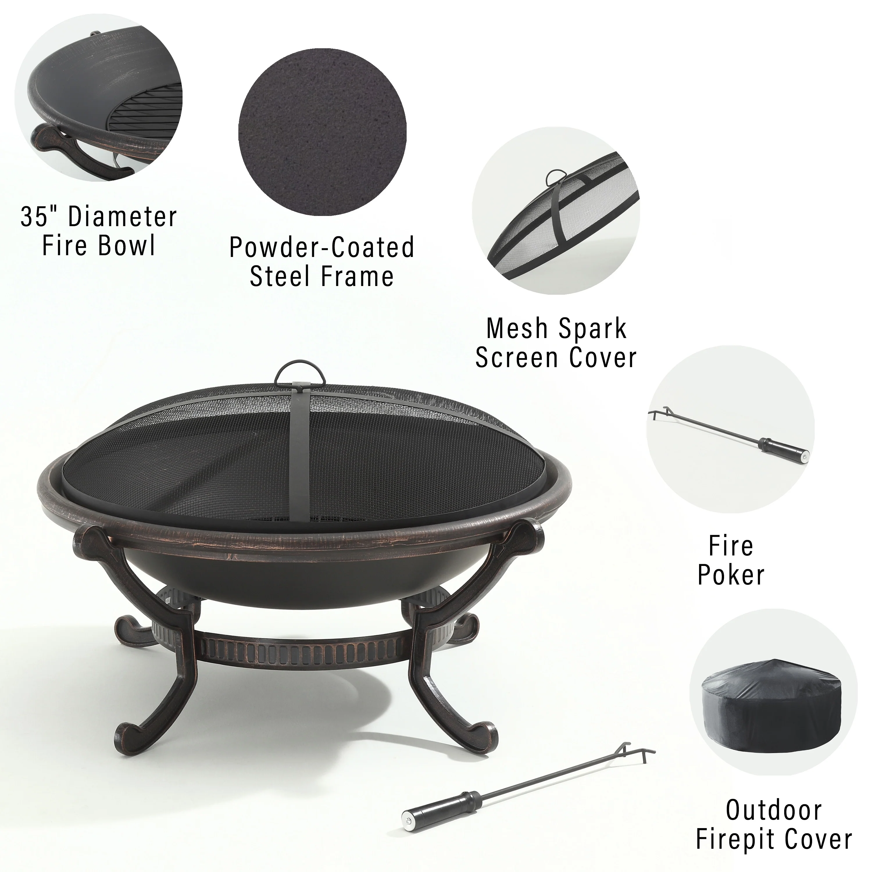 Round 36-Inch Iron Fire Pit Table