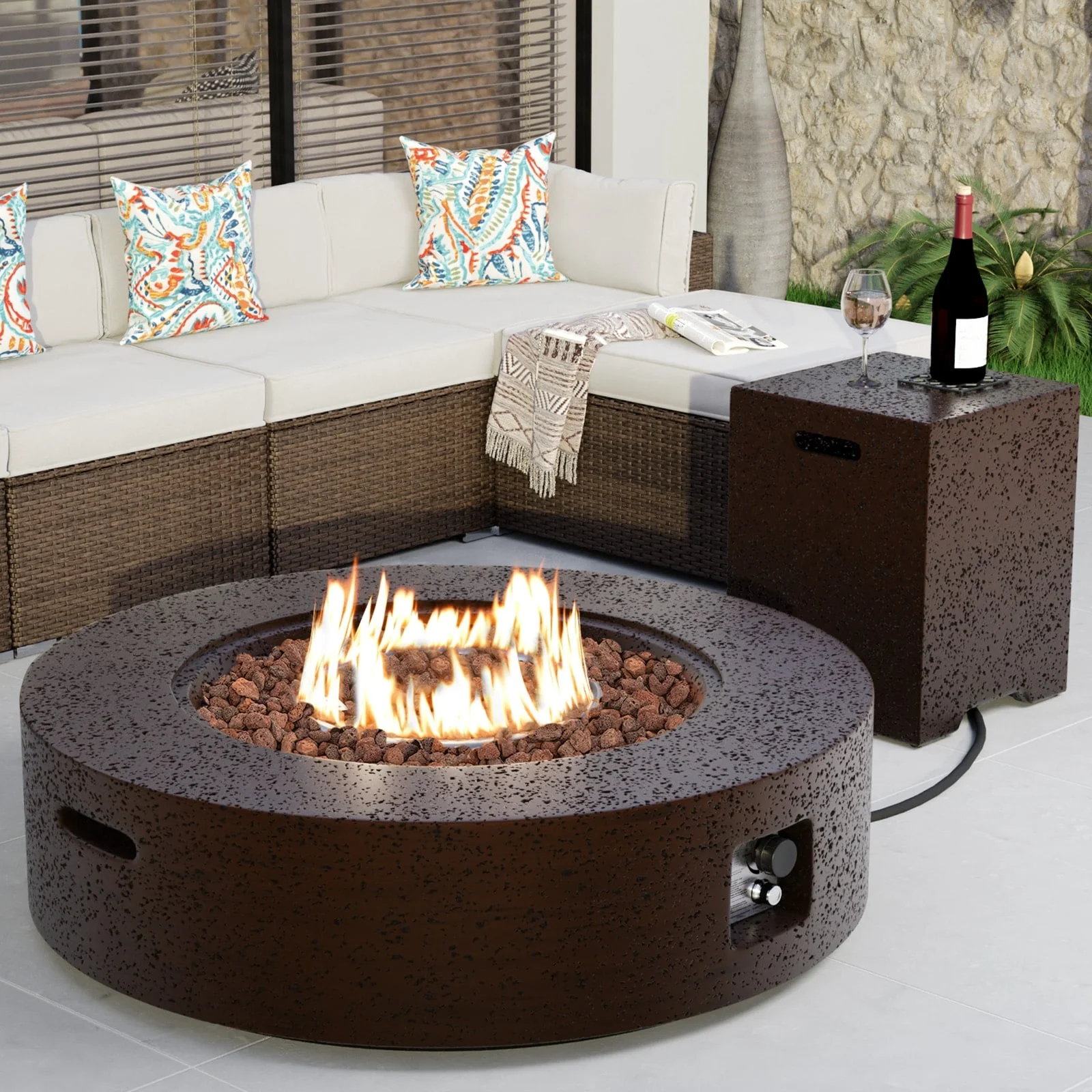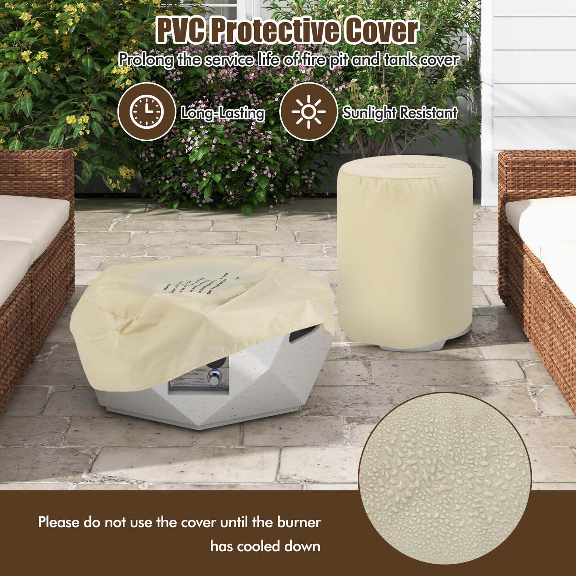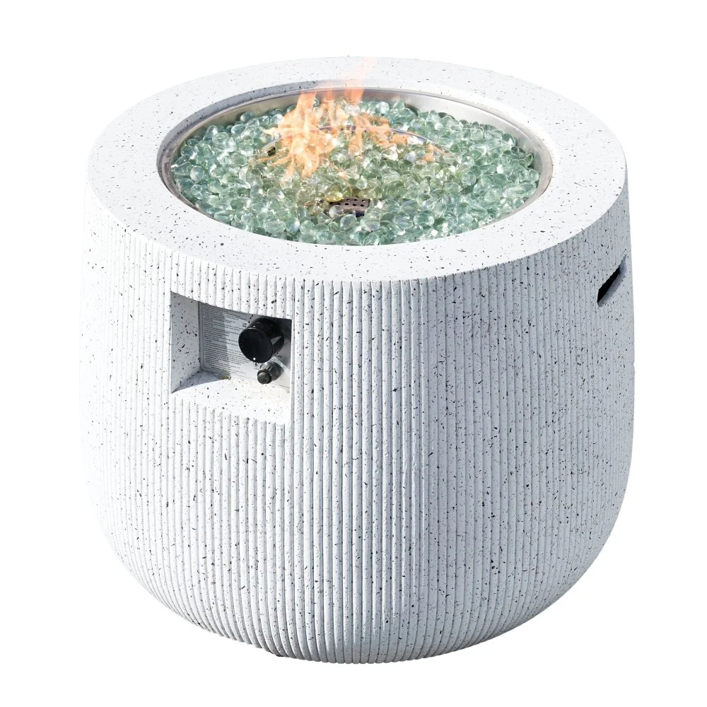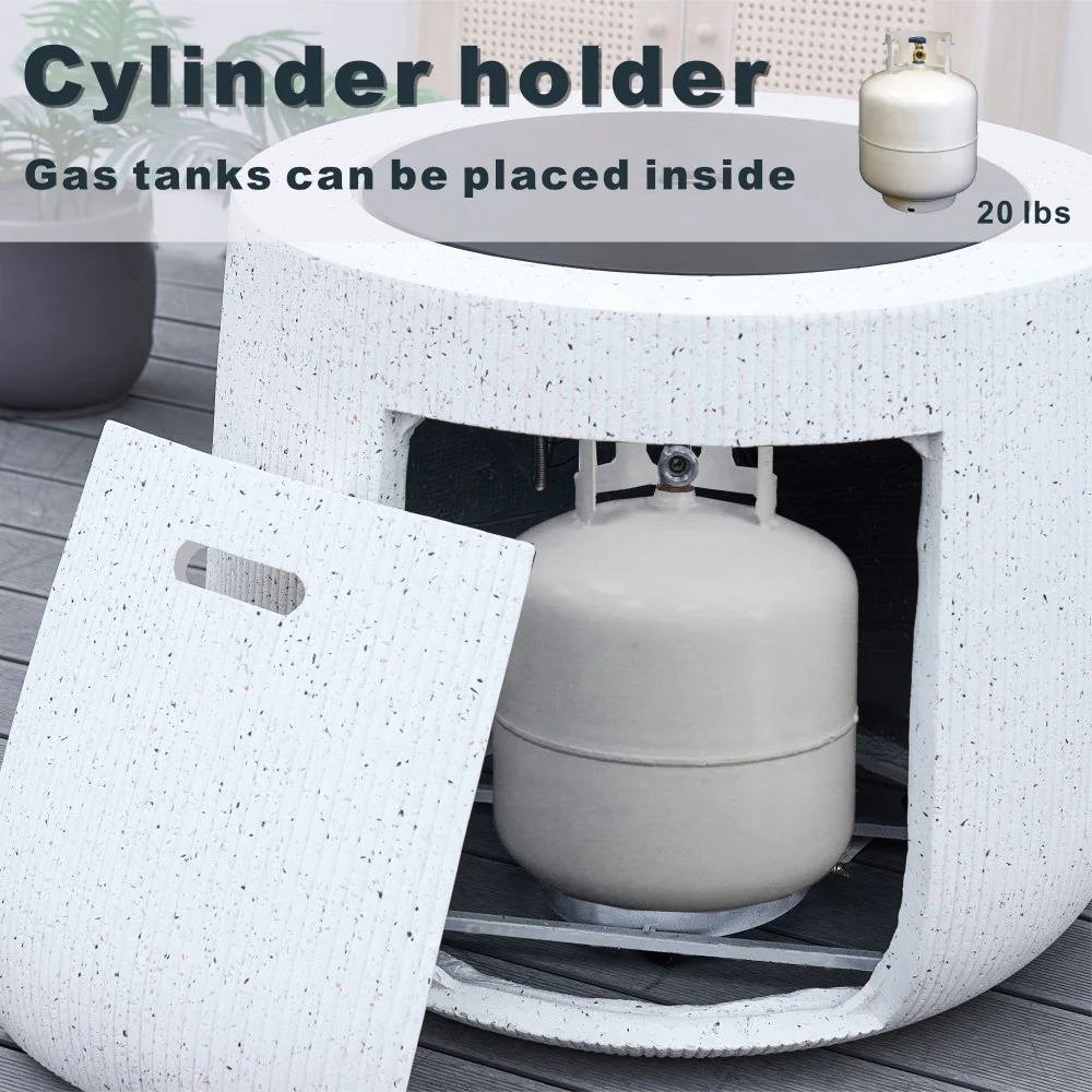 50000BTU Columniform Magnesium Oxide Fire Pit Table with Iron Cover and Rain Cover