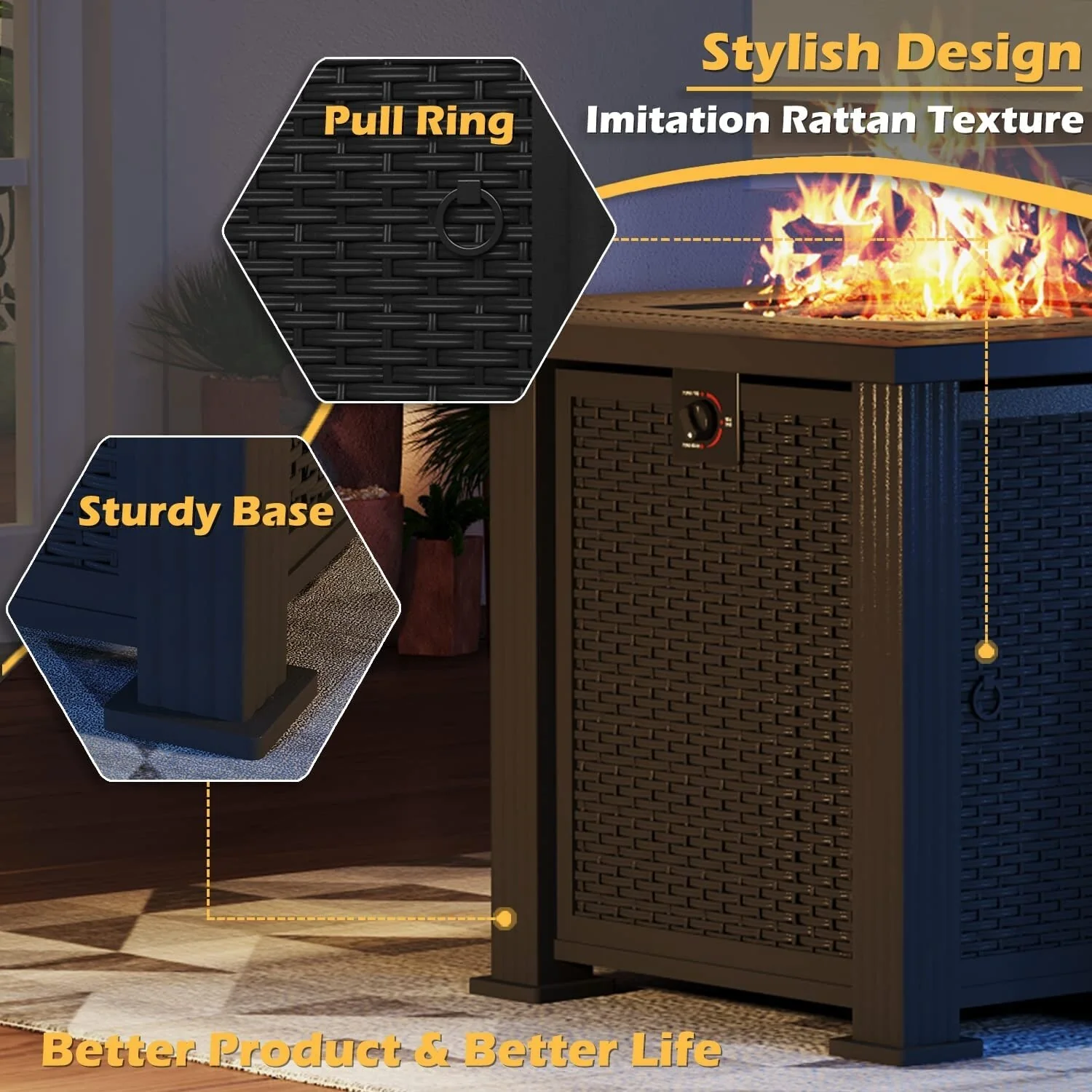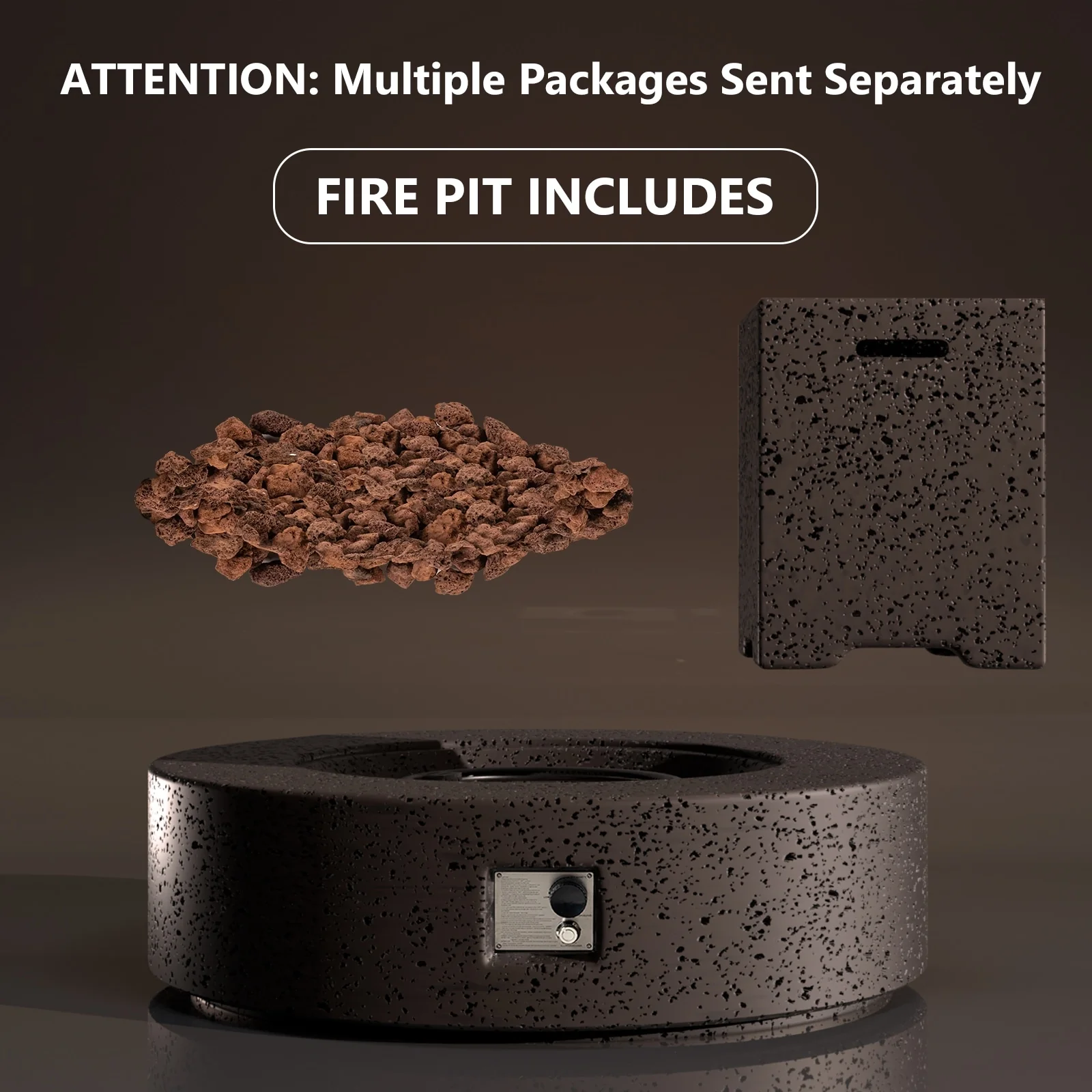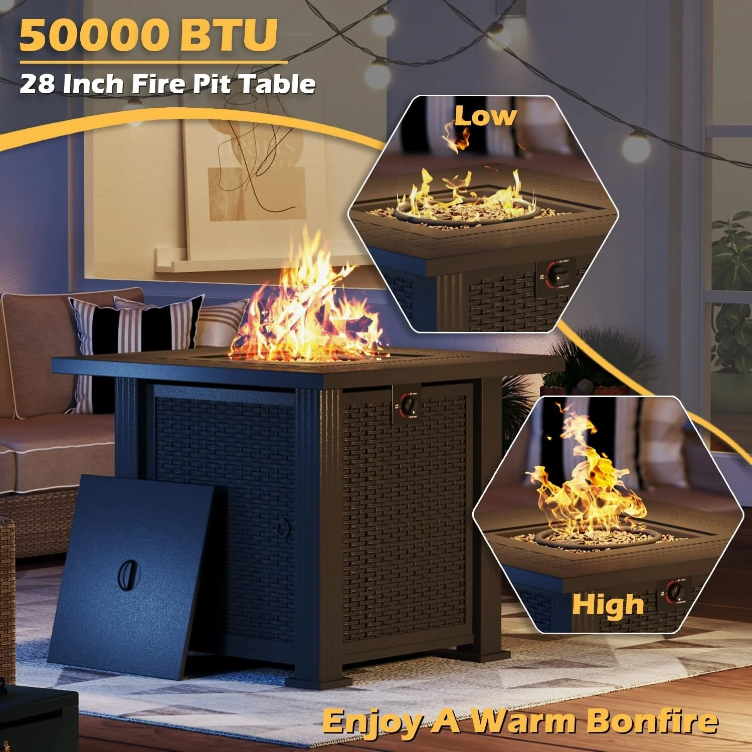 50000BTU Columniform Magnesium Oxide Fire Pit Table with Iron Cover and Rain Cover