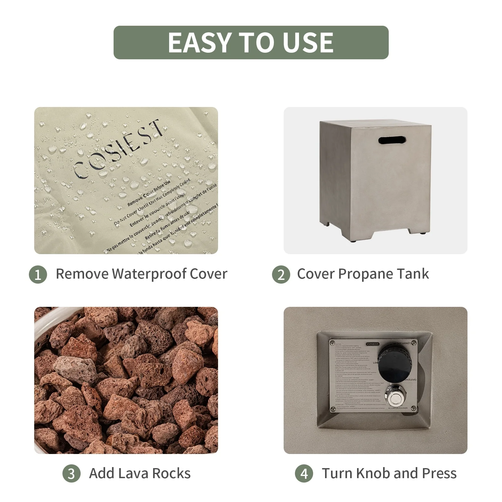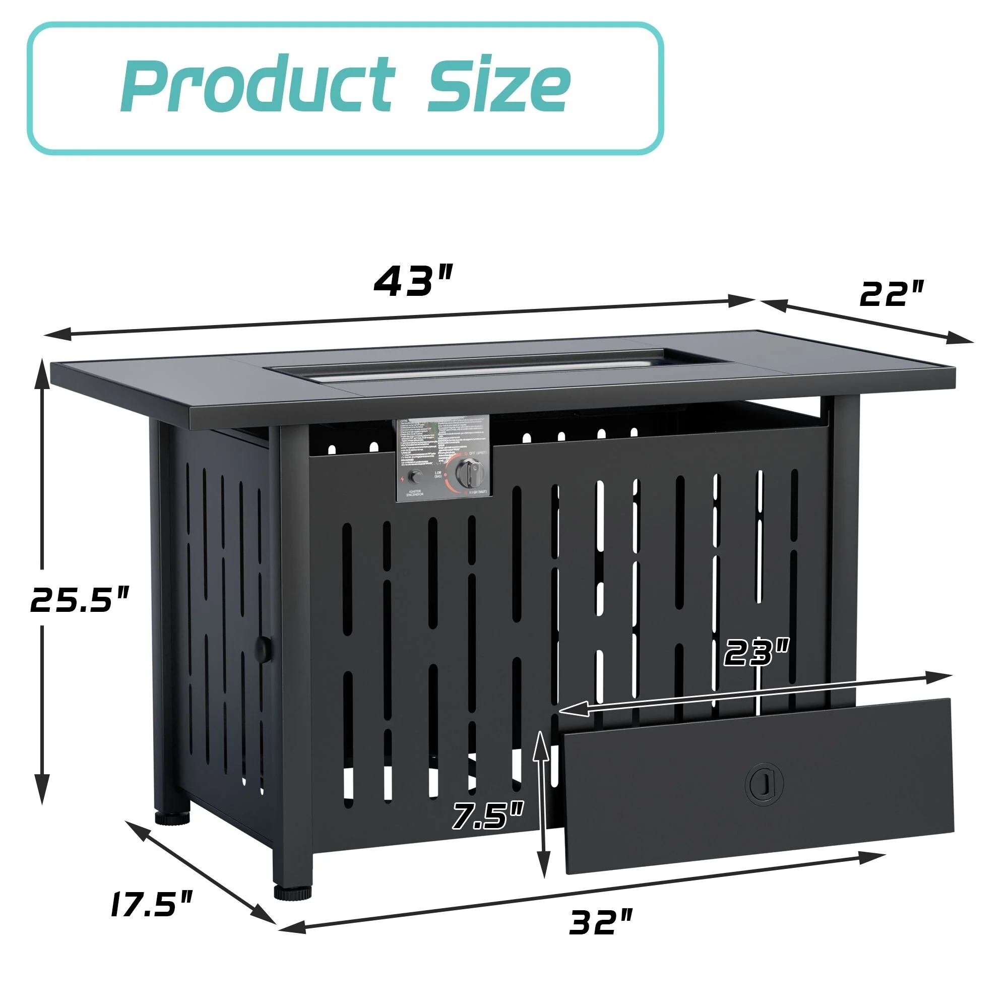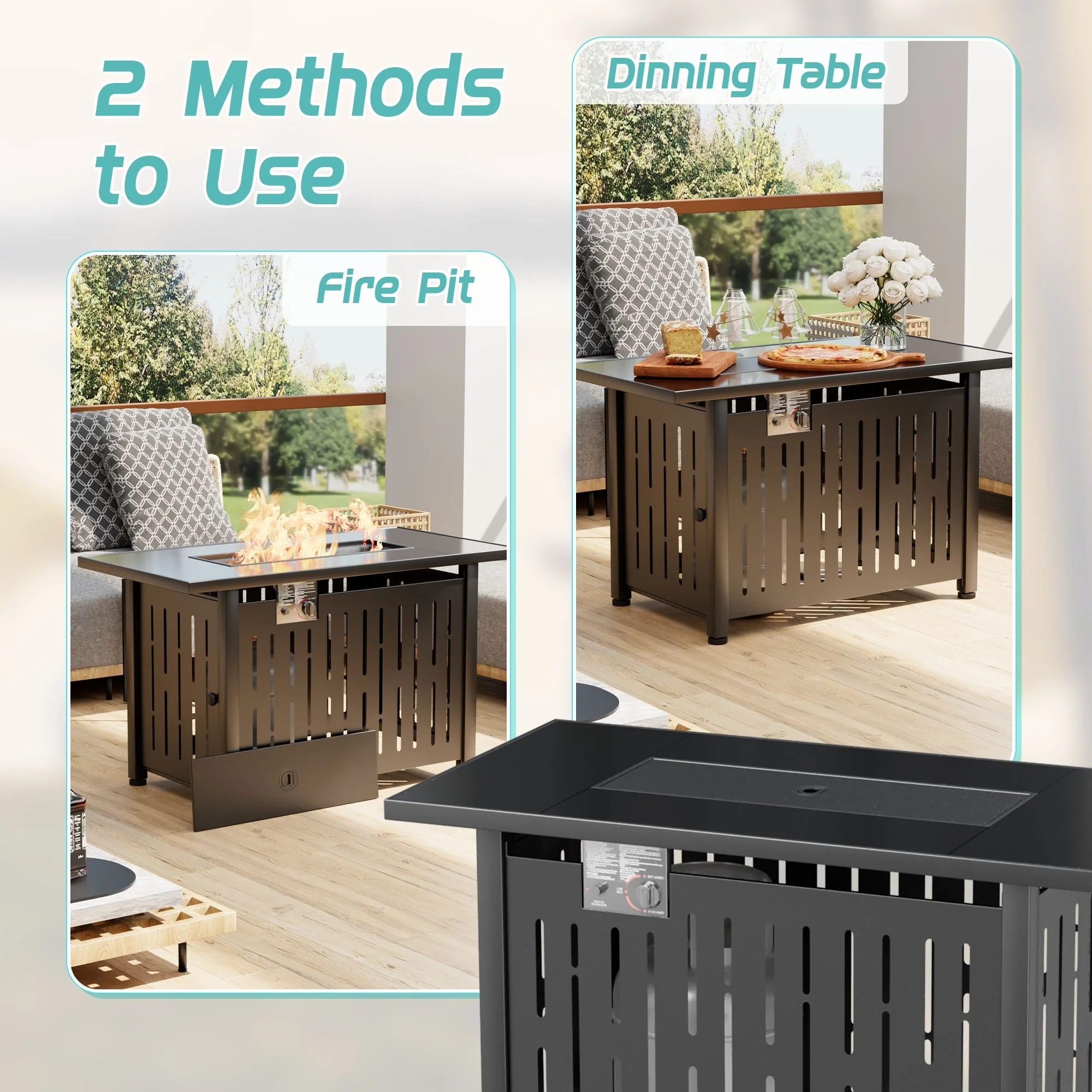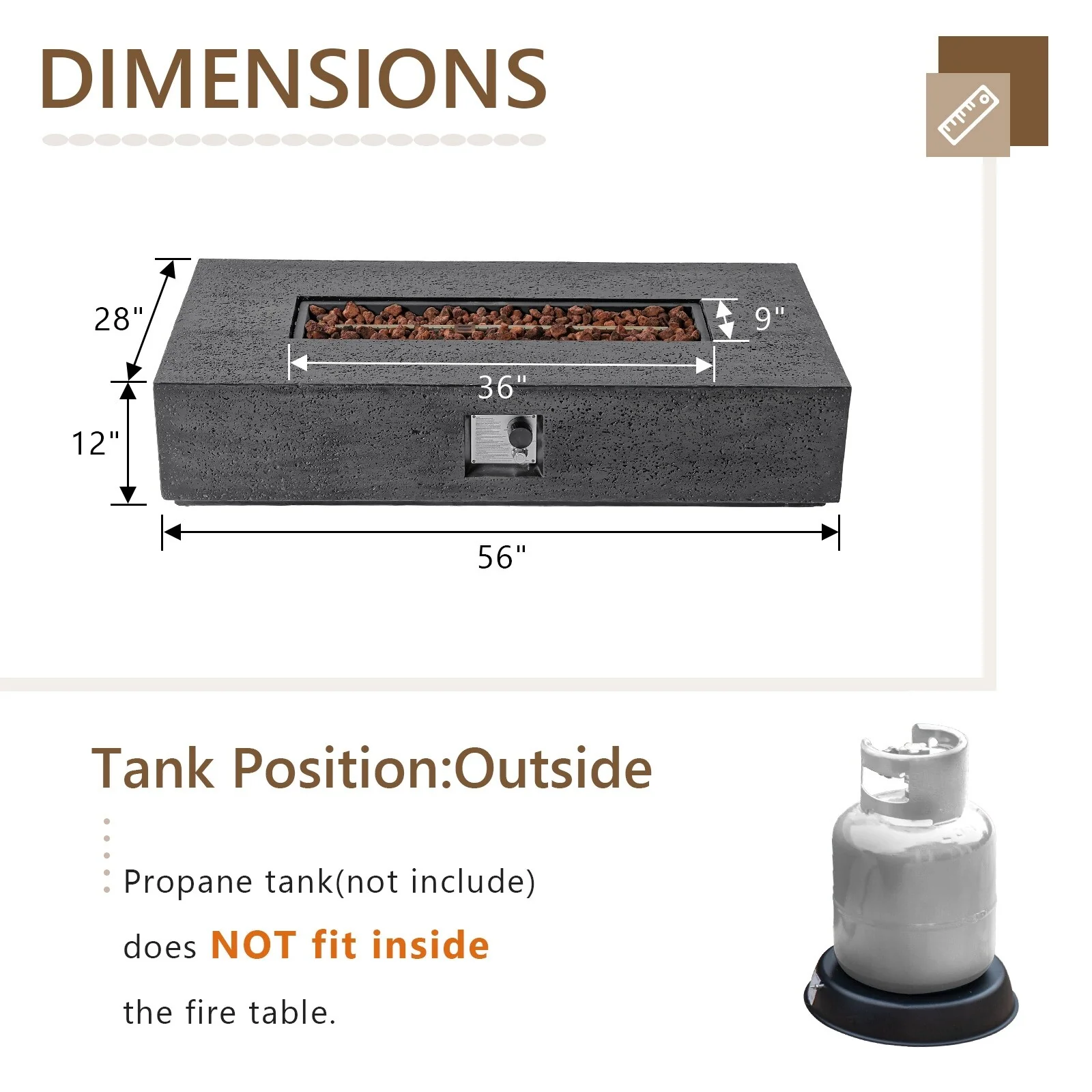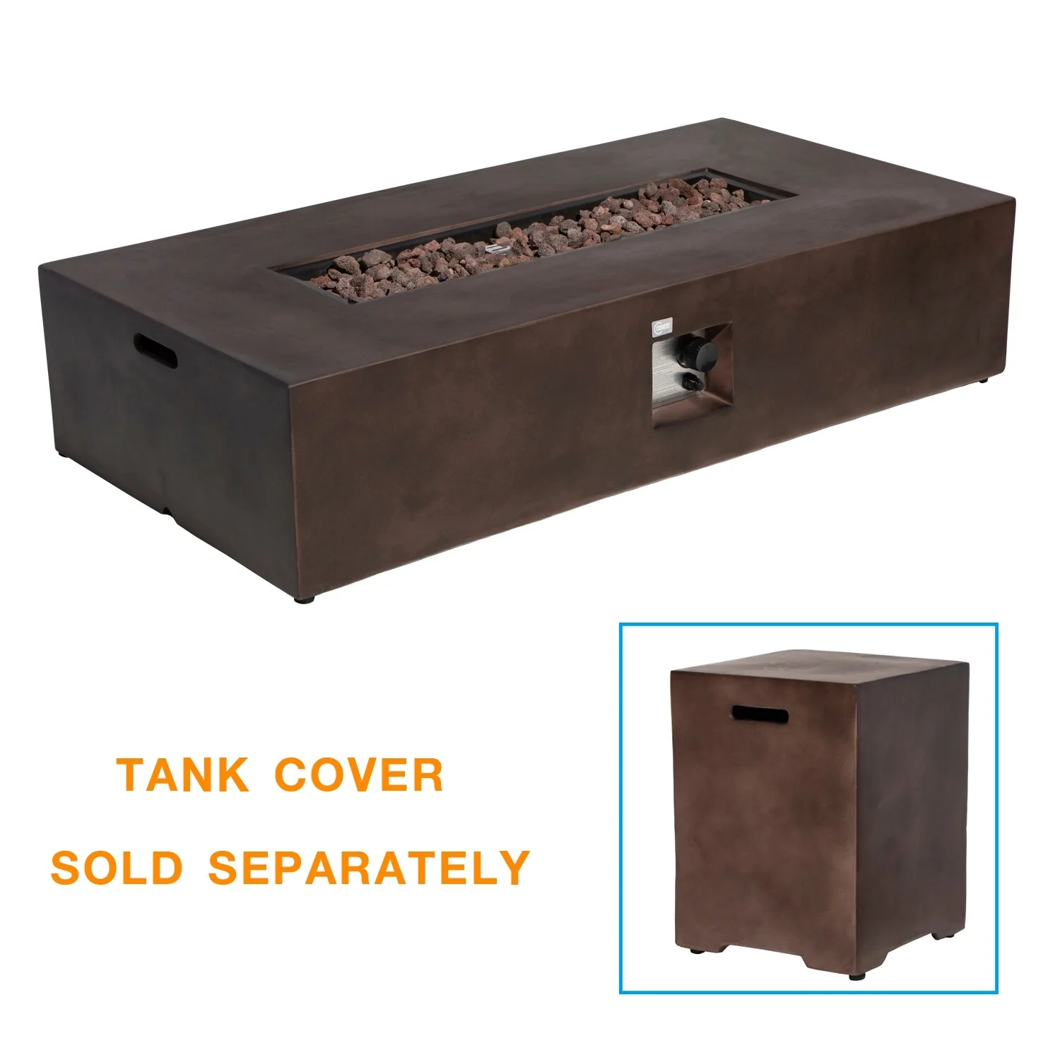 COSIEST Rectangle Bronze Fire Pit Table With Tank Cover Table