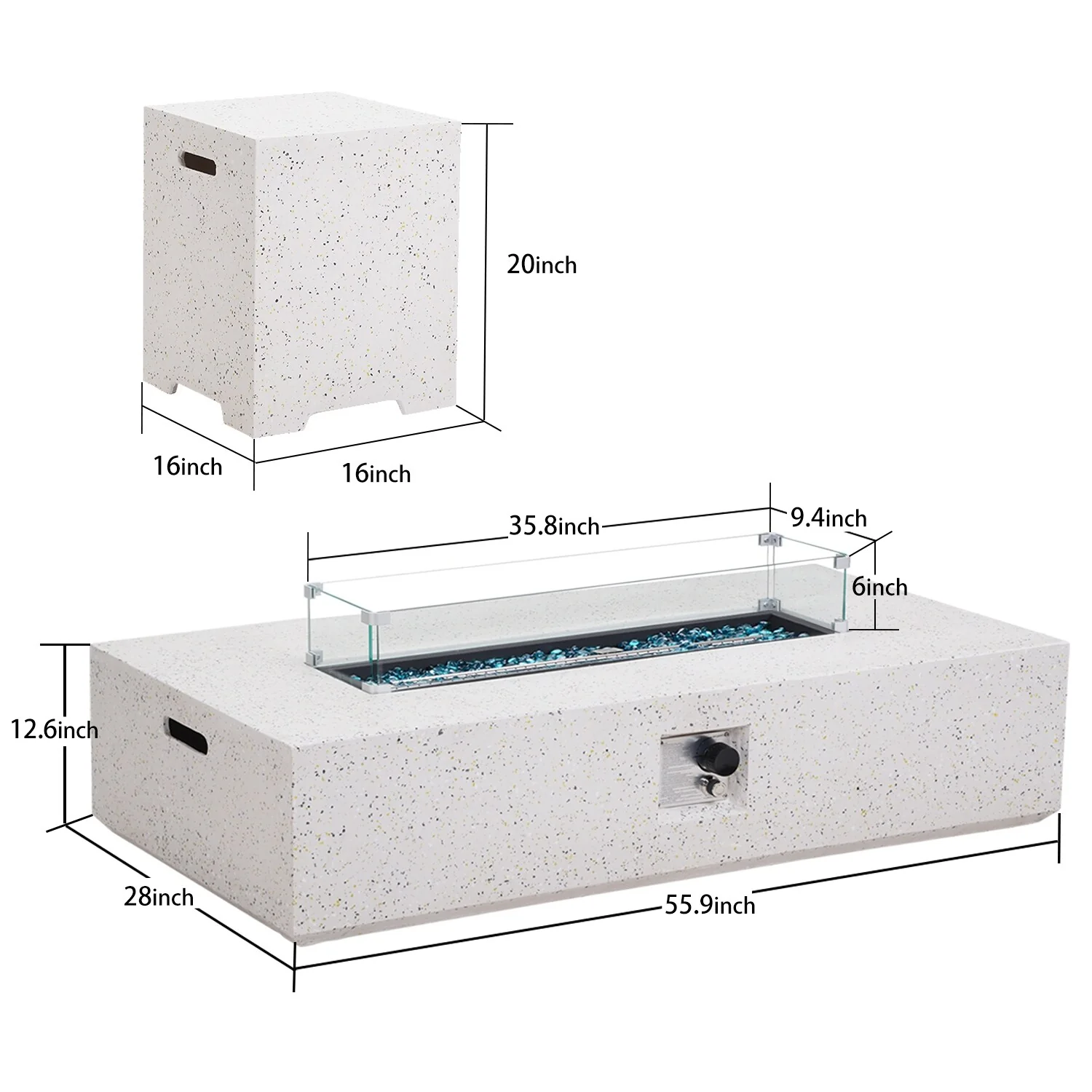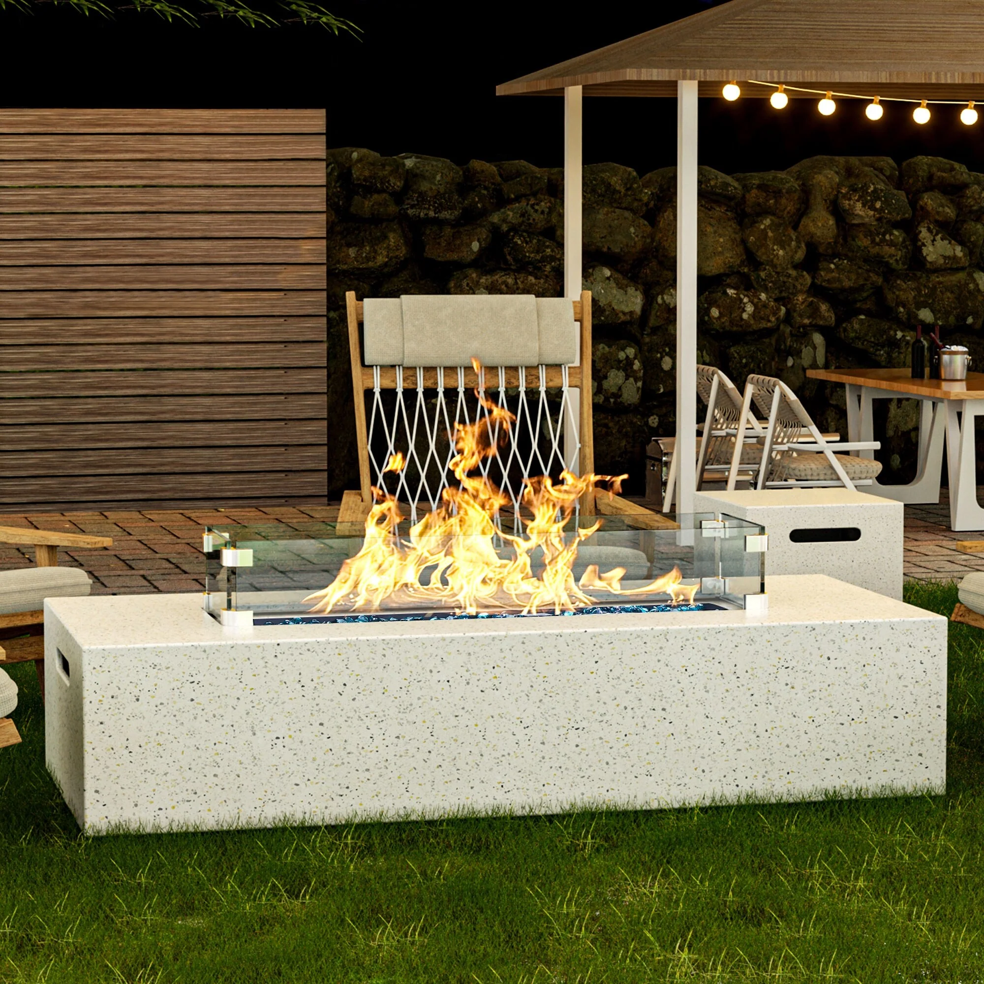 Outdoor Propane Rectangle Fire Pit With Tank Table, Wind Glass