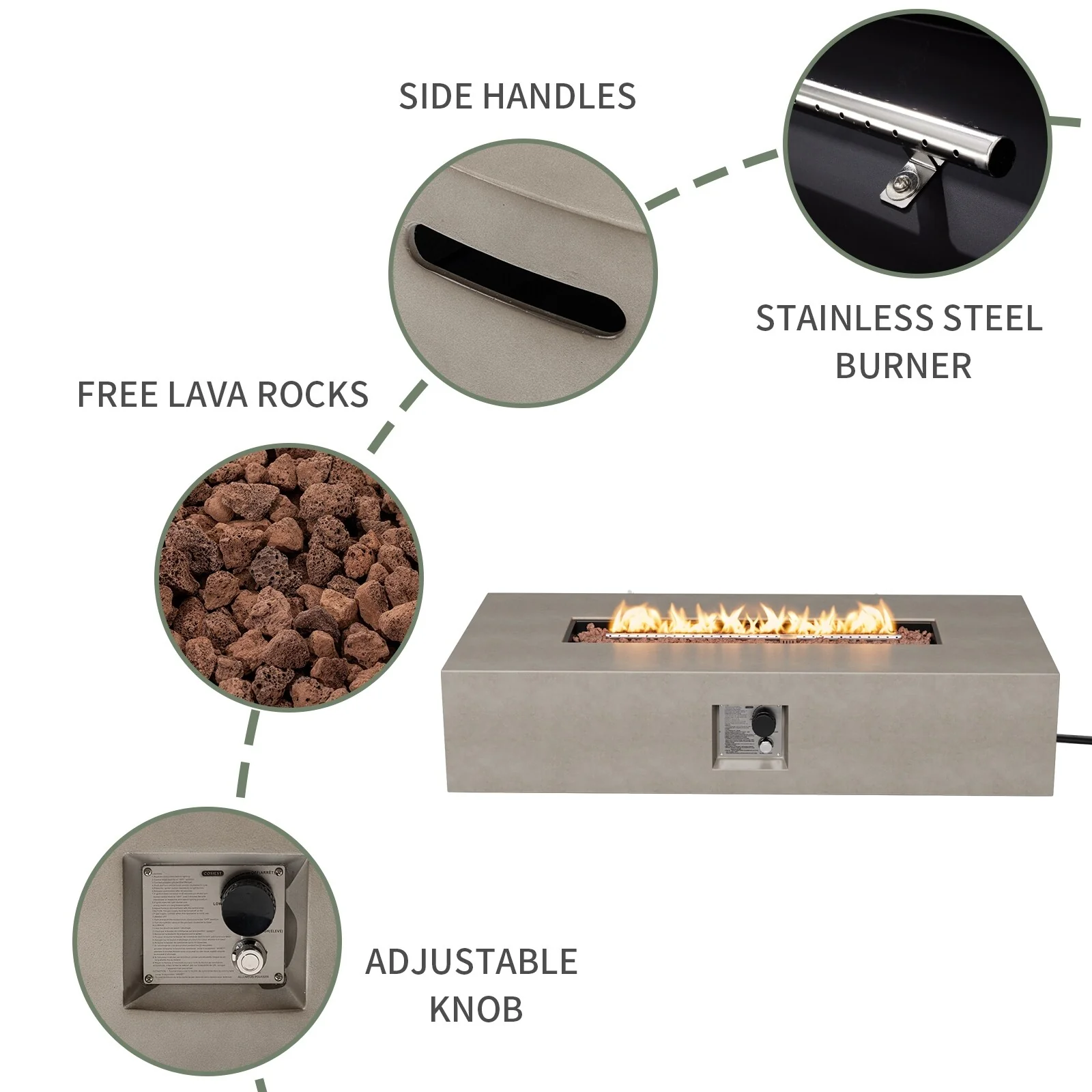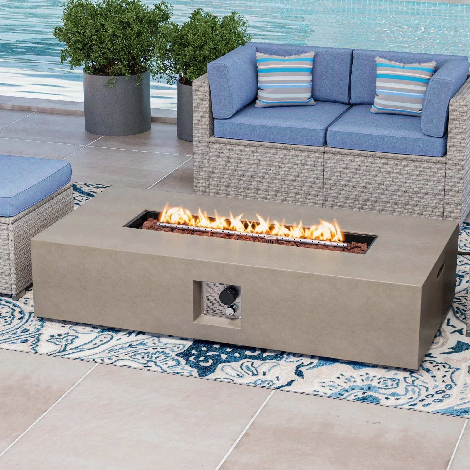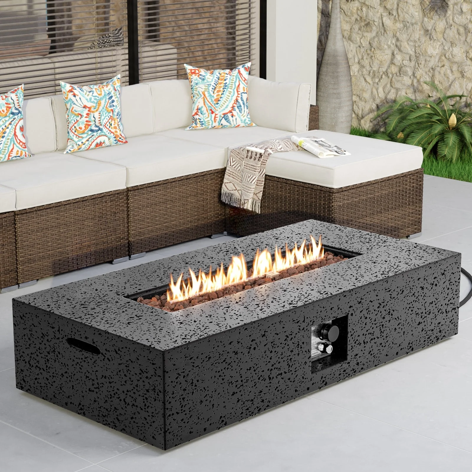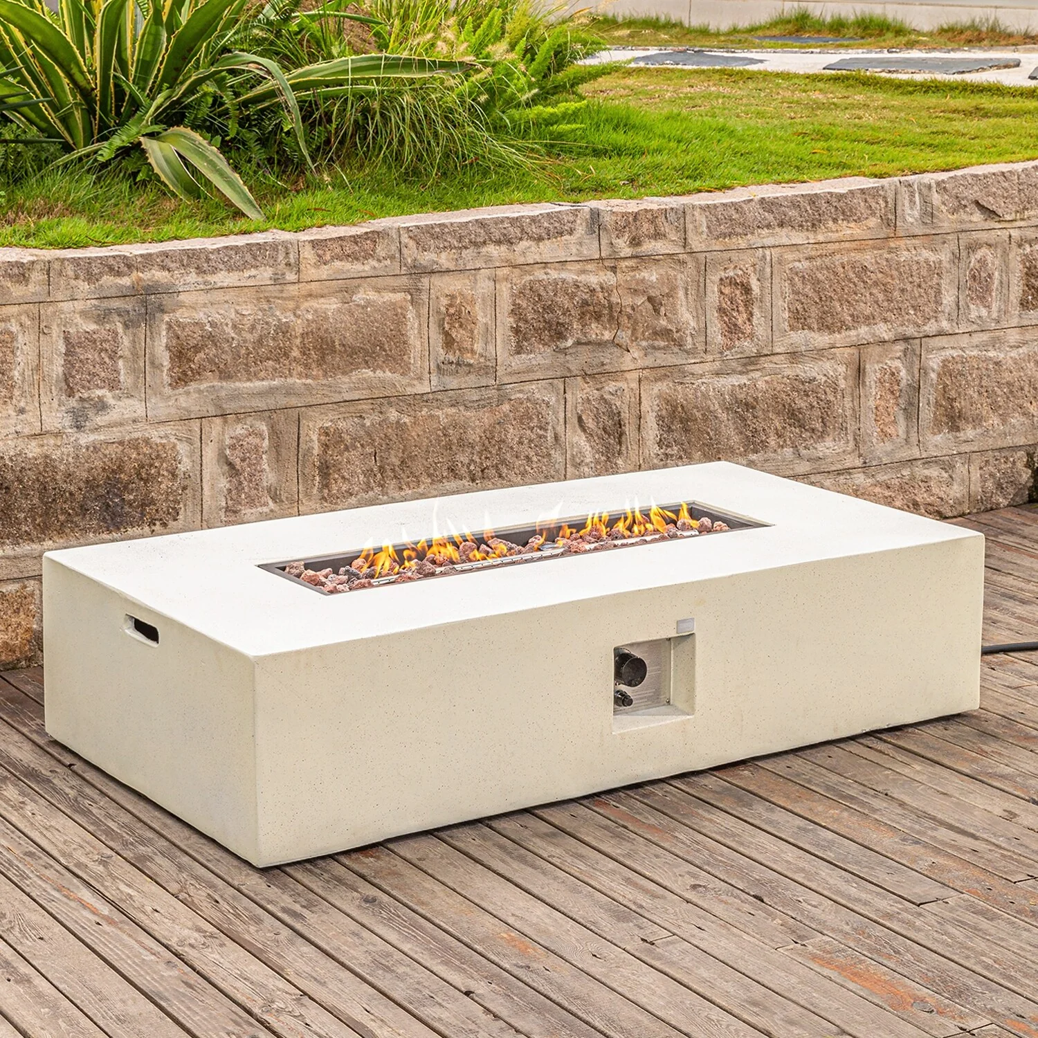 COSIEST Outdoor Rectangle Concrete Fire Pit Table (50,000 BTU)