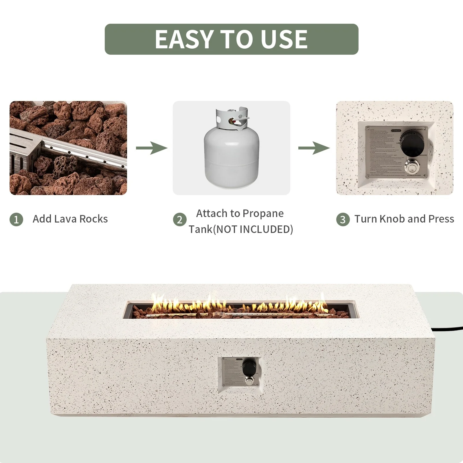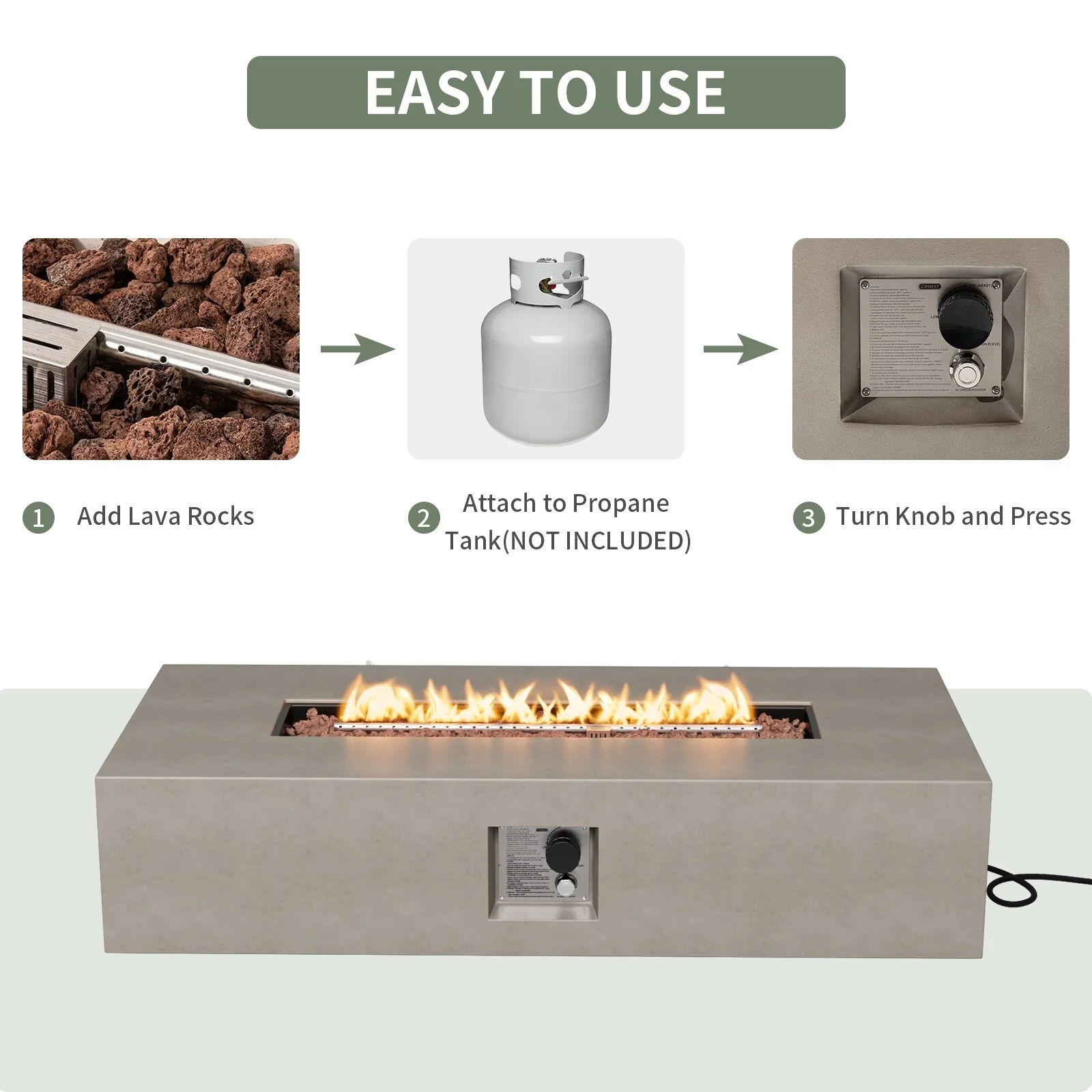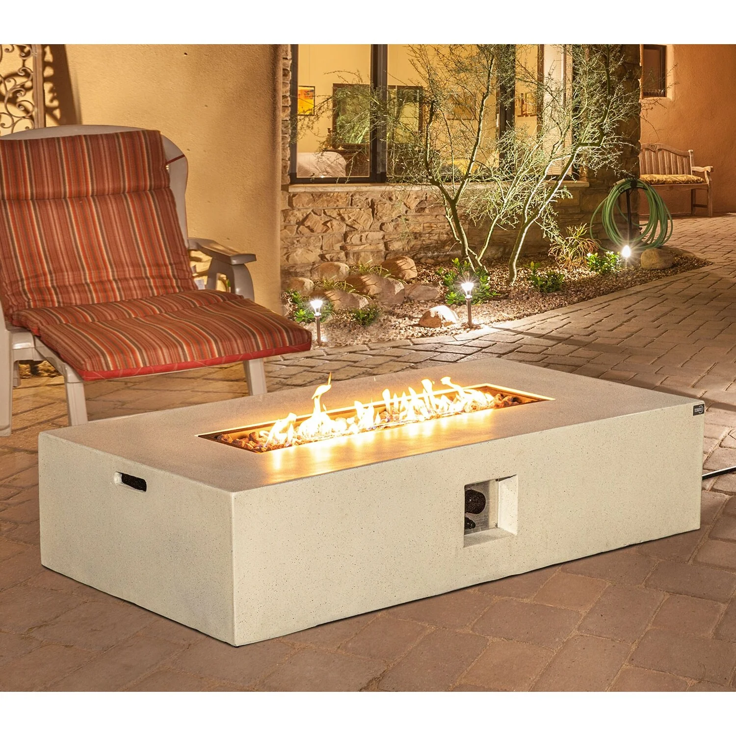 COSIEST Outdoor Rectangle Concrete Fire Pit Table (50,000 BTU)