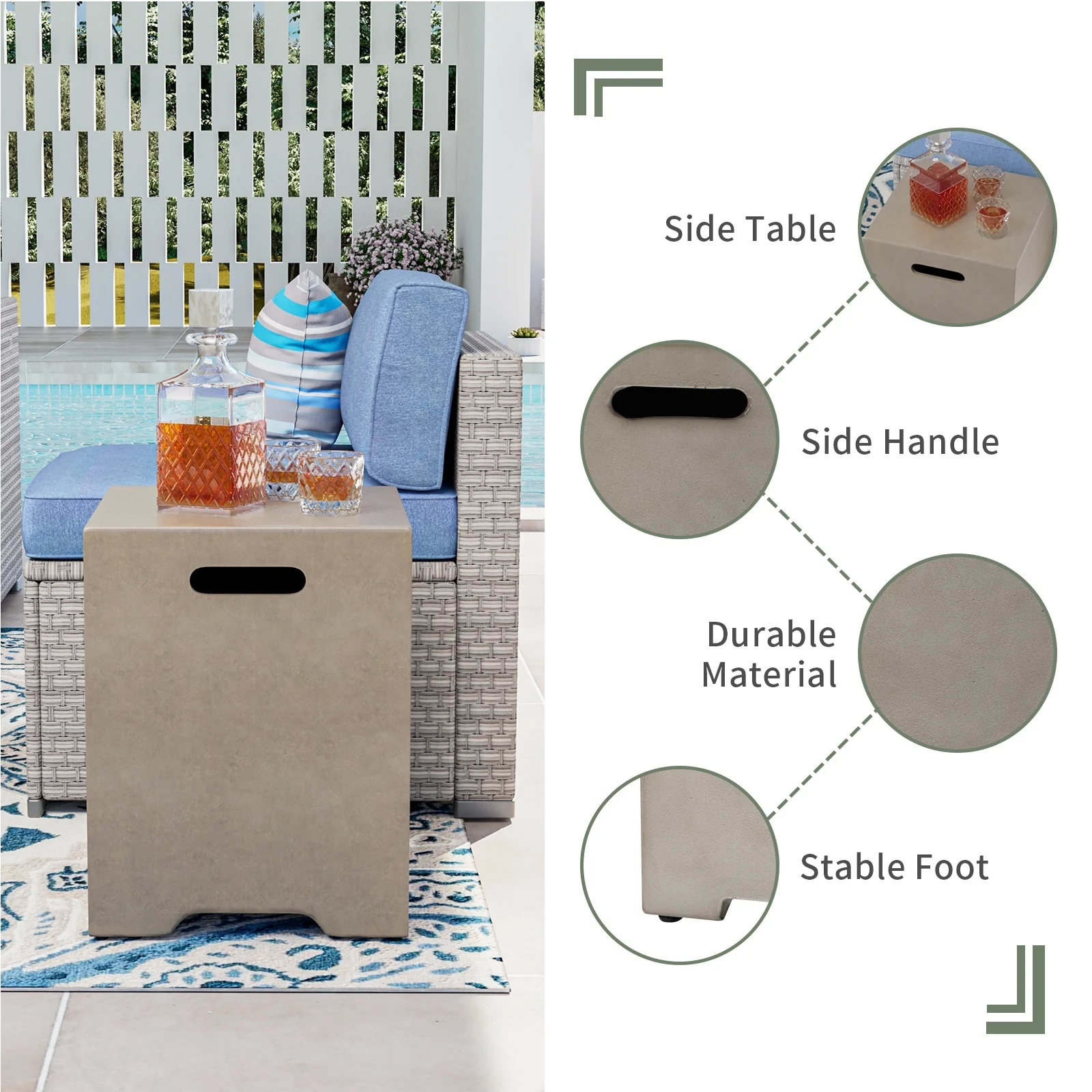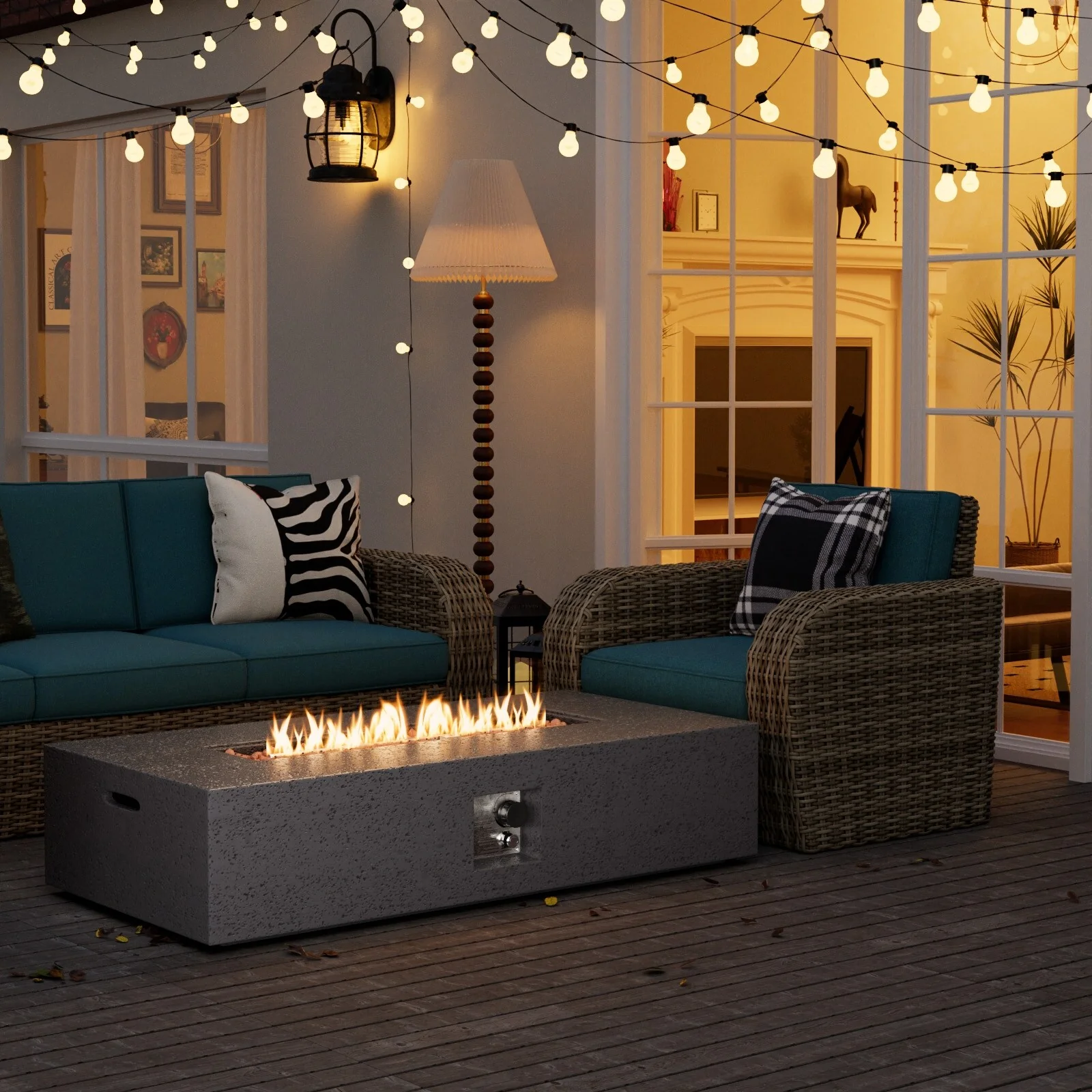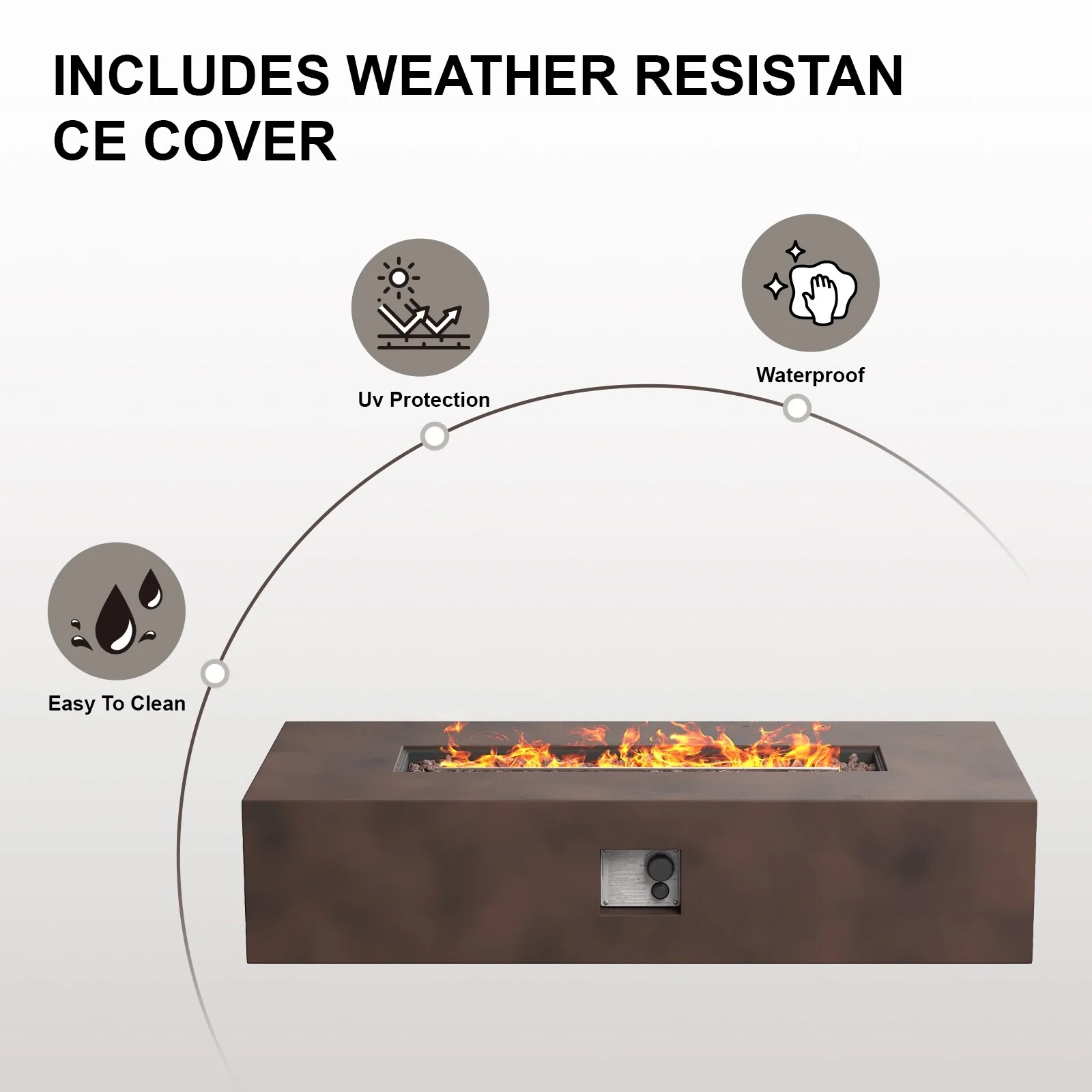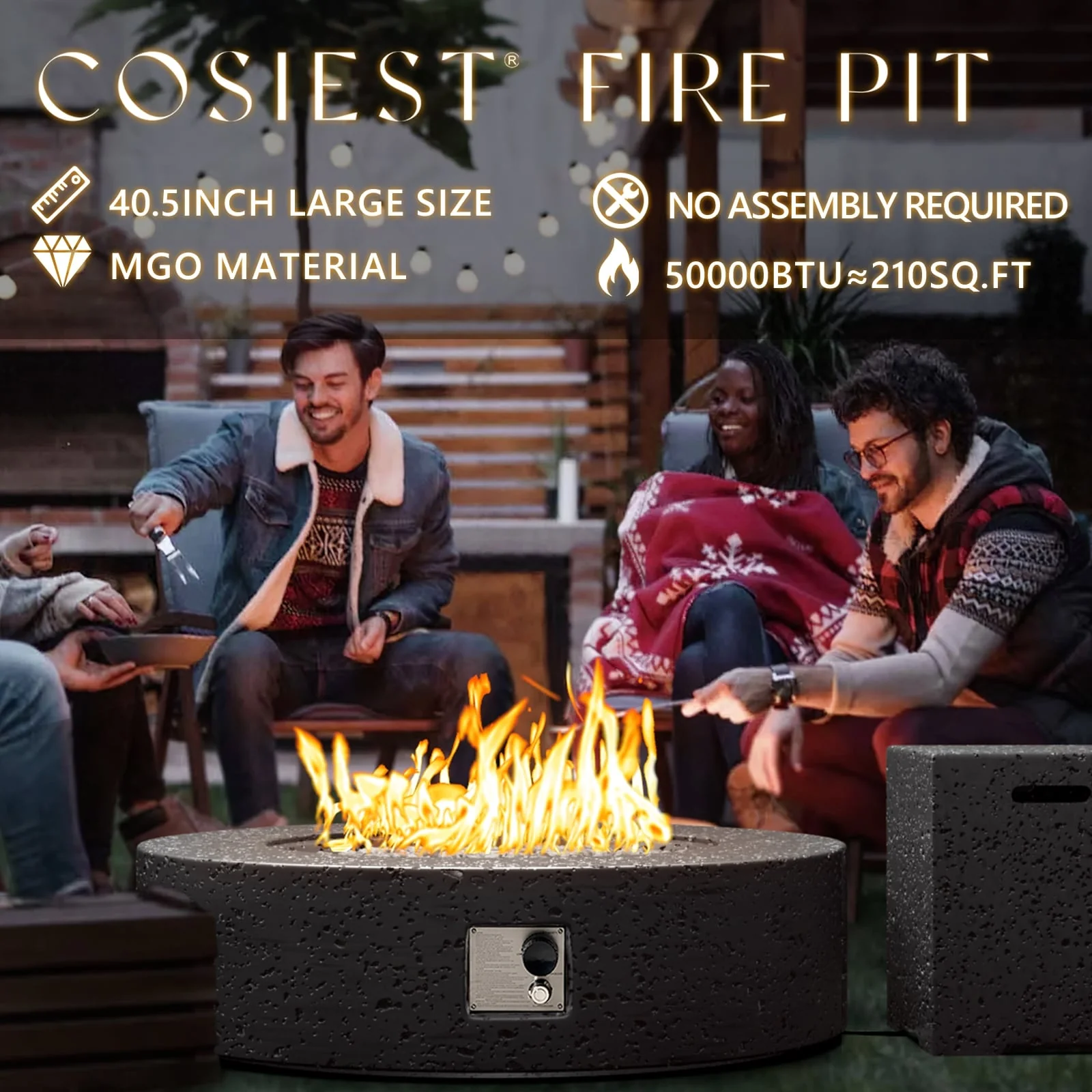 COSIEST Outdoor Rectangle Concrete Fire Pit Table (50,000 BTU)