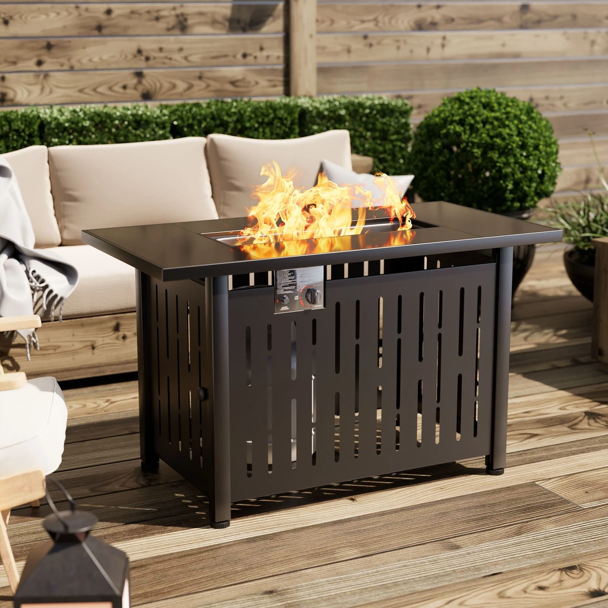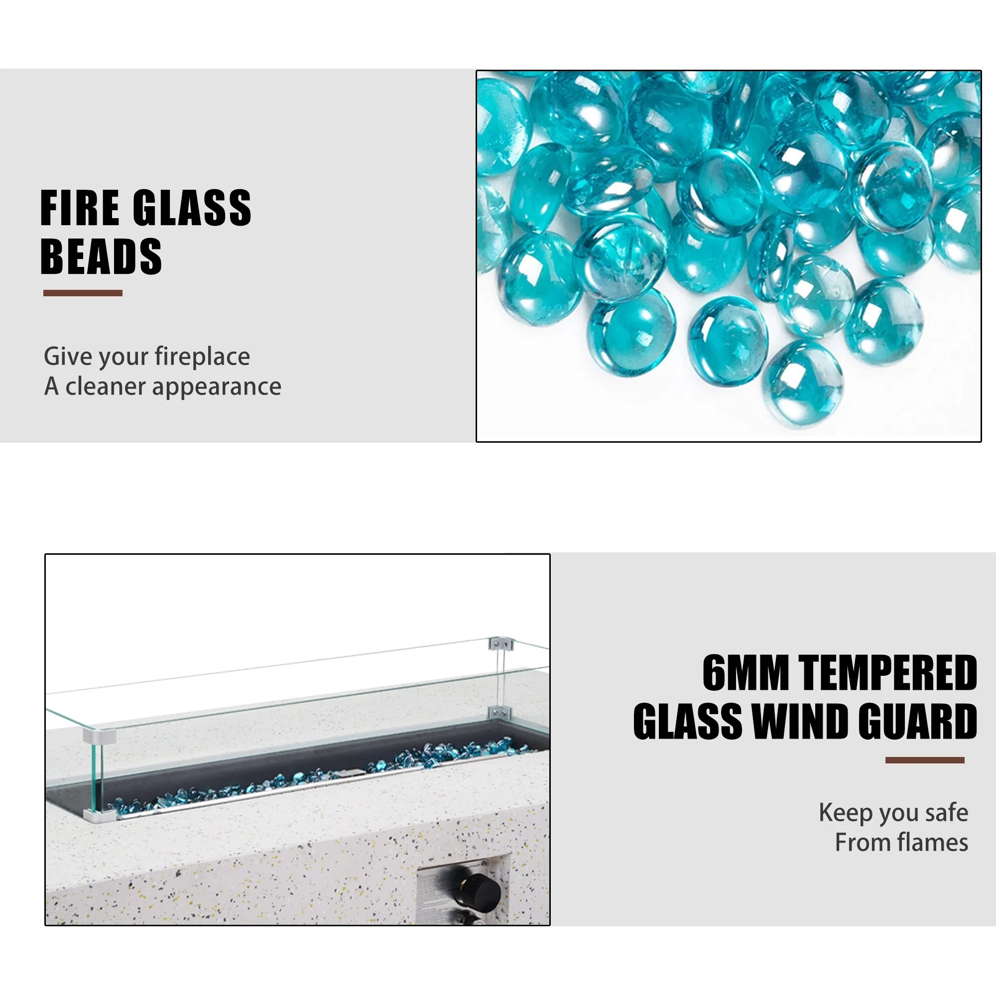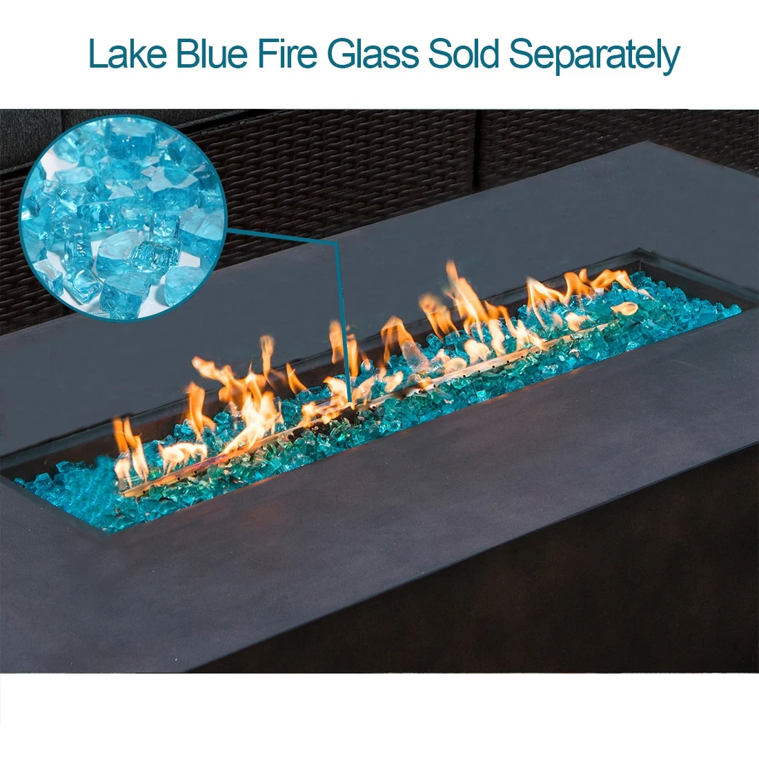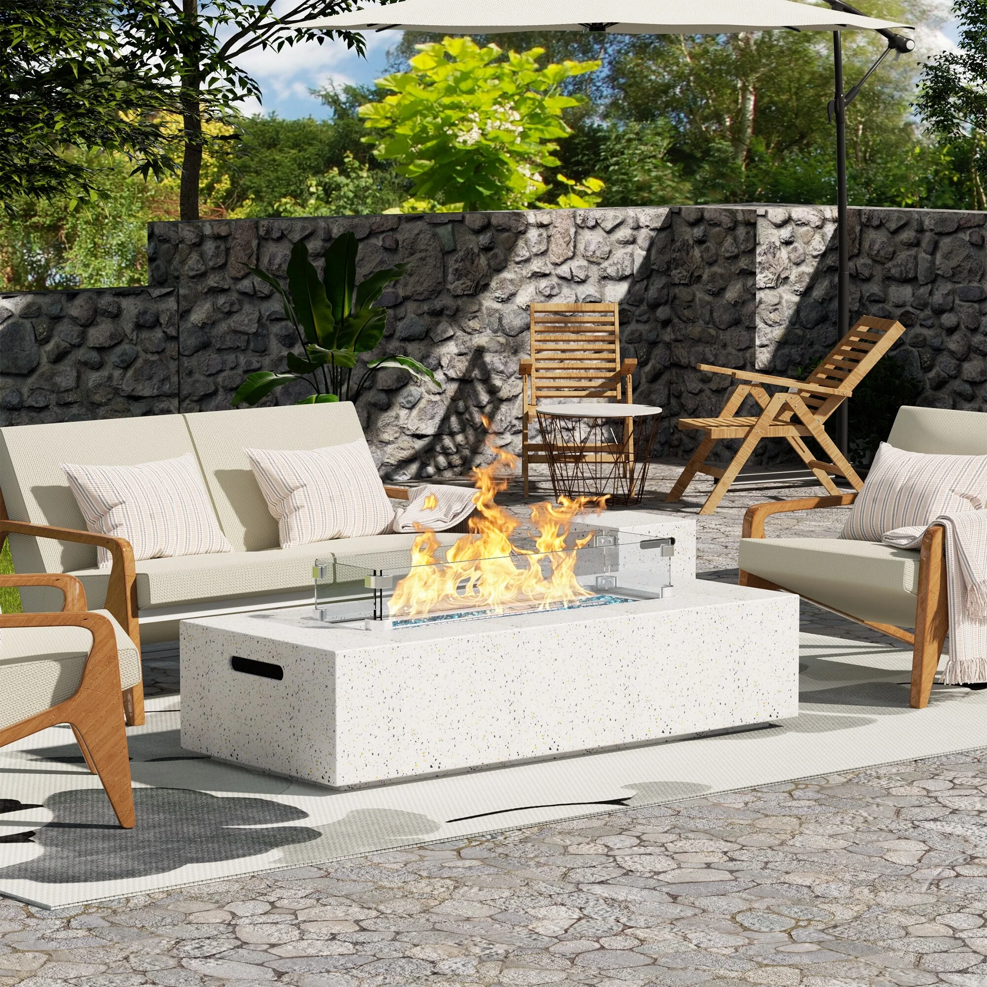 COSIEST Outdoor Rectangle Fire Pit Table w Fire Glass, Wind Guard