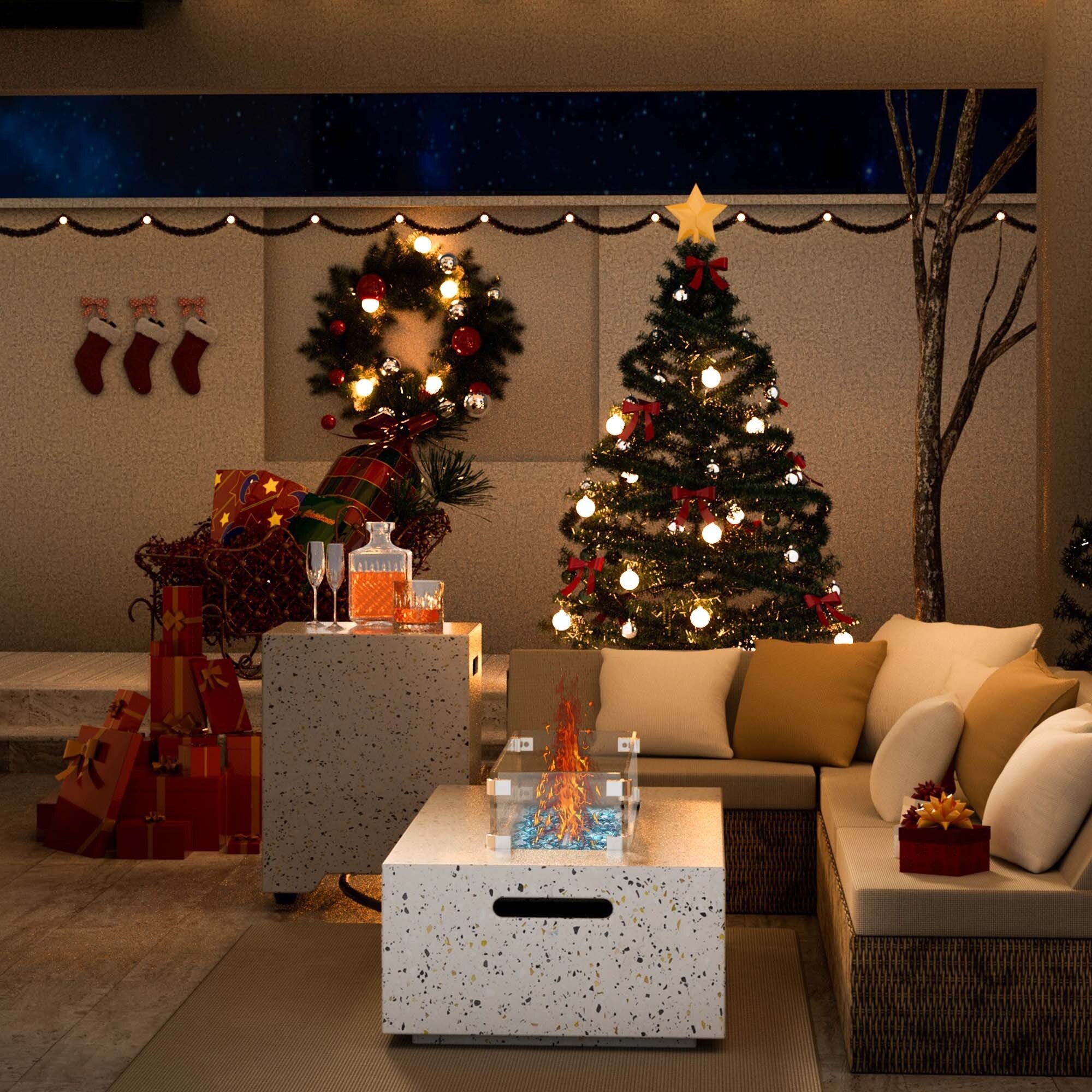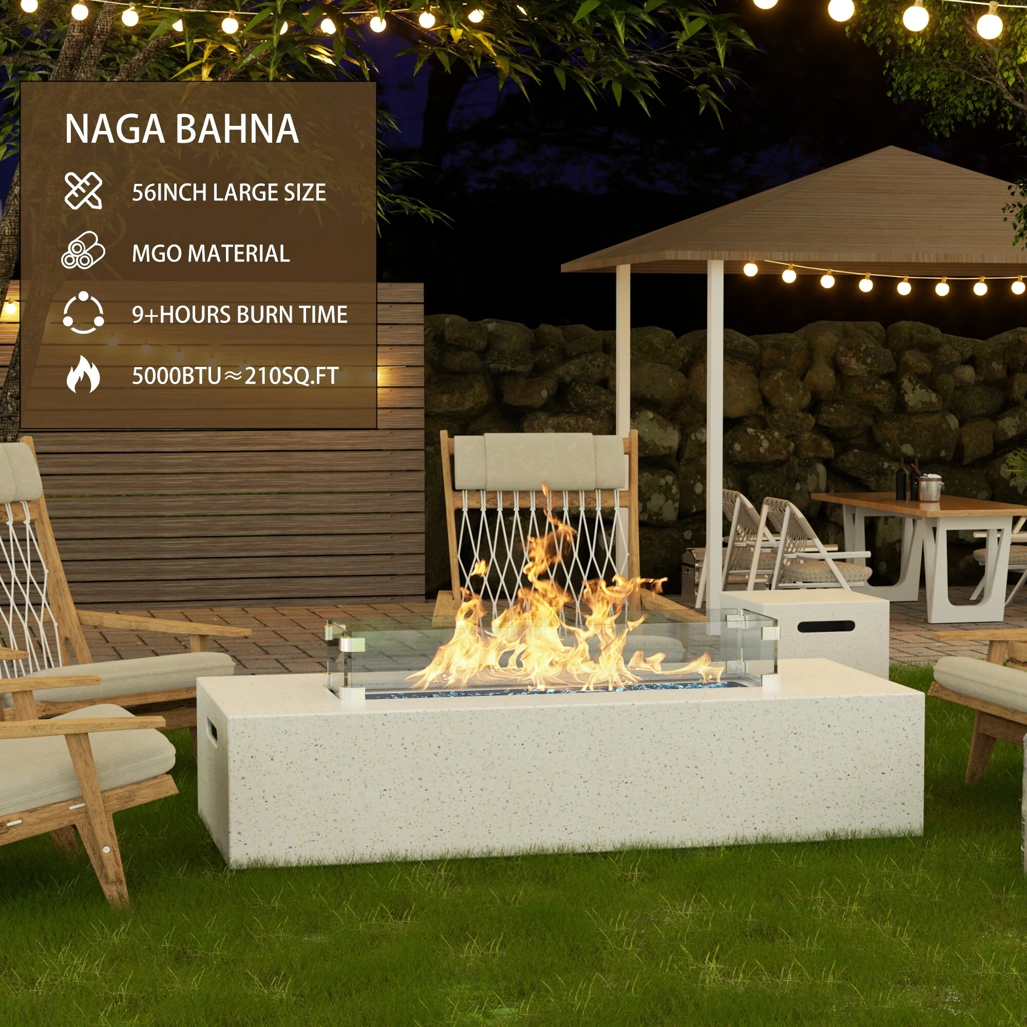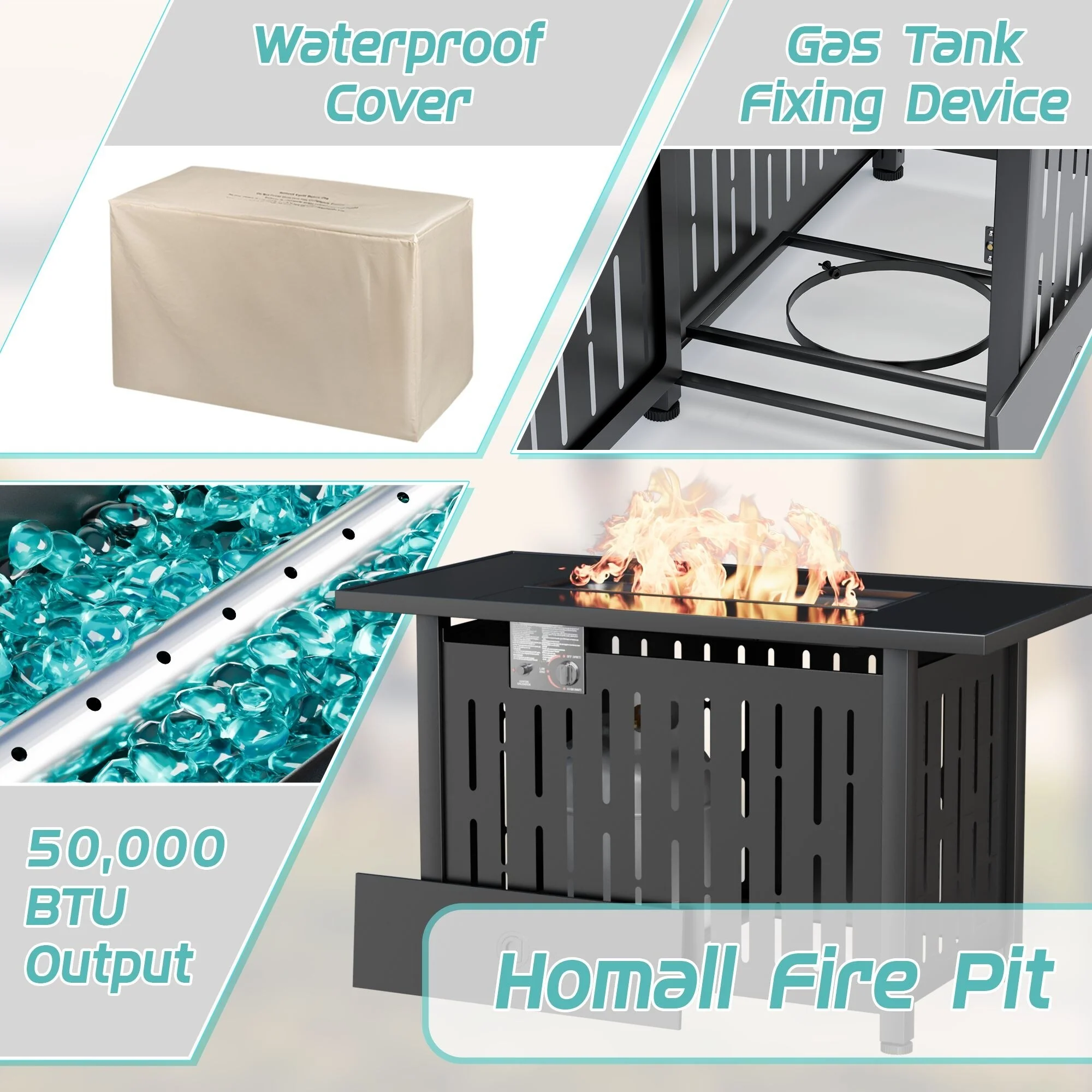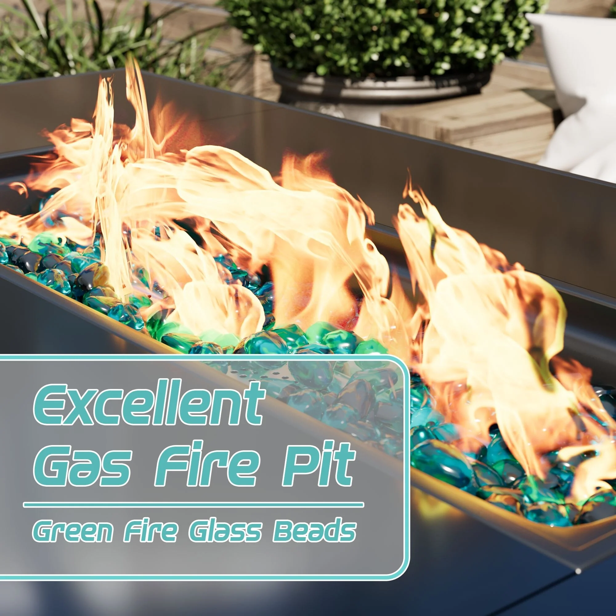 COSIEST Outdoor Rectangle Fire Pit Table w Fire Glass, Wind Guard
