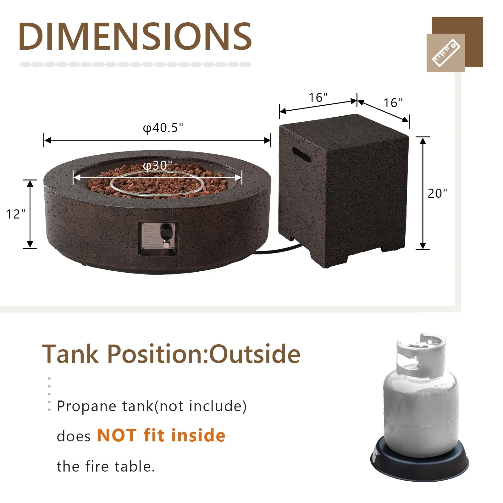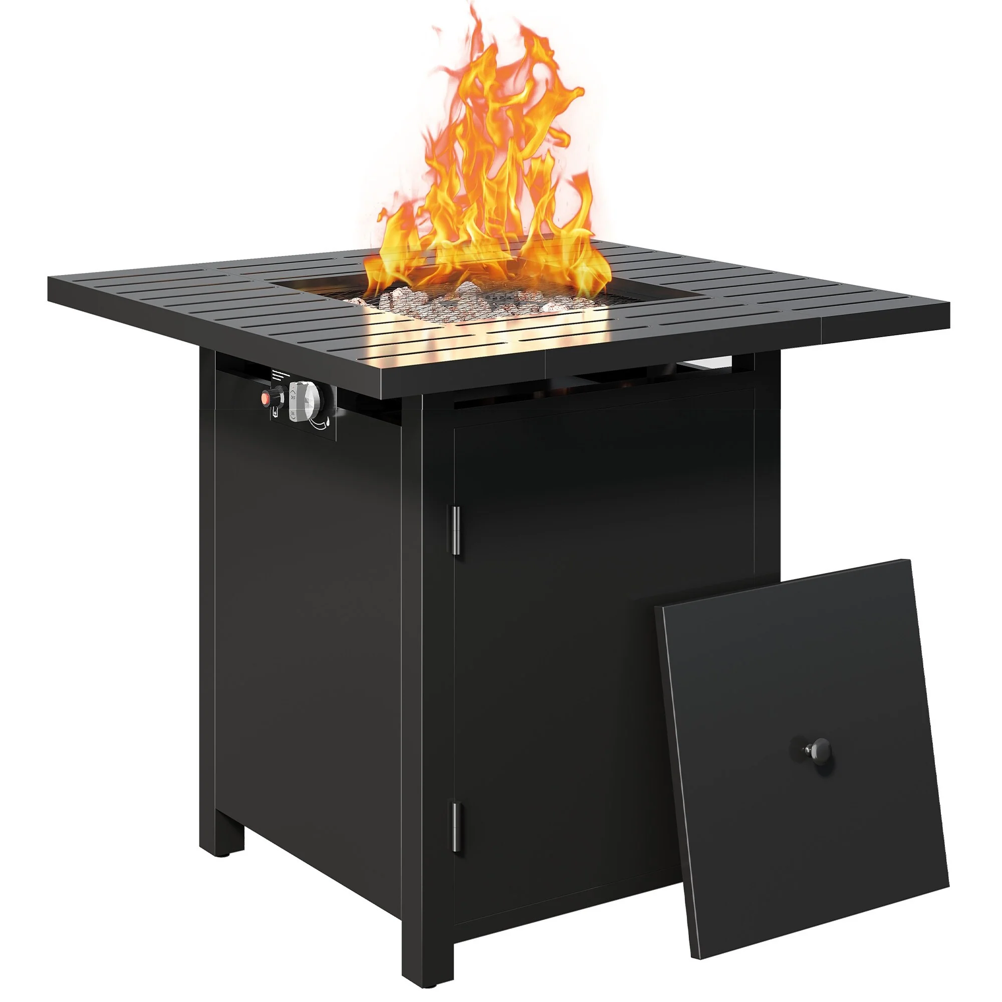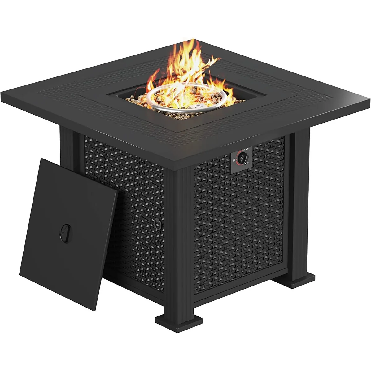Patio Watcher 35" Square Iron Propane Fire Pit Table with Tank Holder?for Outside Garden