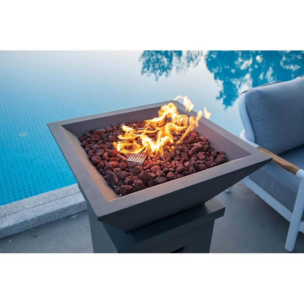 30 in. W x 30 in. D x 24 in. H Square Propane Burning Outdoor Fire Pit in Gray