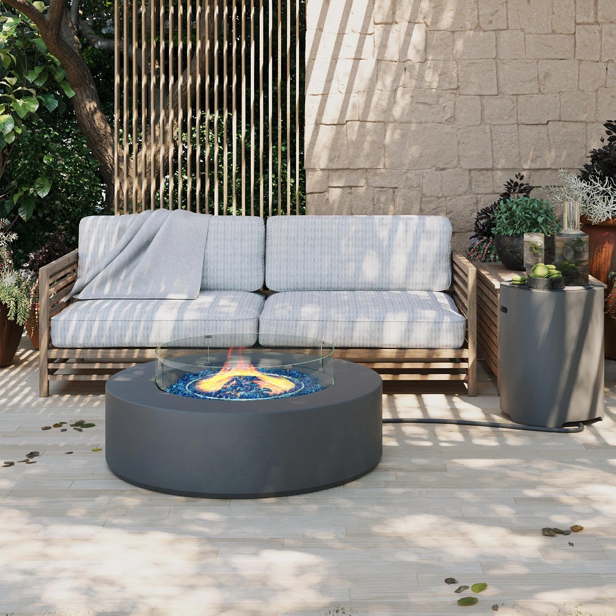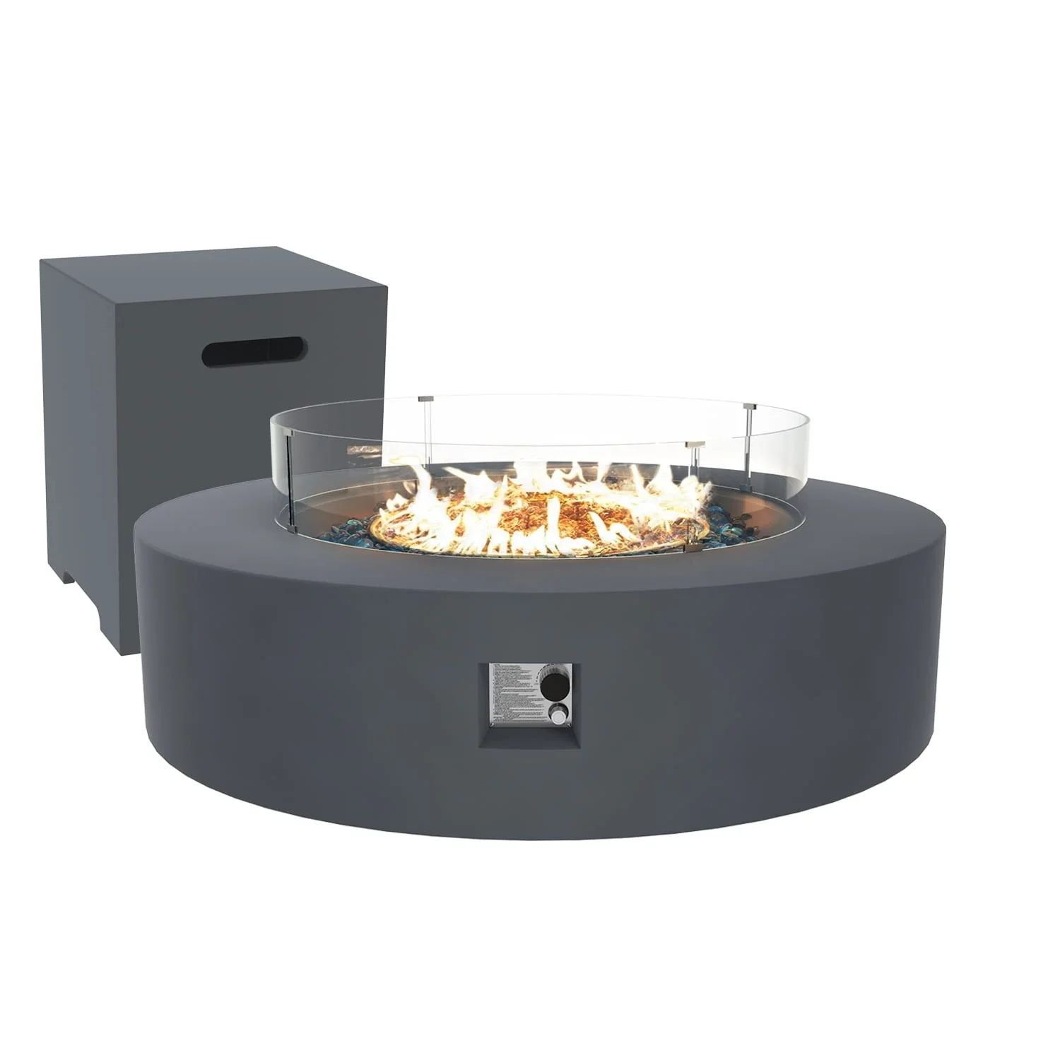 Propane Outdoor Fire Pit With Tank Table, Wind Glass