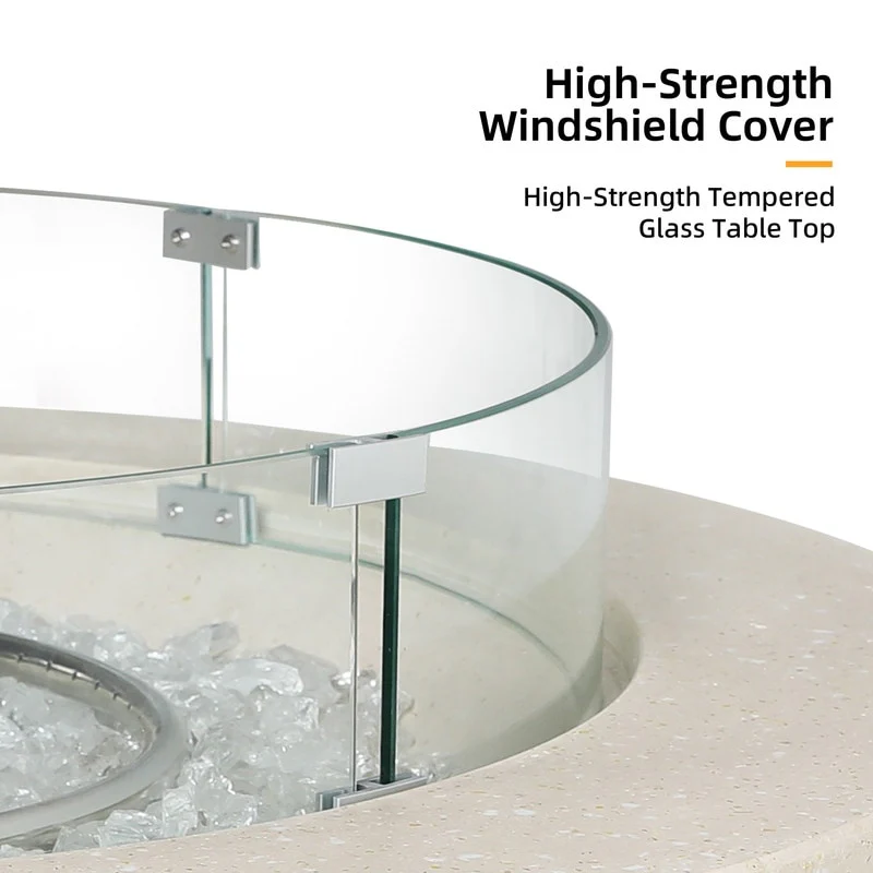 COSIEST Ecru Round Outdoor Propane Fire Pit with Wind Guard
