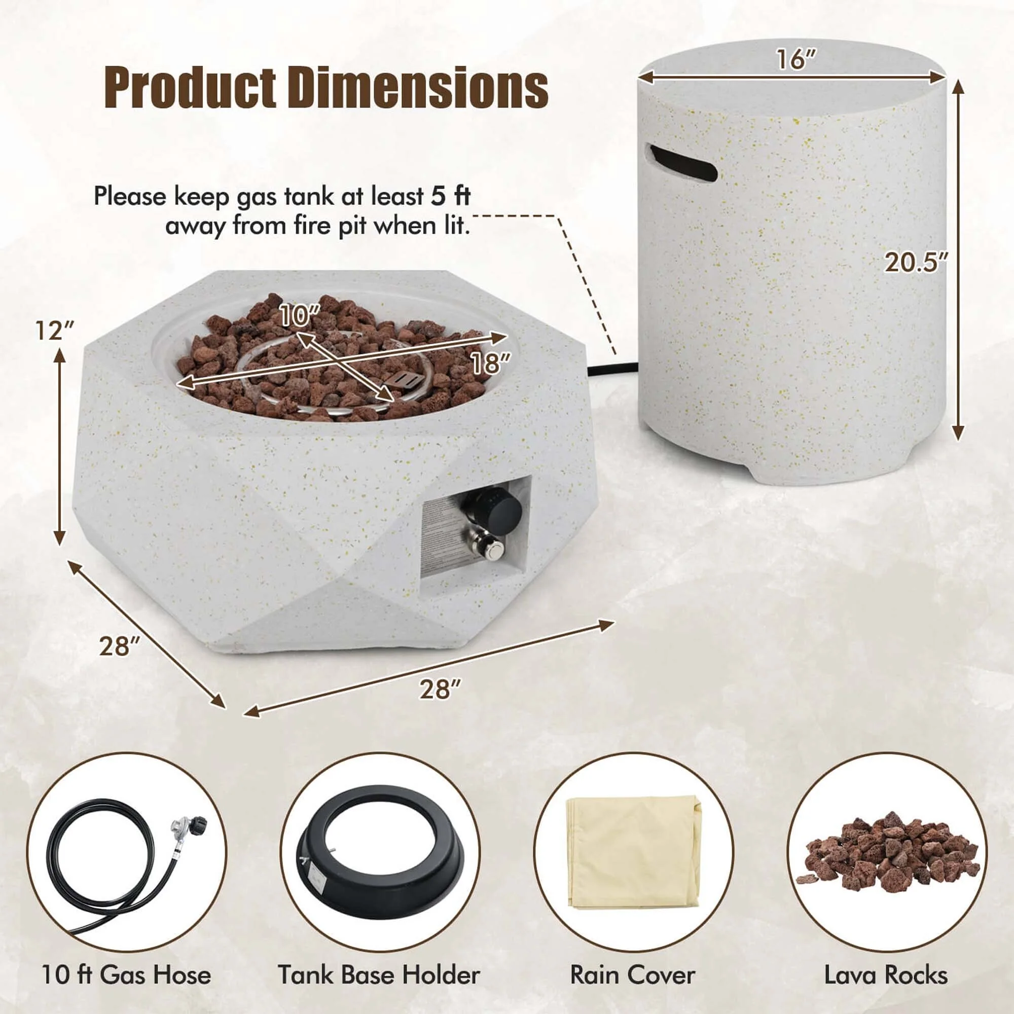 Costway 28" Hexagon Terrazzo Propane Gas Fire Pit Table Set with - See Details