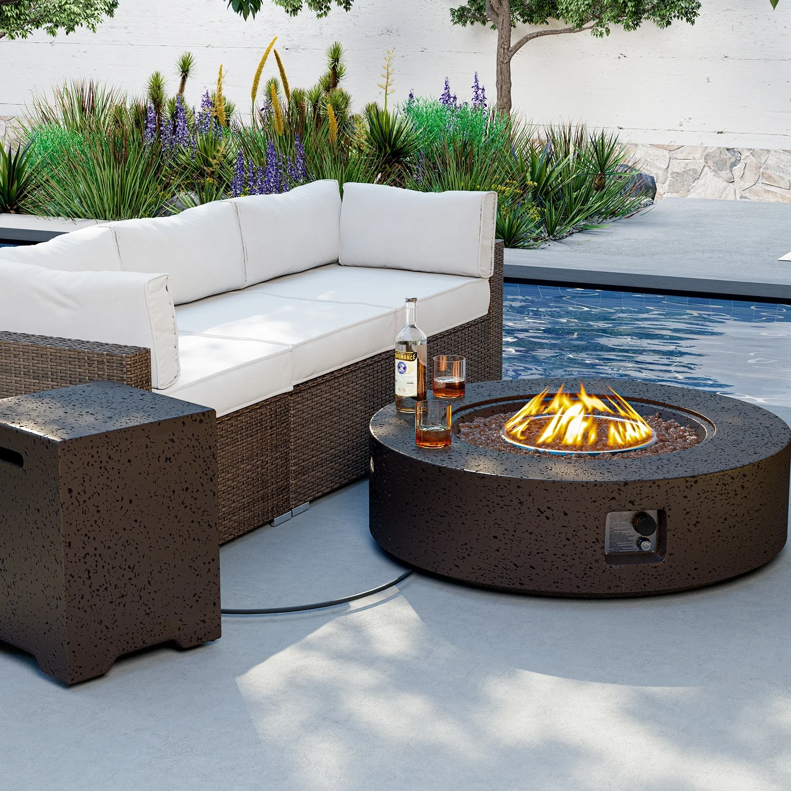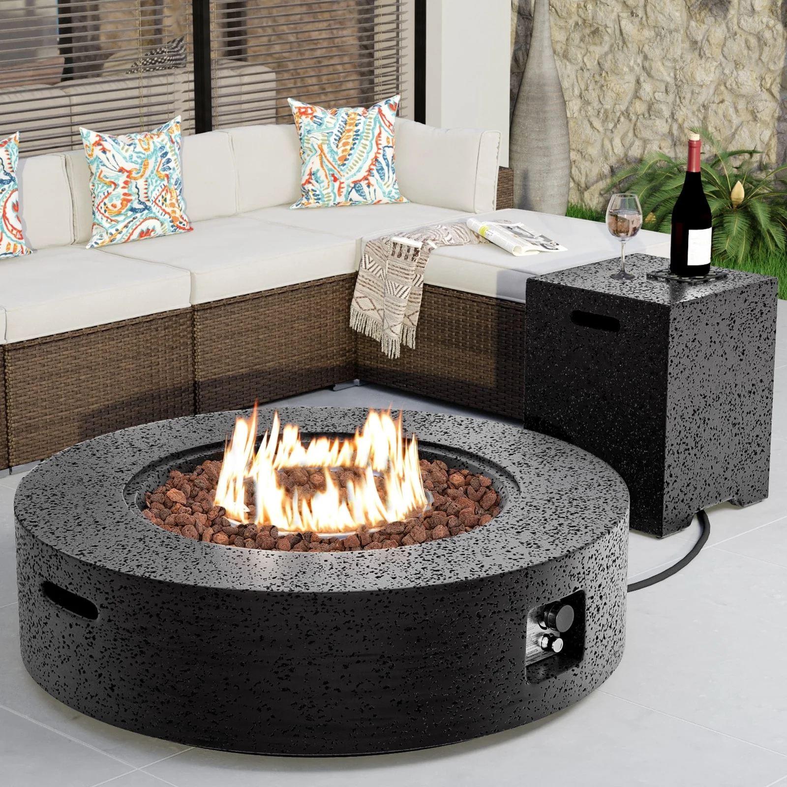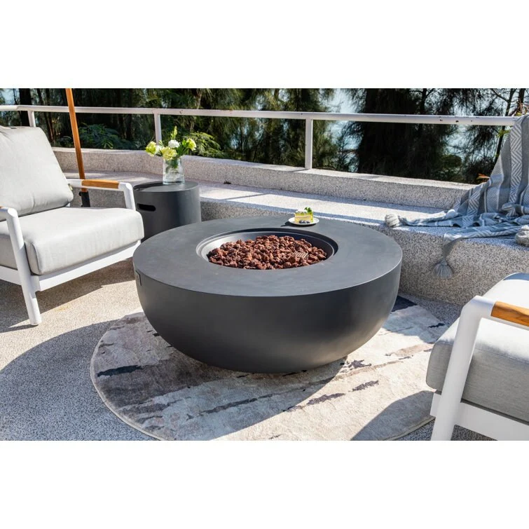 Modeno Jefferson 40,000 BTU Concrete Propane Fire Bowl with Lava Rocks & Cover - 26.6 X 26.6 X 13.8