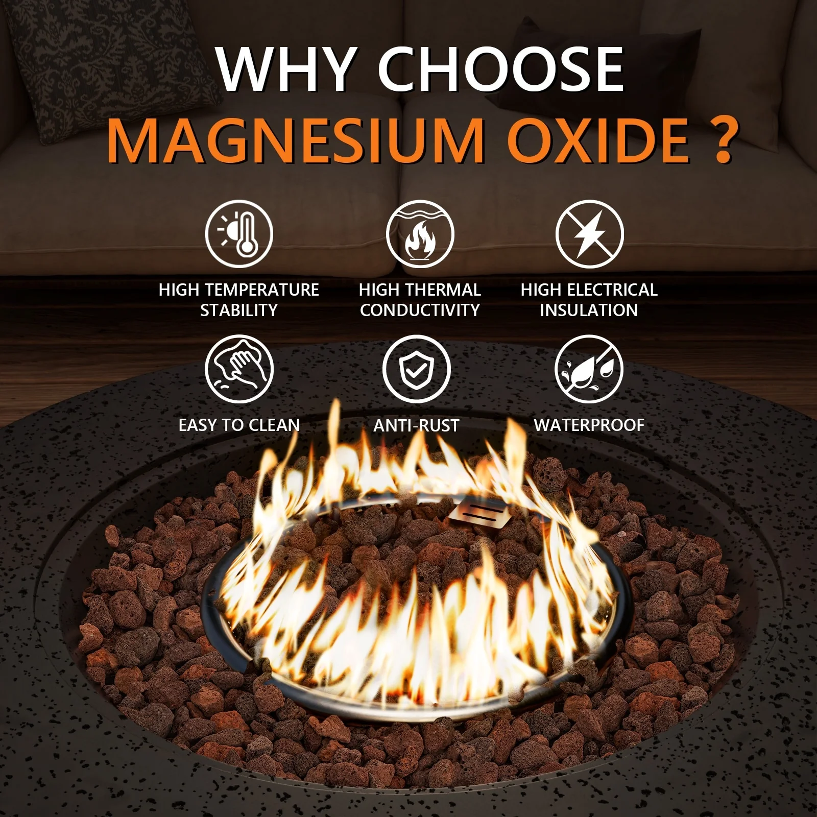 30.87" Modern Outdoor Magnesium Oxide Fire Pit Table